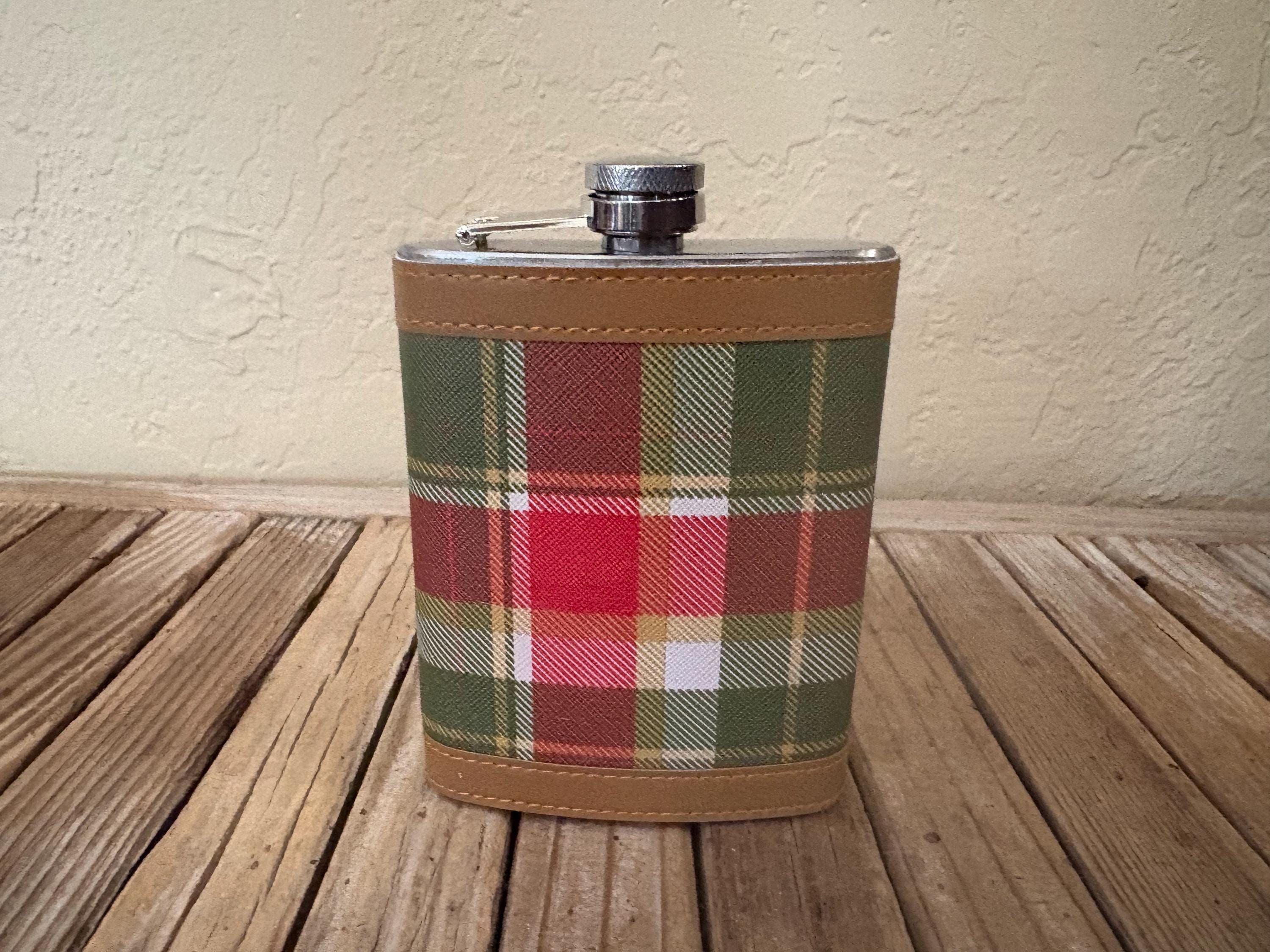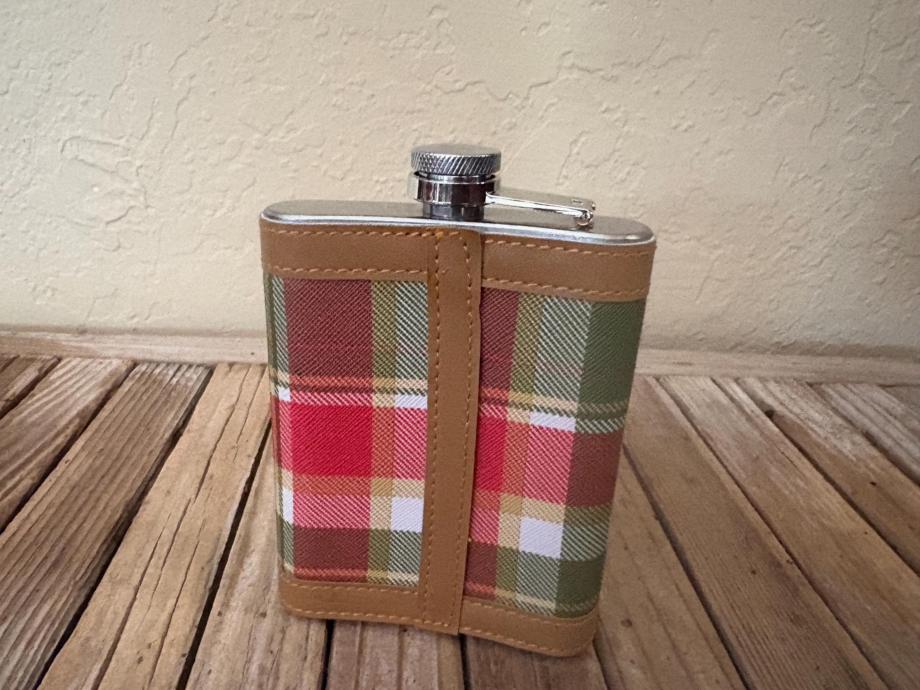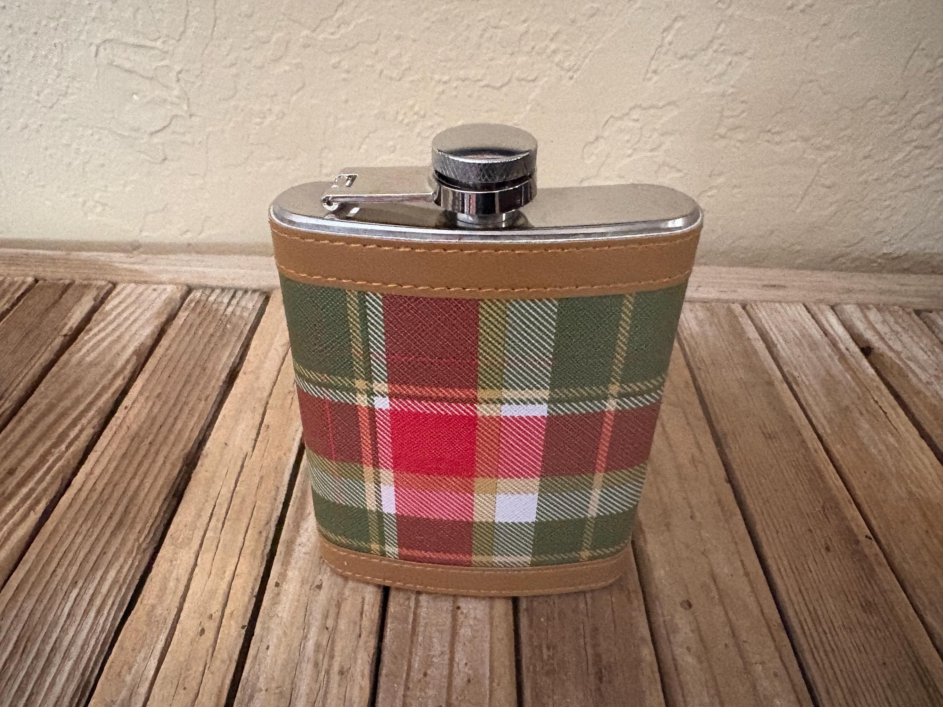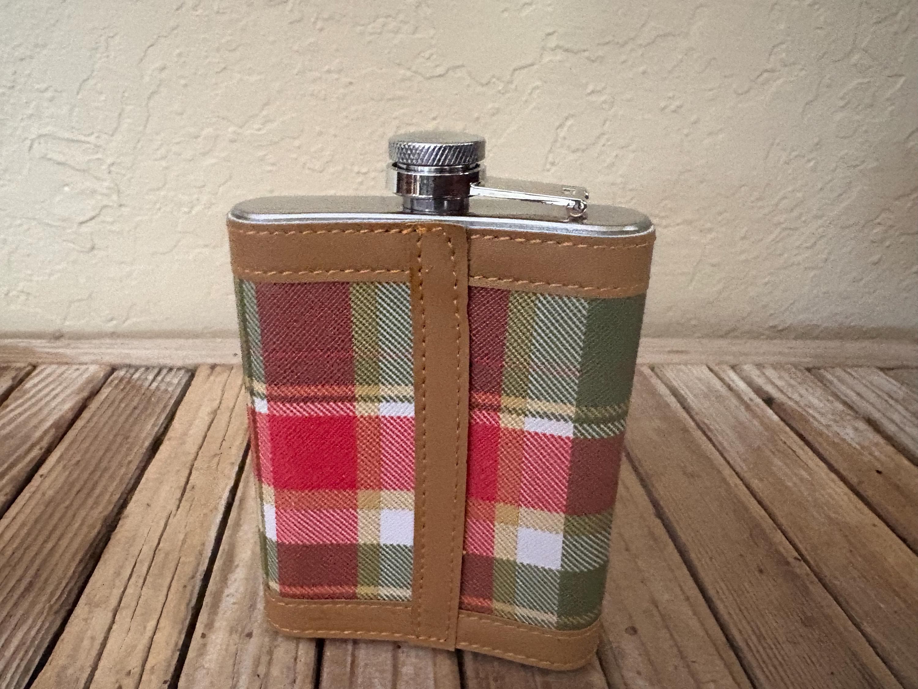 Vintage plaid stainless steel flask. In great vintage condition, normal wear due to age use. The plaid cover has surface scrapes and markings, along with remnant sticker film on the base, please see pictures. A great, unique piece to keep for yourself or to give as a gift.