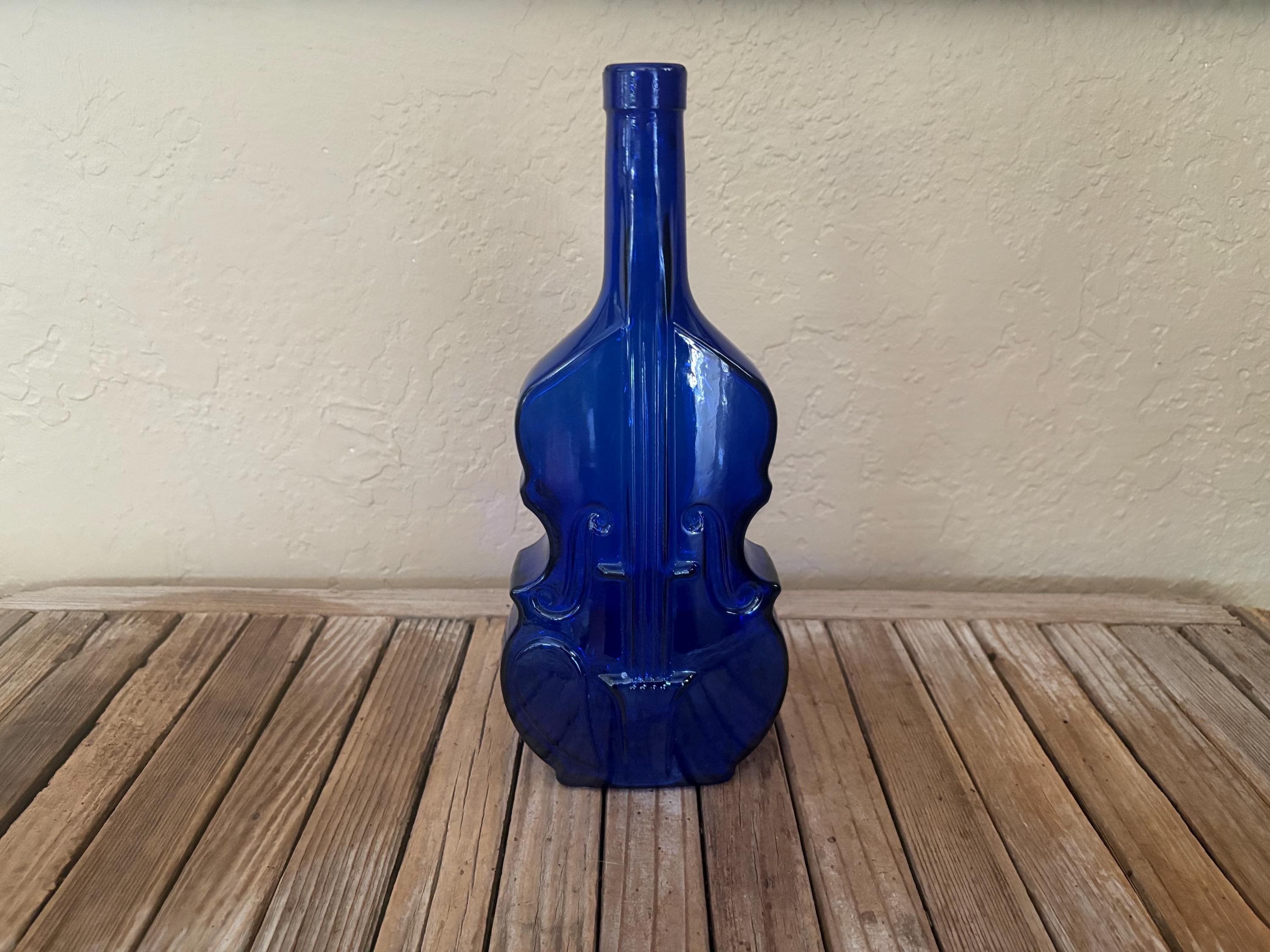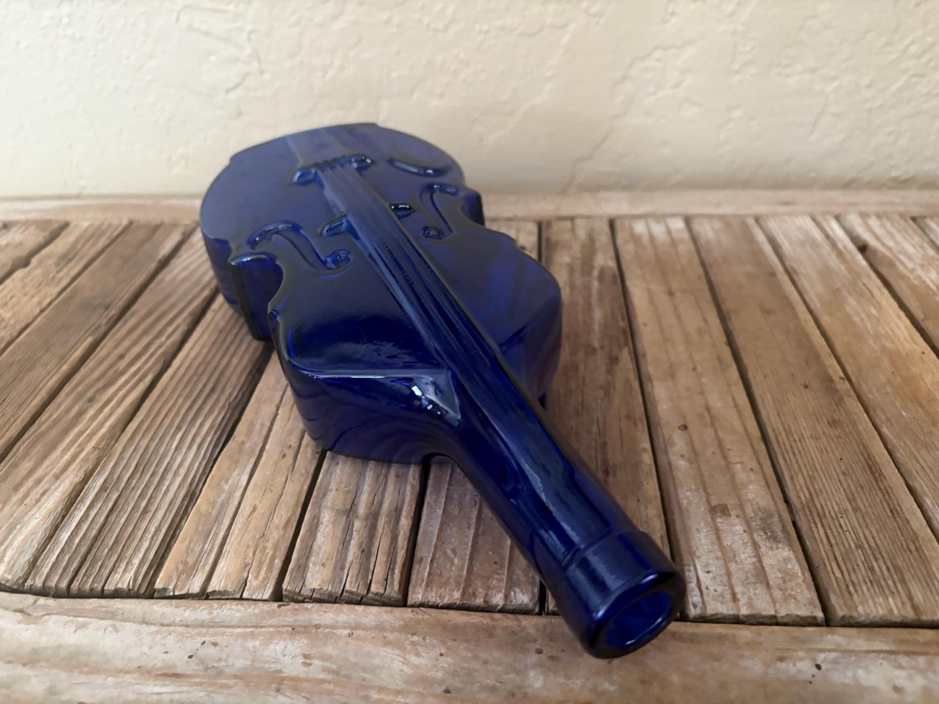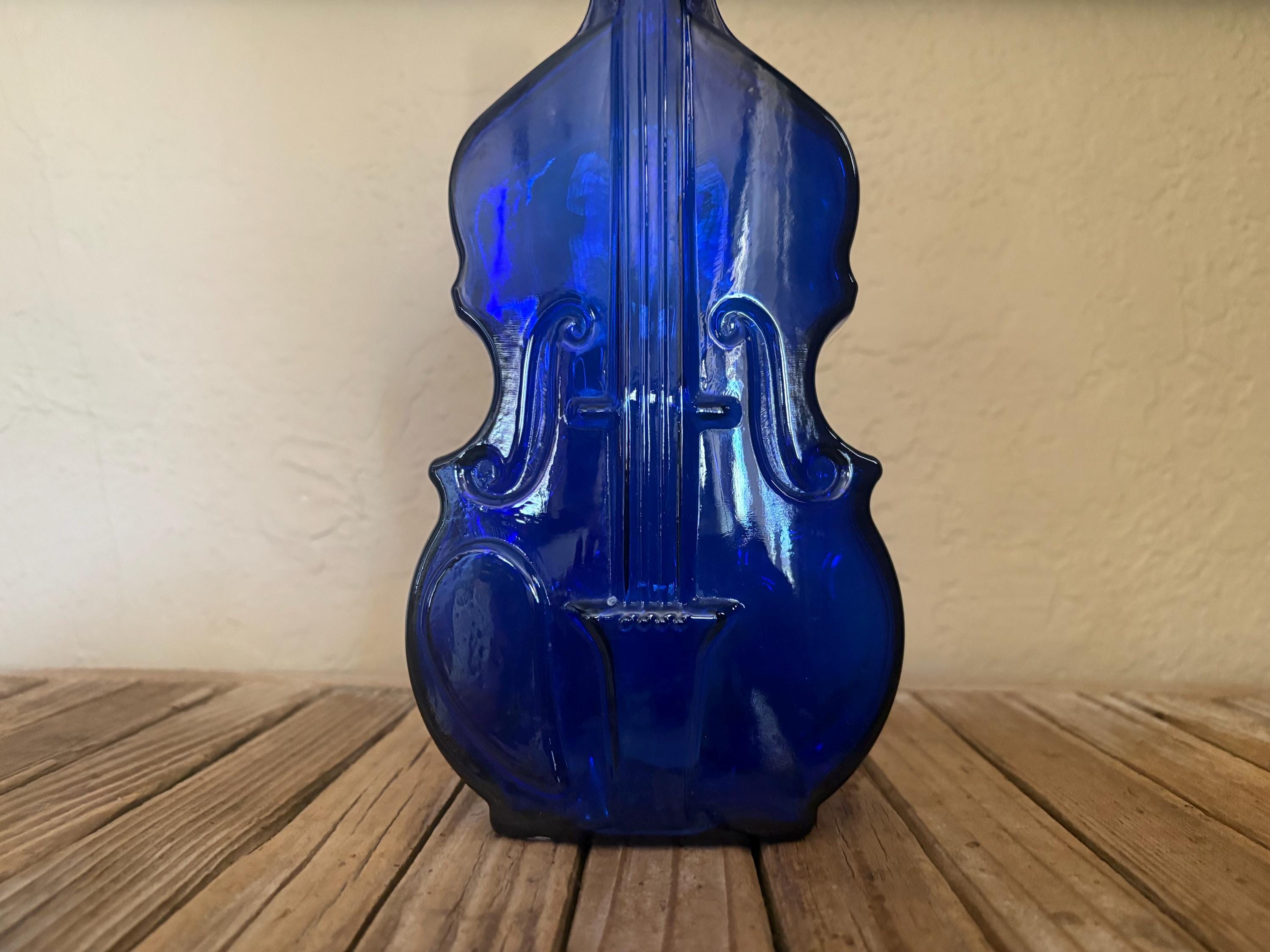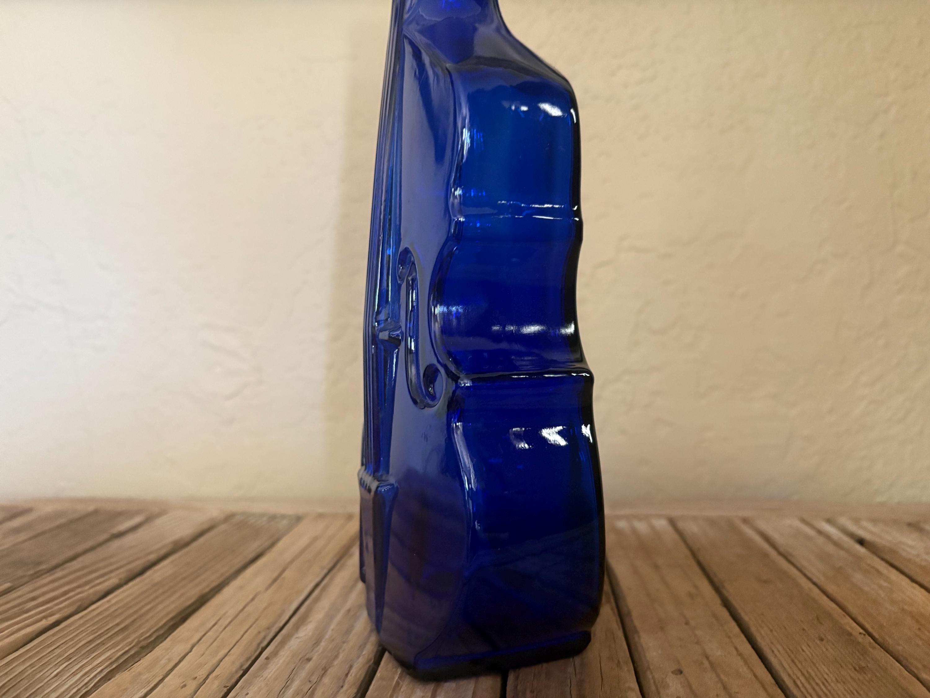Vintage cobalt blue musical instrument bottle. In great condition, normal wear due to age and use. Some slight scrapes and markings to the bottle and the bottle has no lid, please see pictures. A cool bottle with great color and detail to add to your home. or to give as a gift.