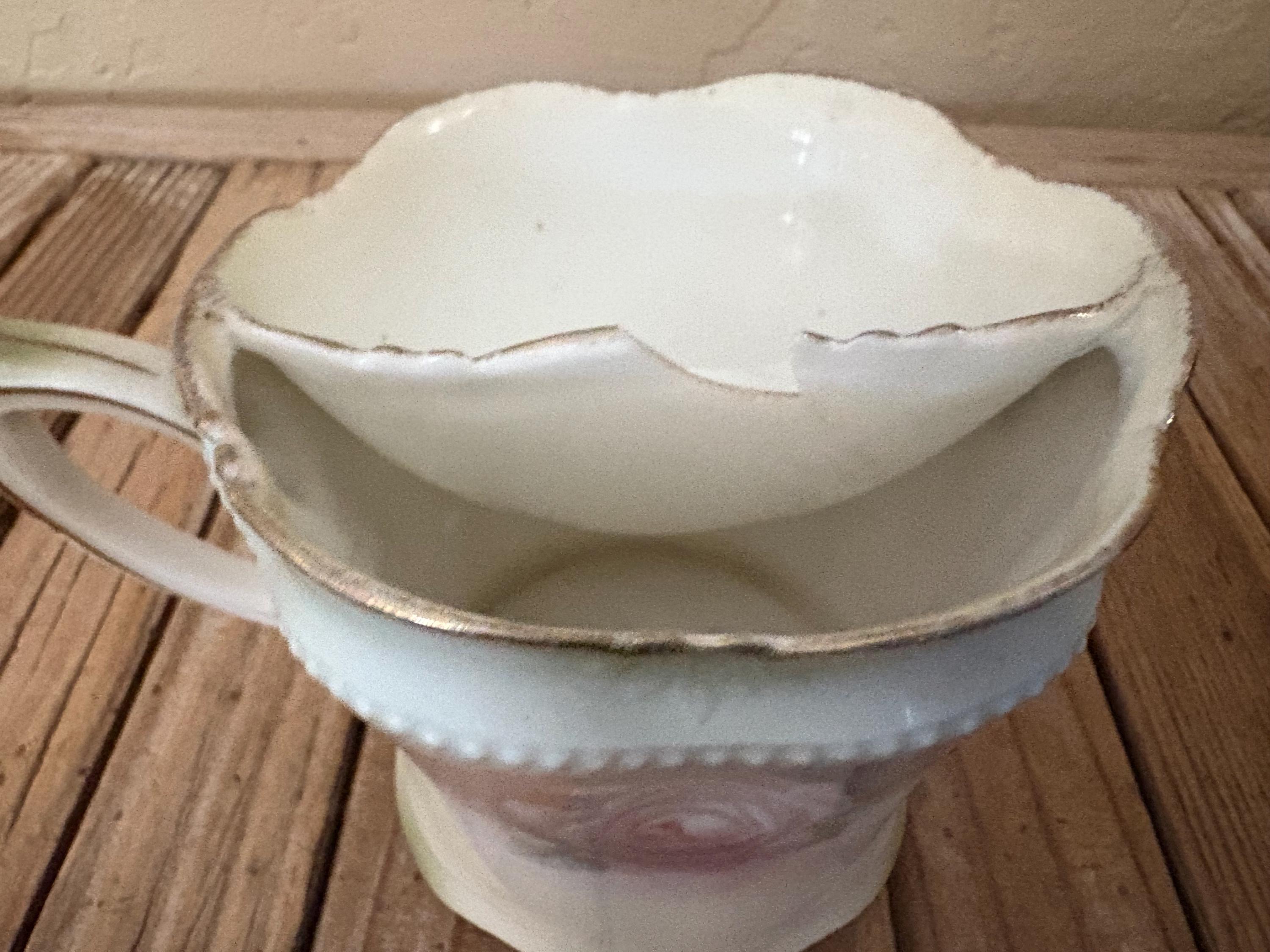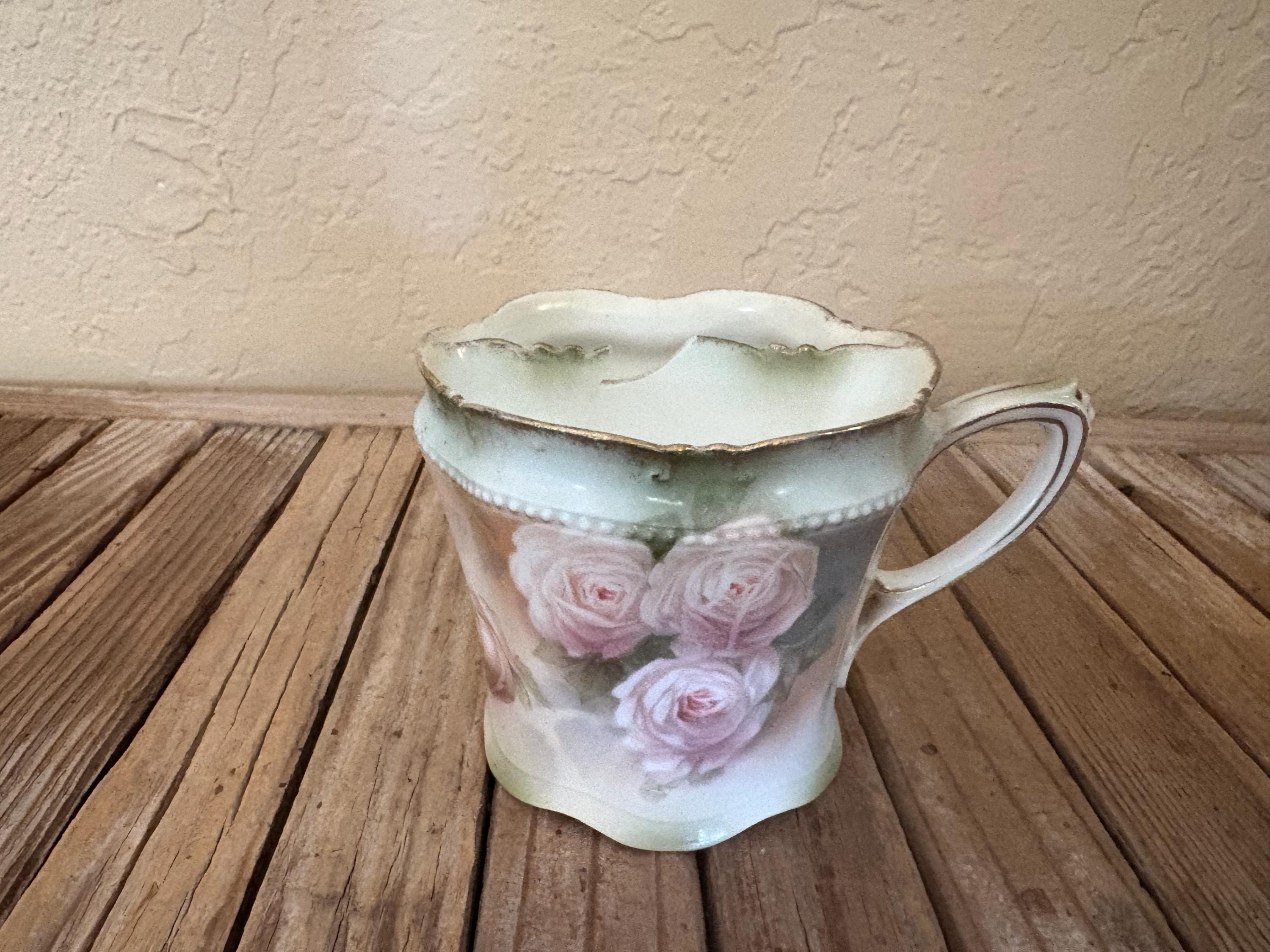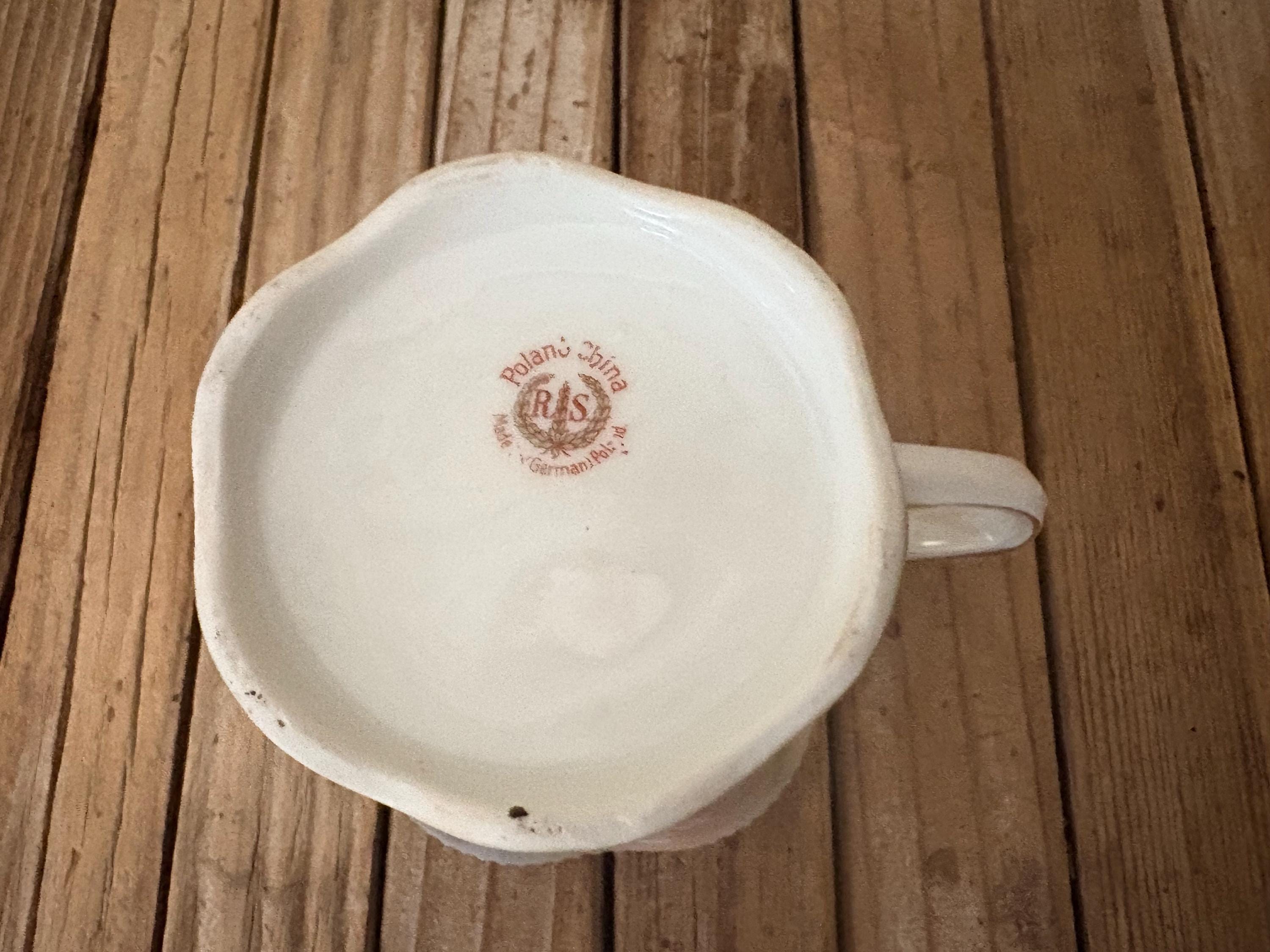 Antique Poland China cup. In great condition, normal wear due to age and use. The cup has a chip in the center of the cup, please see pictures. A beautiful piece to add to your home.