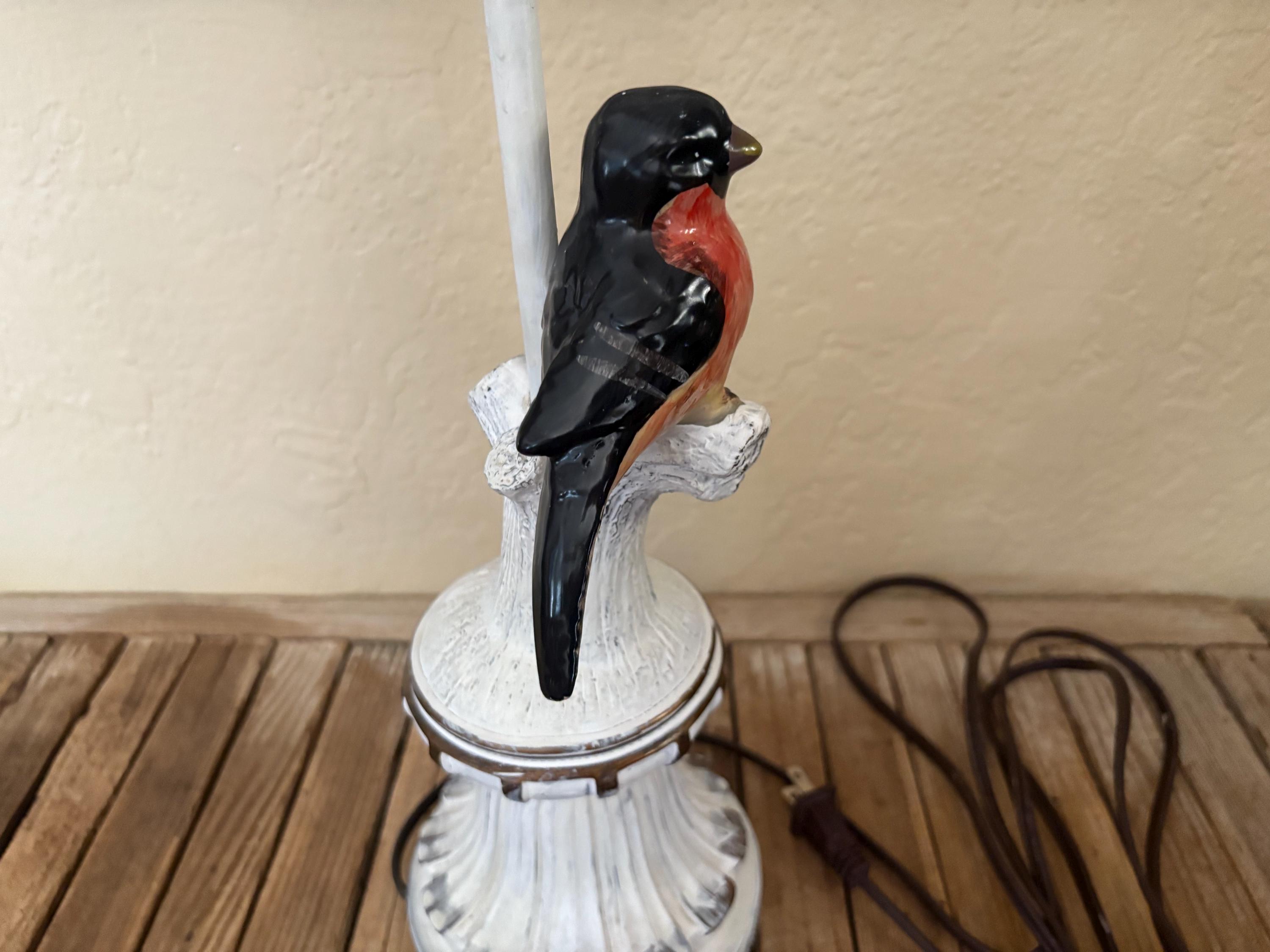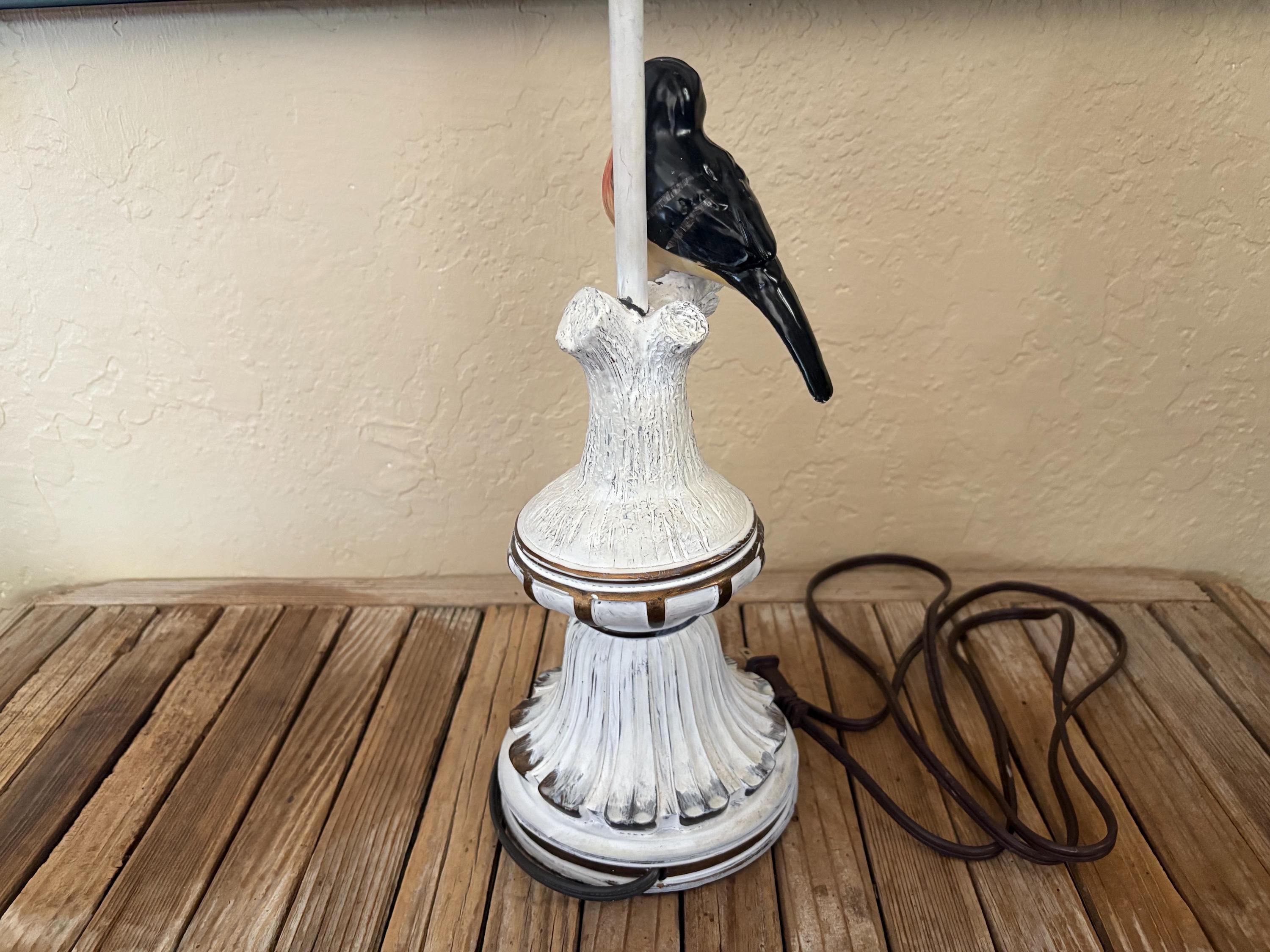 Vintage bird lamp. In great vintage condition, normal wear due age and use. The lamp has surface scrapes and markings to the finish, The ceramic bird has a few chips to the finish, please see pictures. A great lamp to add to your home or to give as a gift.
