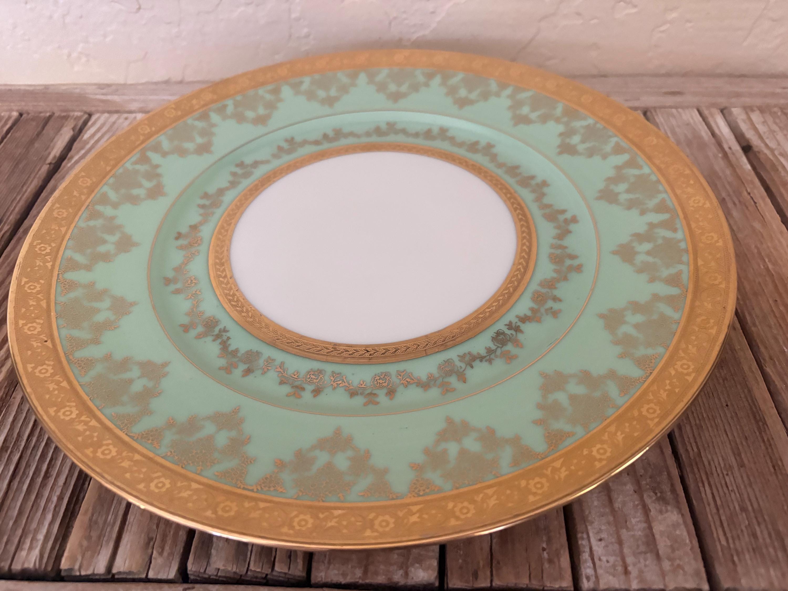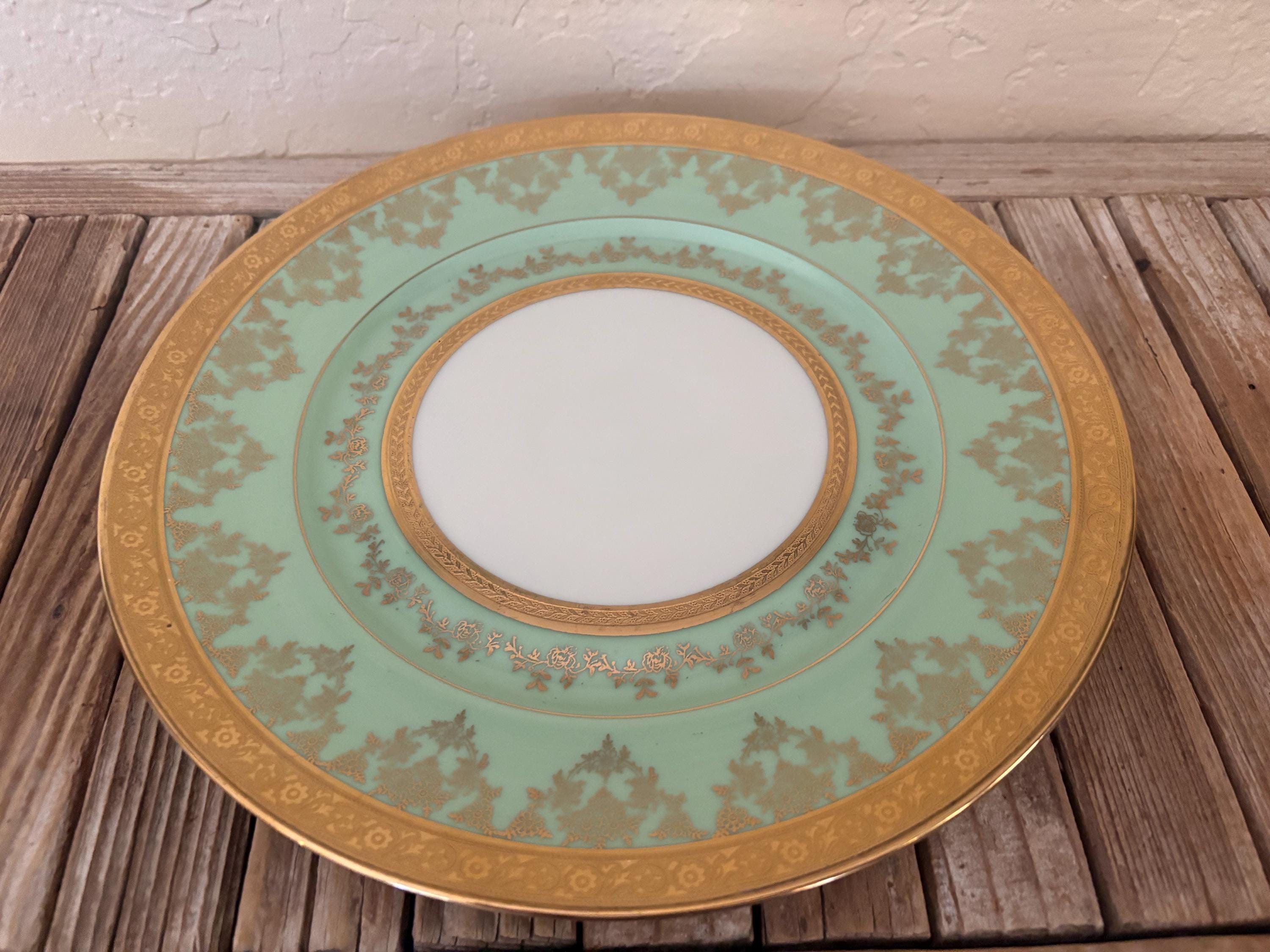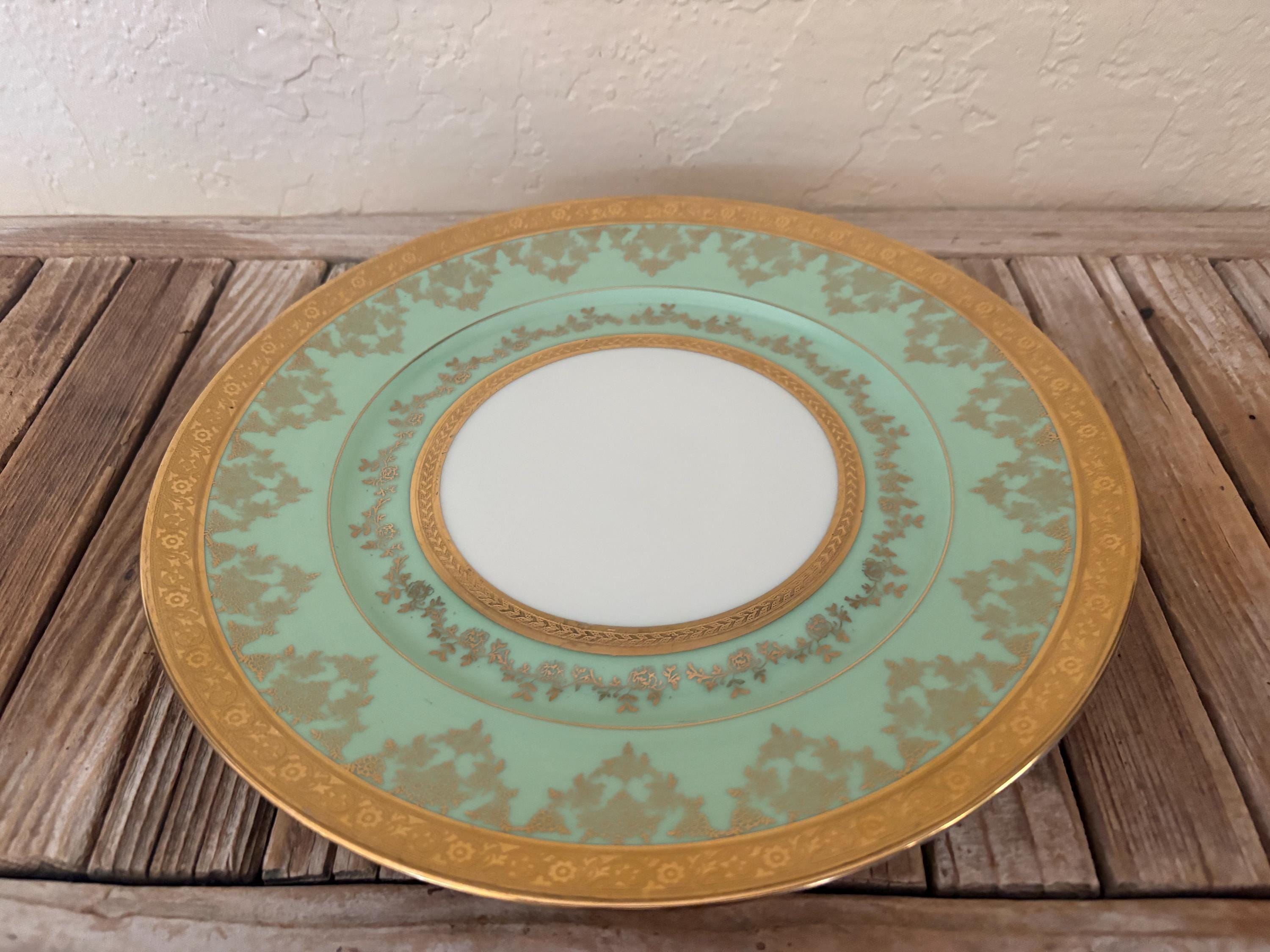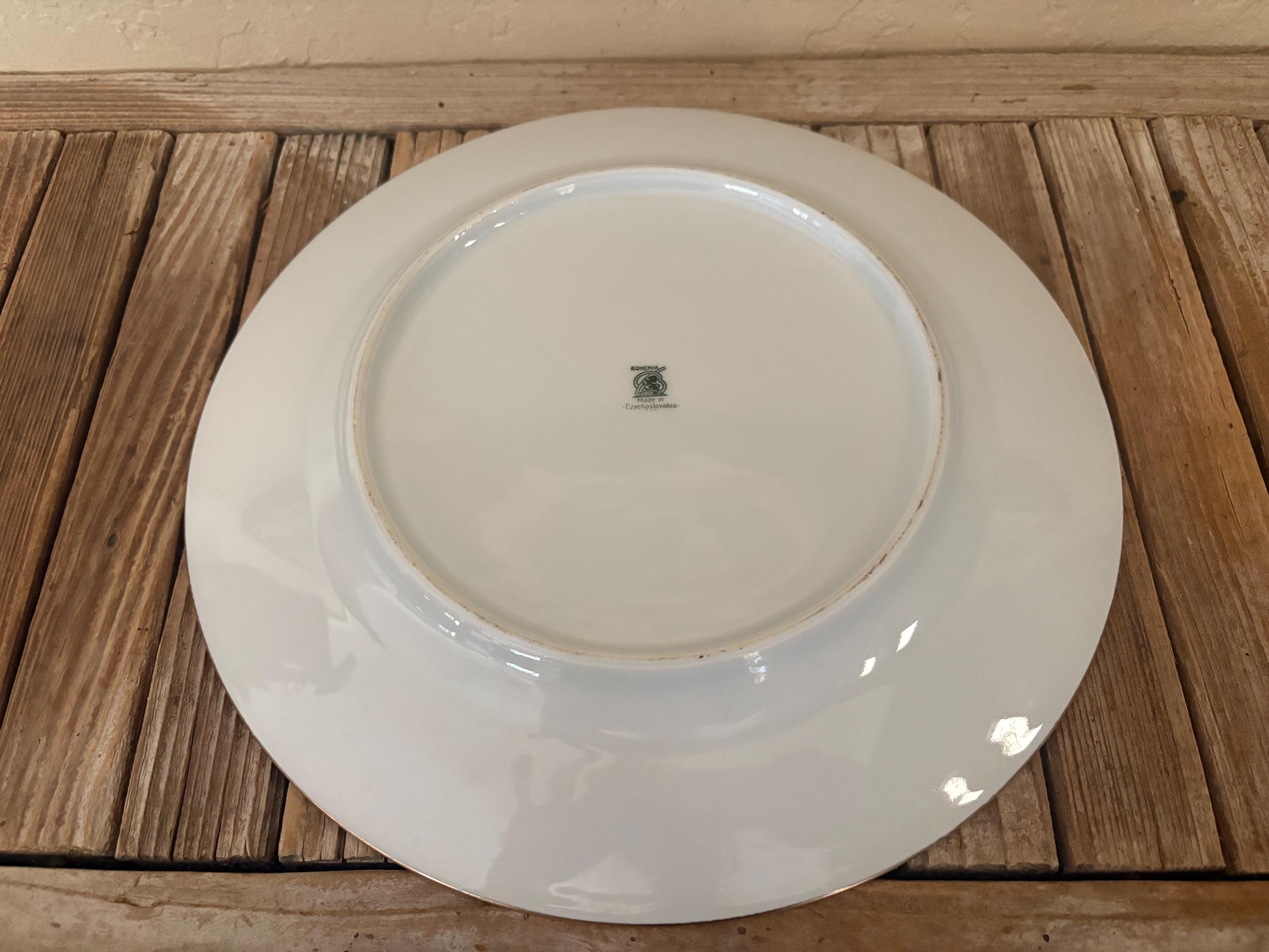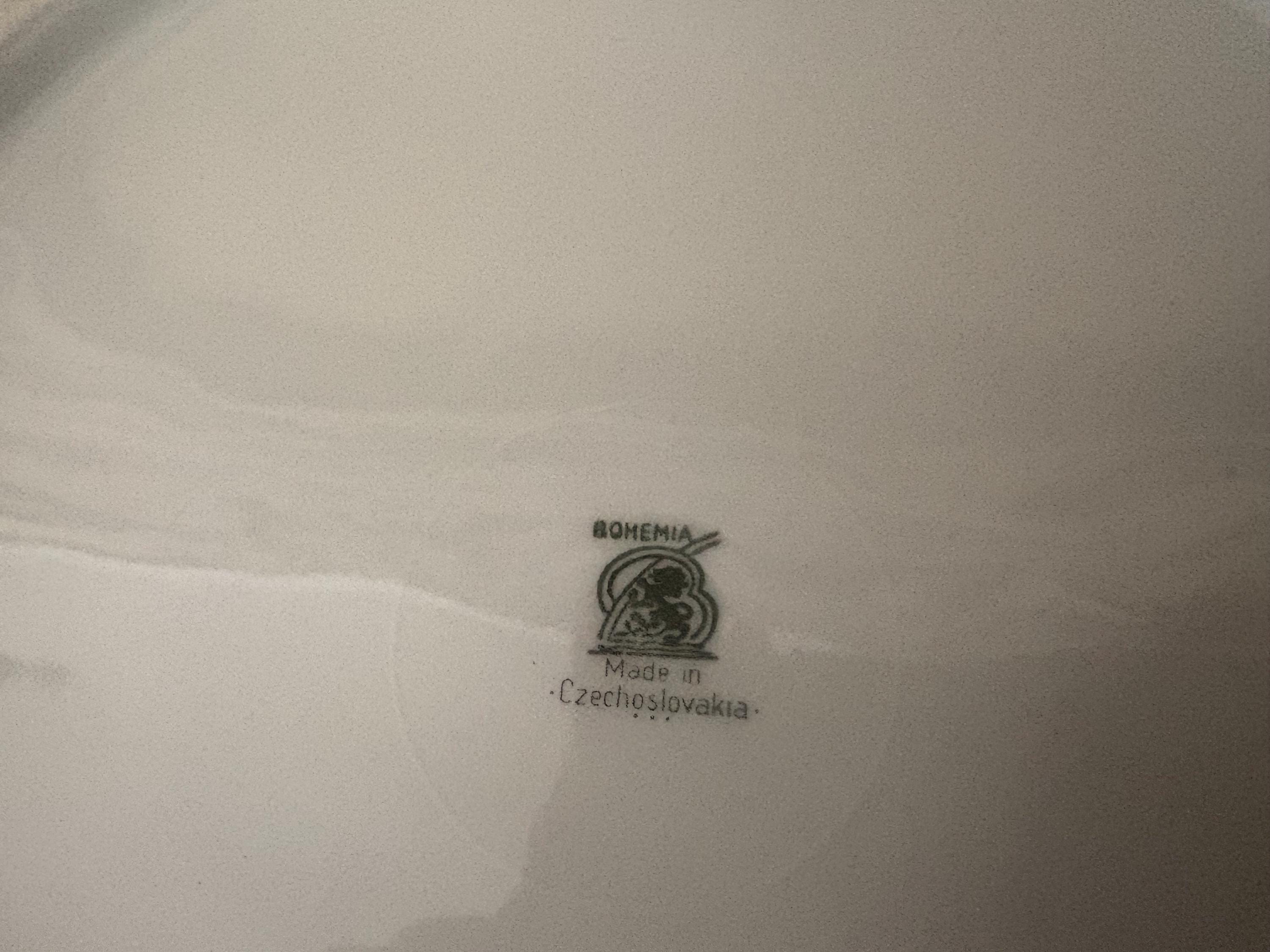 Antique large Bohemia plate. The piece is in great condition, normal wear due to age and use. The gold trim has become worn and faded, and it has a few scrapes and markings, with no chips or cracks, please see pictures. A beautiful piece to add to a vanity, tabletop or collection.