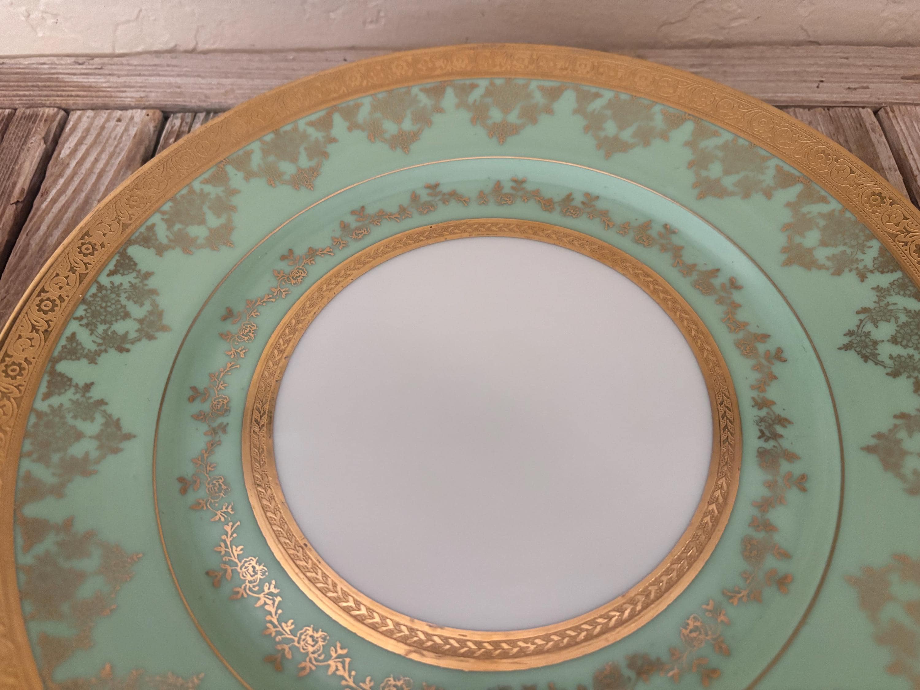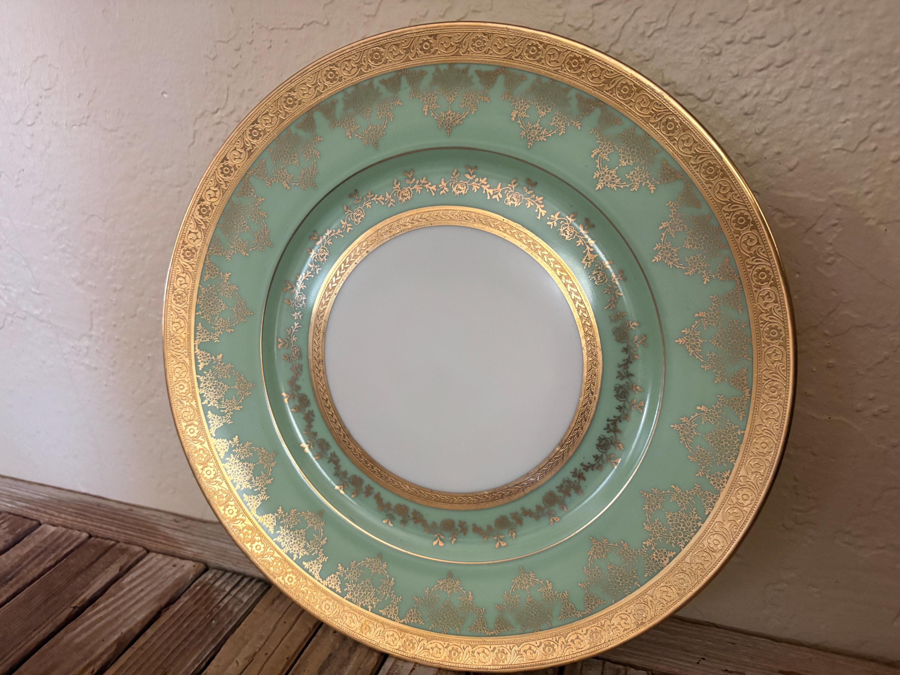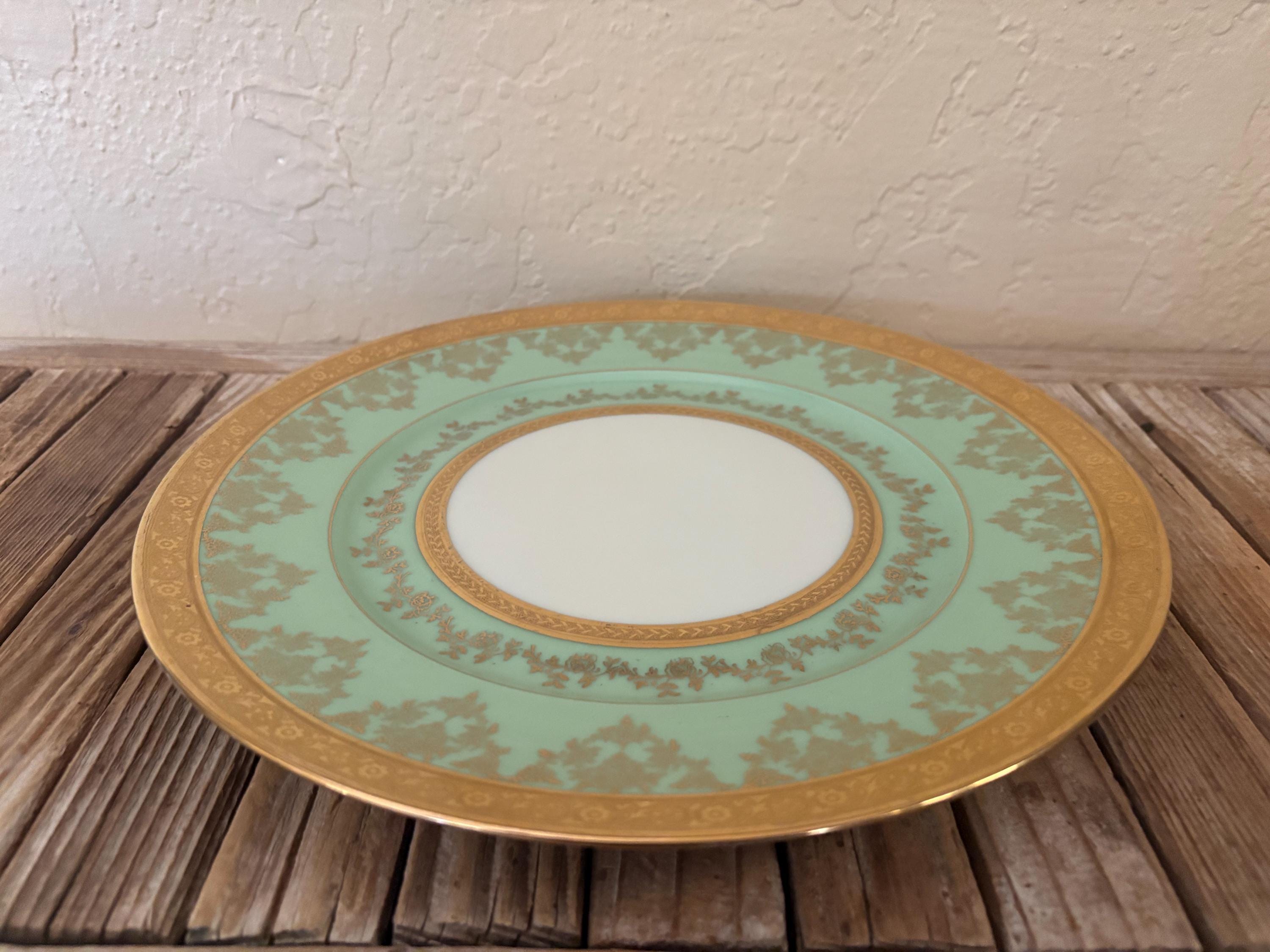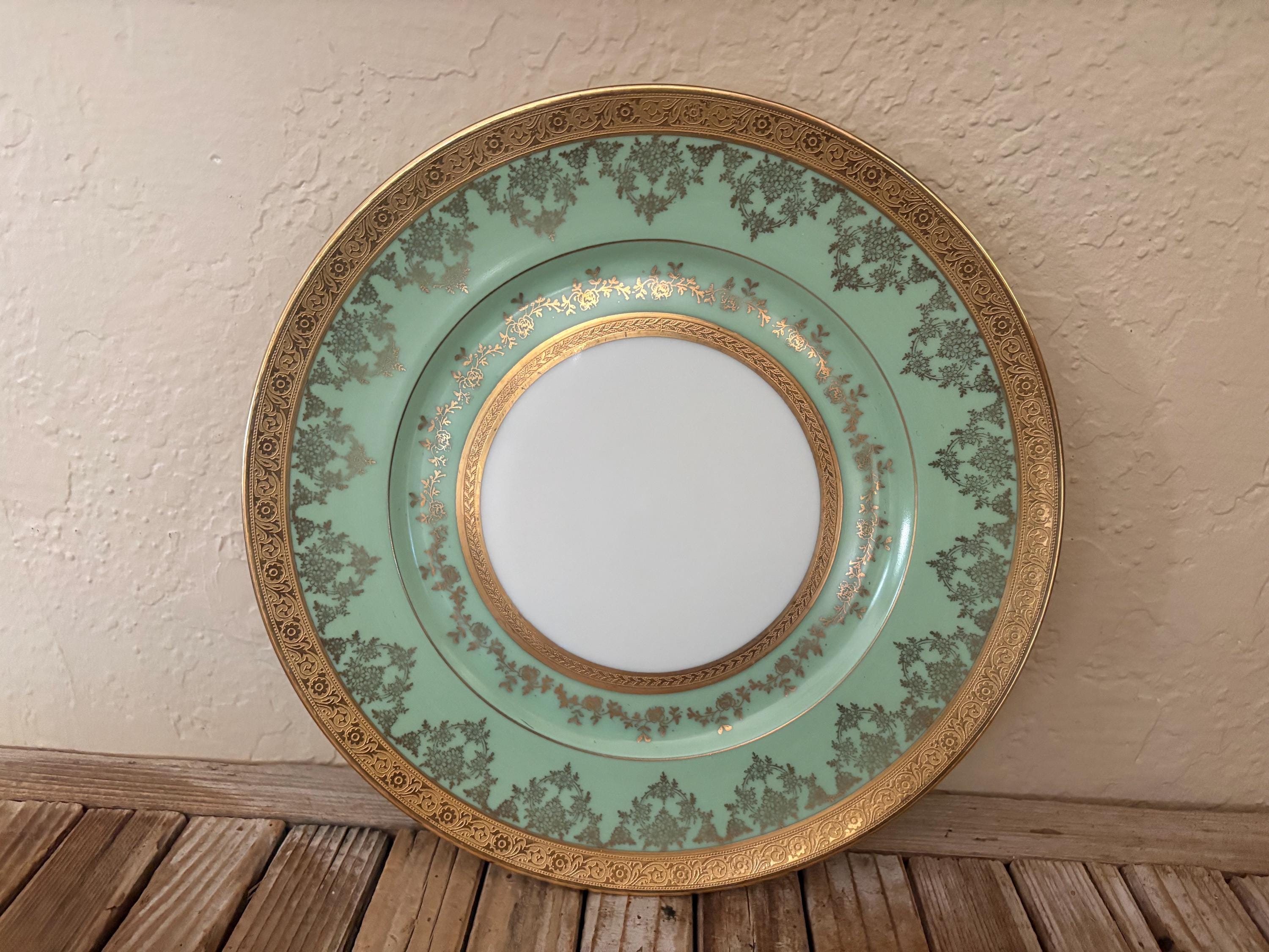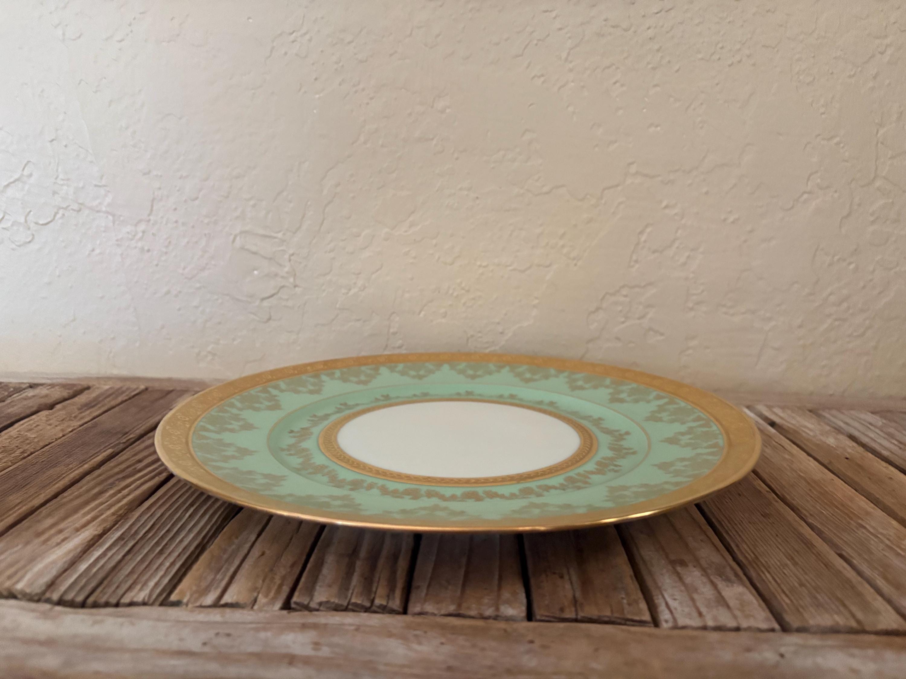 Antique large Bohemia plate. The piece is in great condition, normal wear due to age and use. The gold trim has become worn and faded, and it has a few scrapes and markings, with no chips or cracks, please see pictures. A beautiful piece to add to a vanity, tabletop or collection.