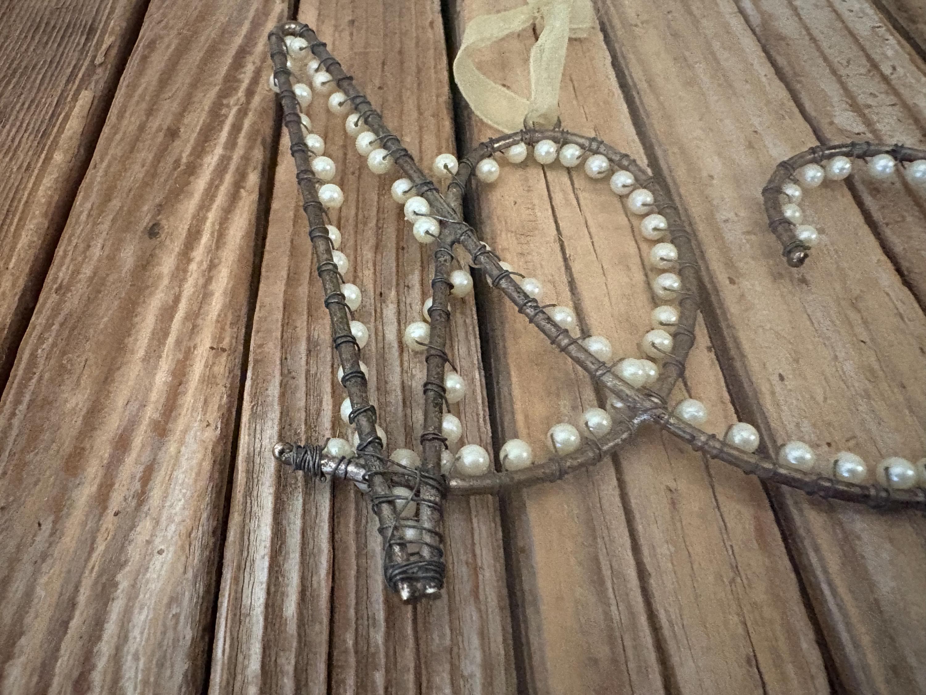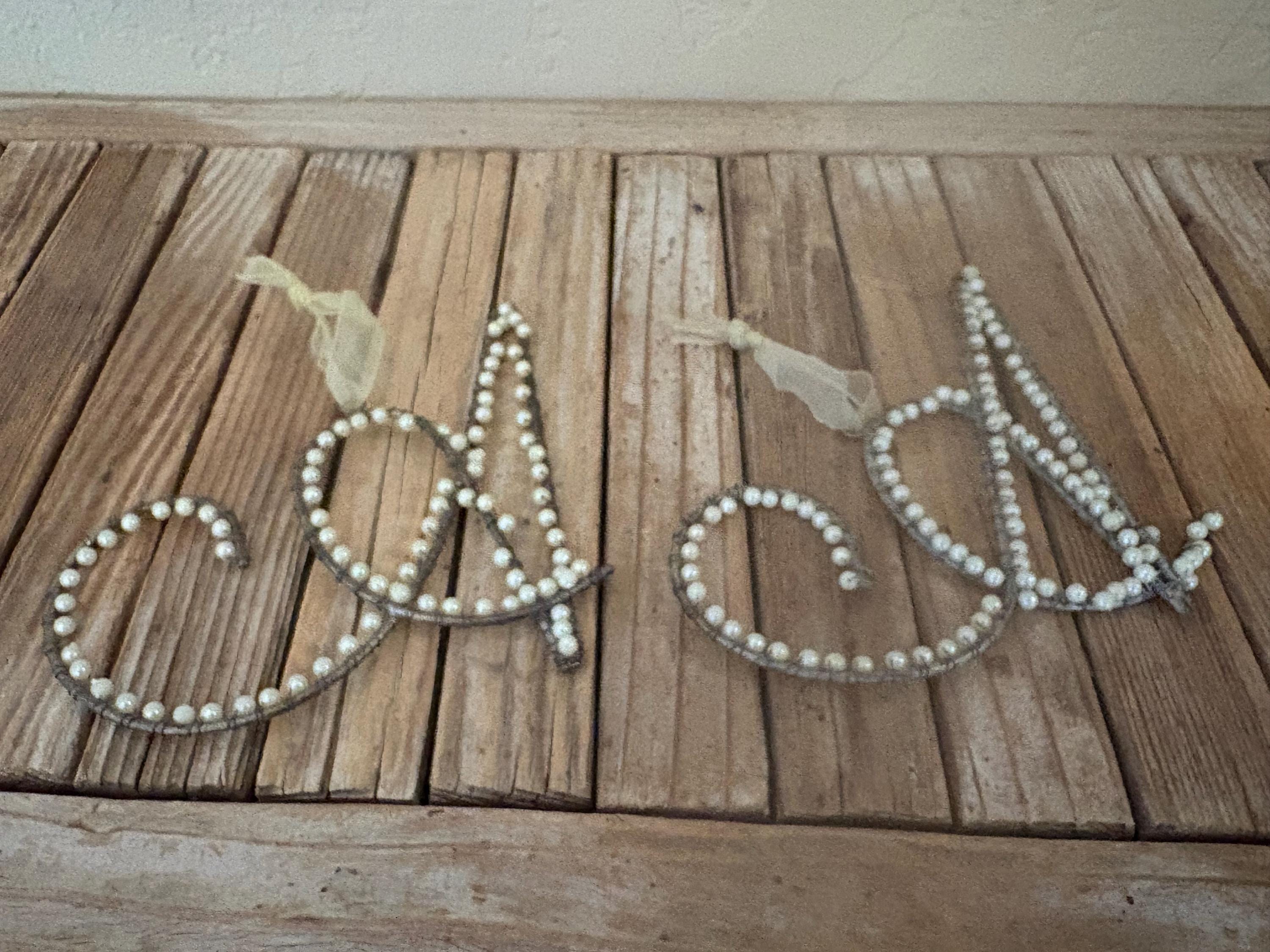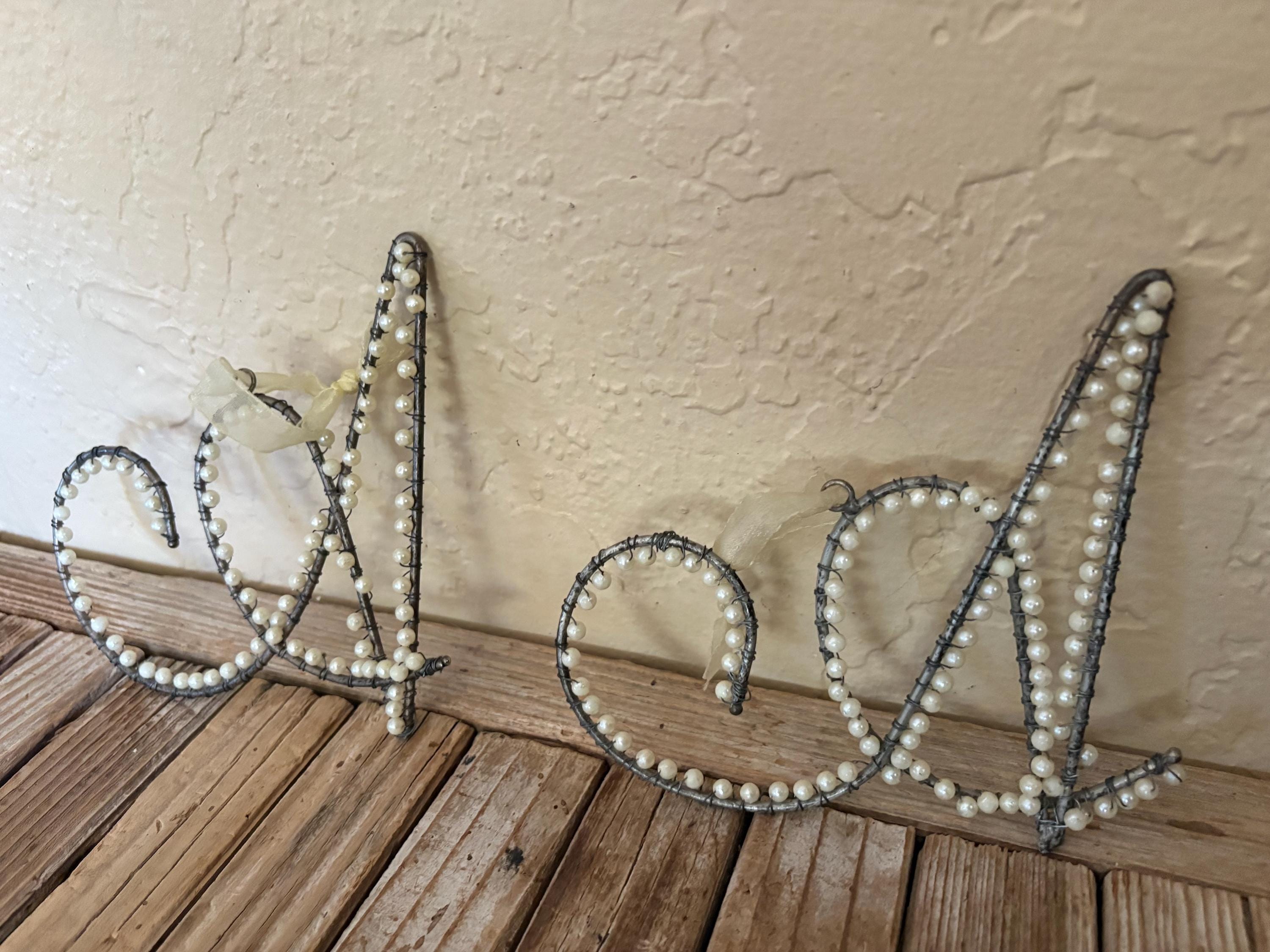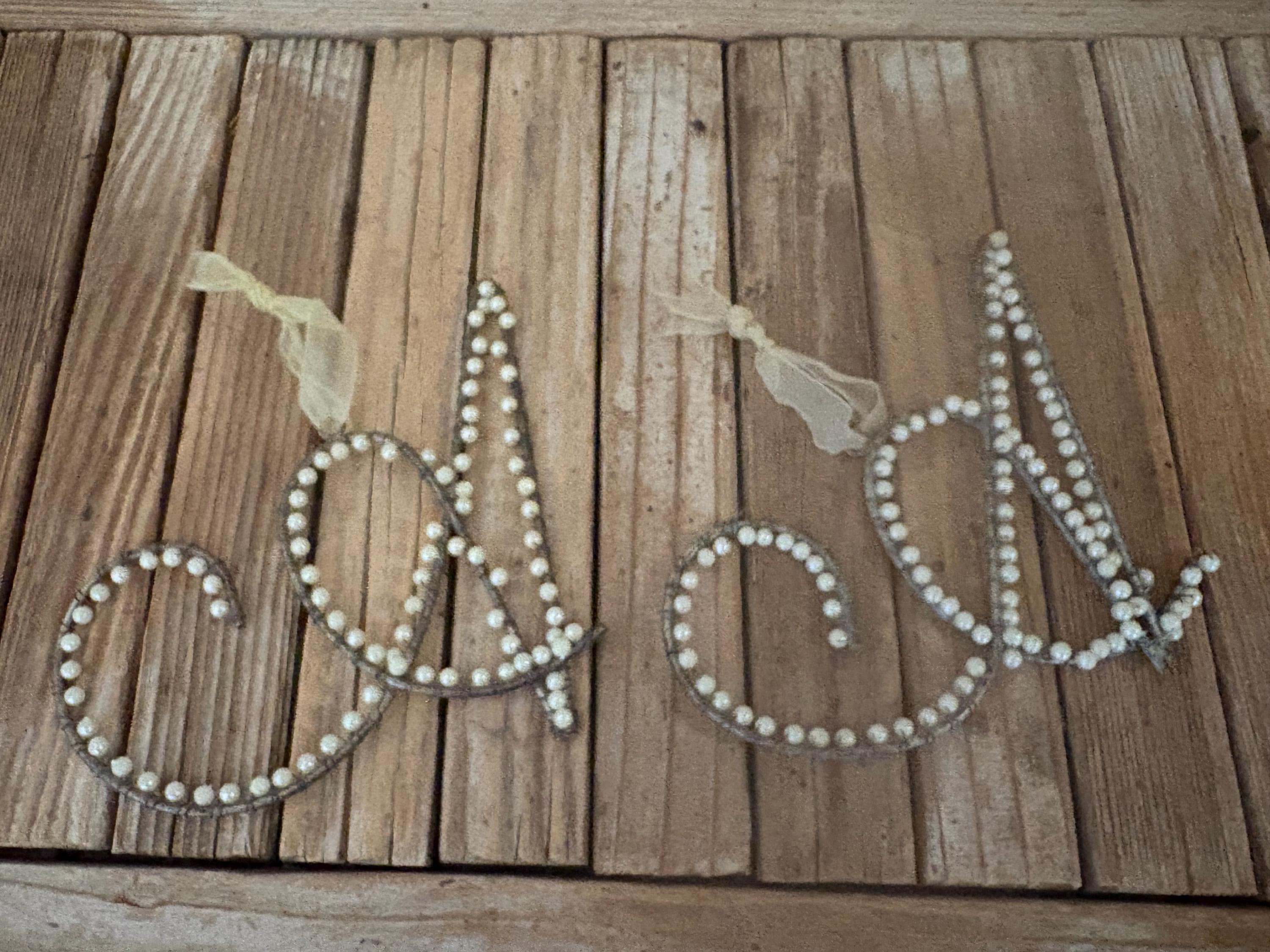 Pair of vintage calligraphy letter A's. In great vintage condition, normal wear due to age and use. The set has some surface scrapes, markings and discolorations to the painted finish, please see pictures. A nice piece to add to your home or nursery.
