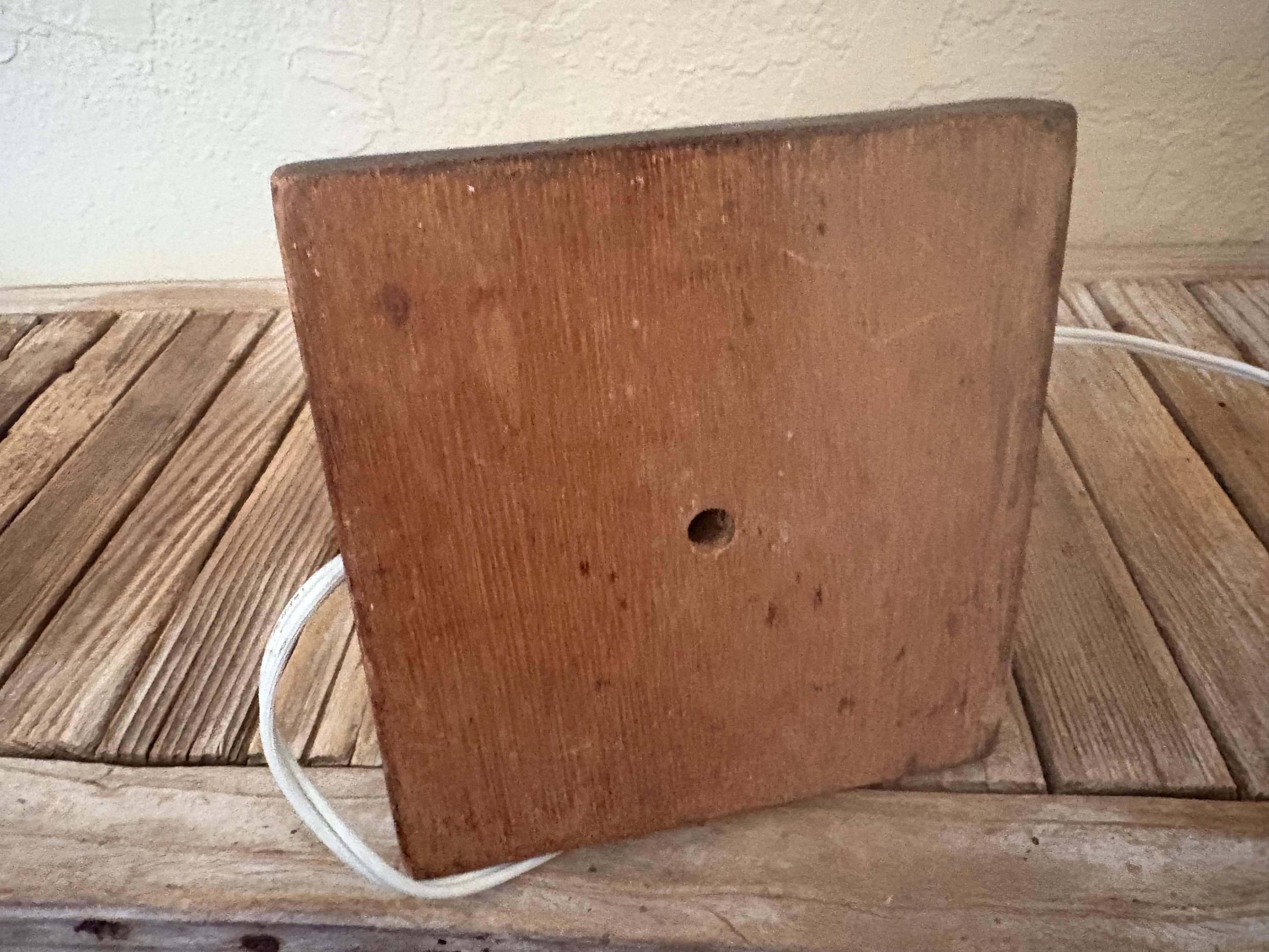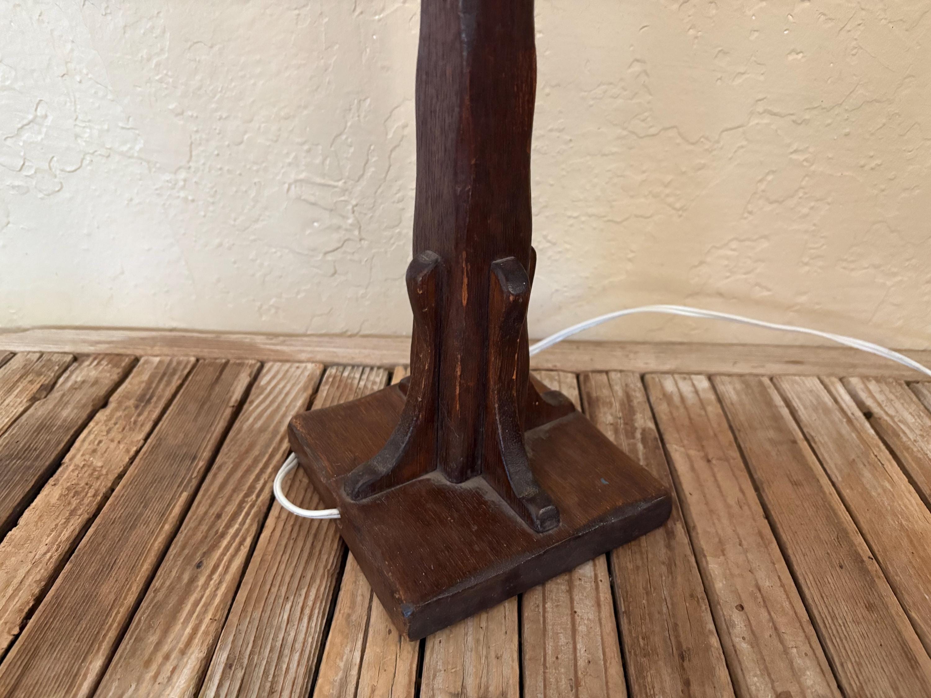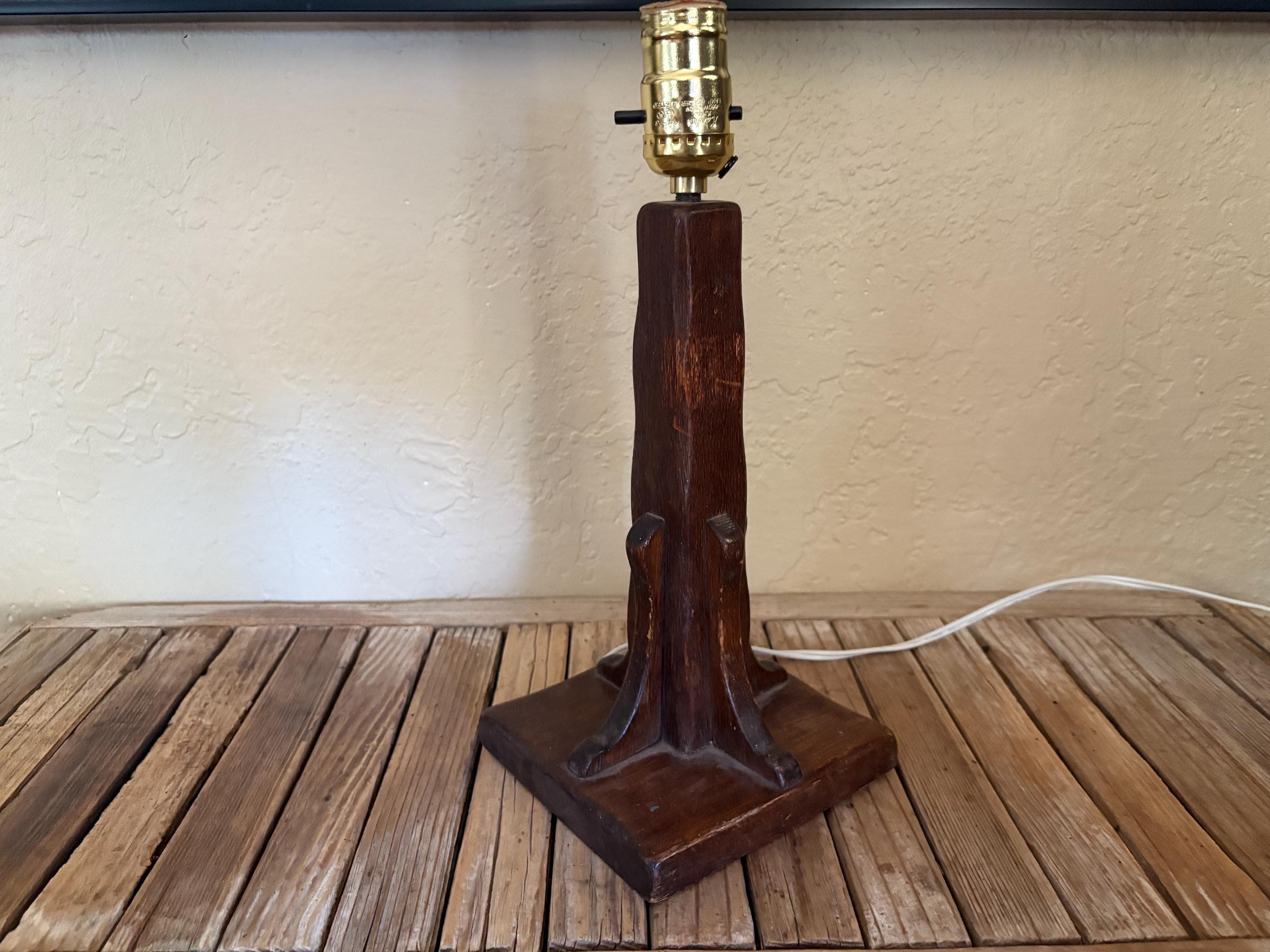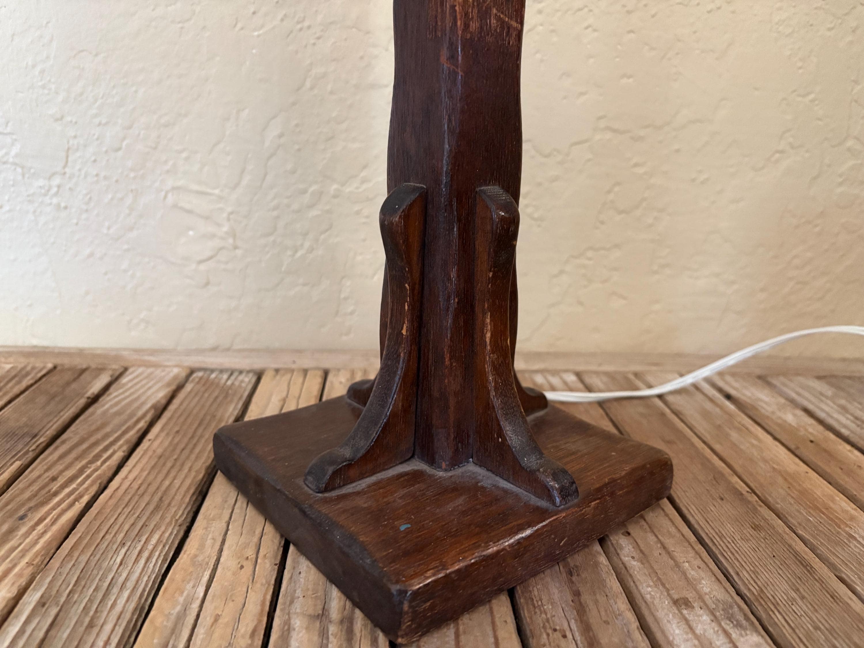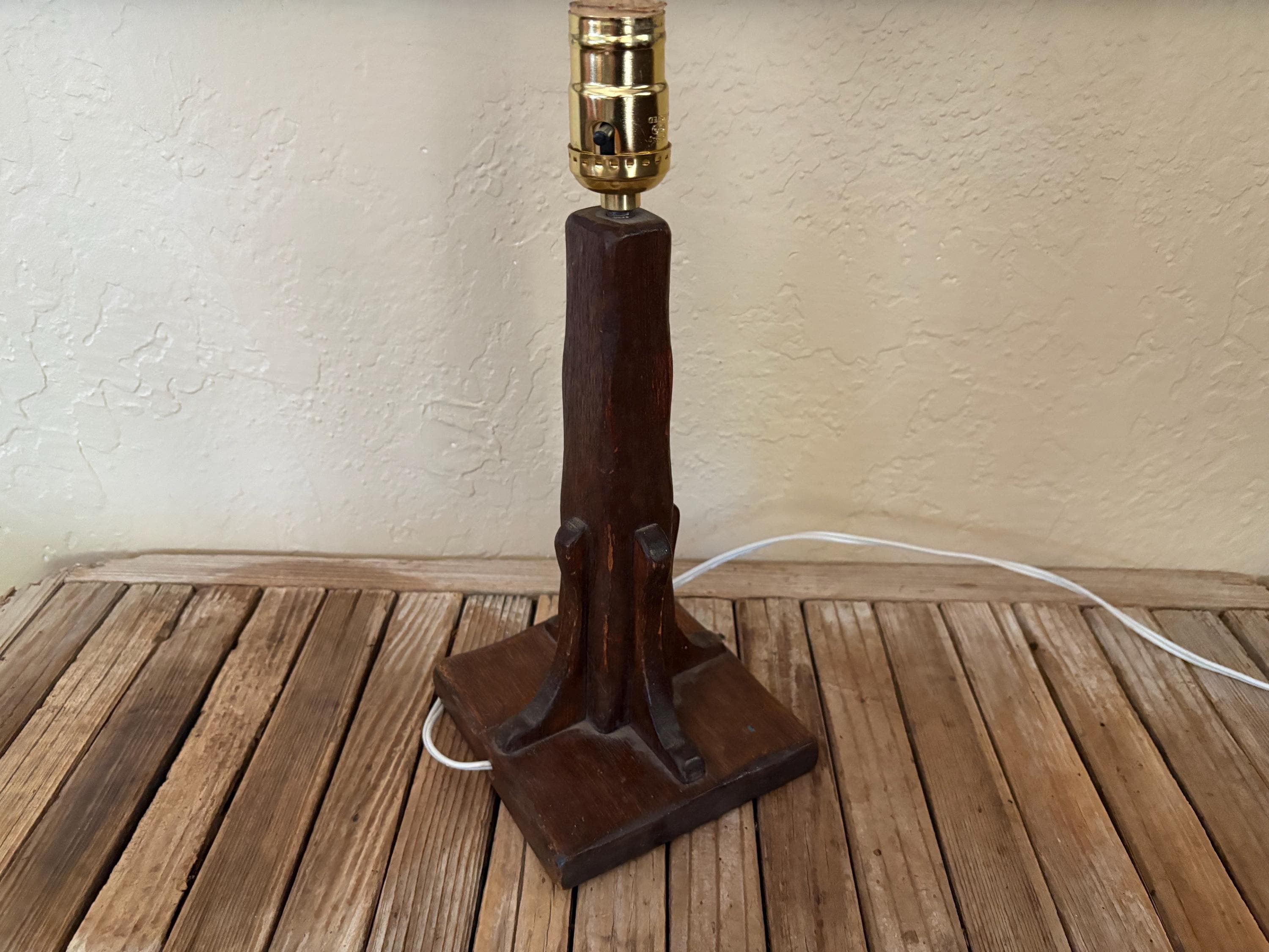 Vintage wood lamp. In good condition, normal wear due to age and use. The wood has some surface scrapes and markings to the wood, please see pictures. The lamp has been tested and it works. A beautiful piece to add to your home.