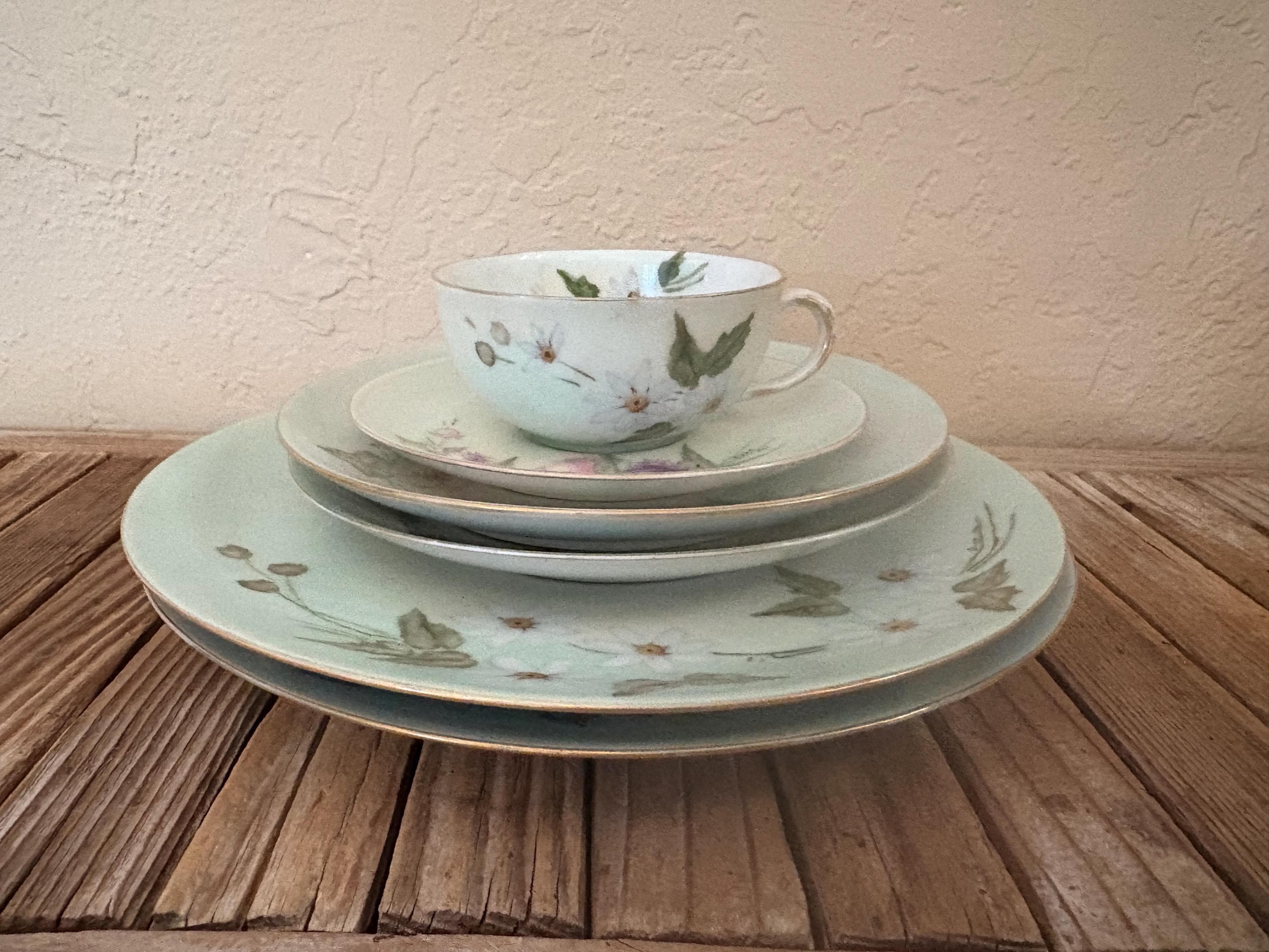 This listing is for 2 larger plates, 2 Smaller plates and a saucer and teacup. 6 pieces total.