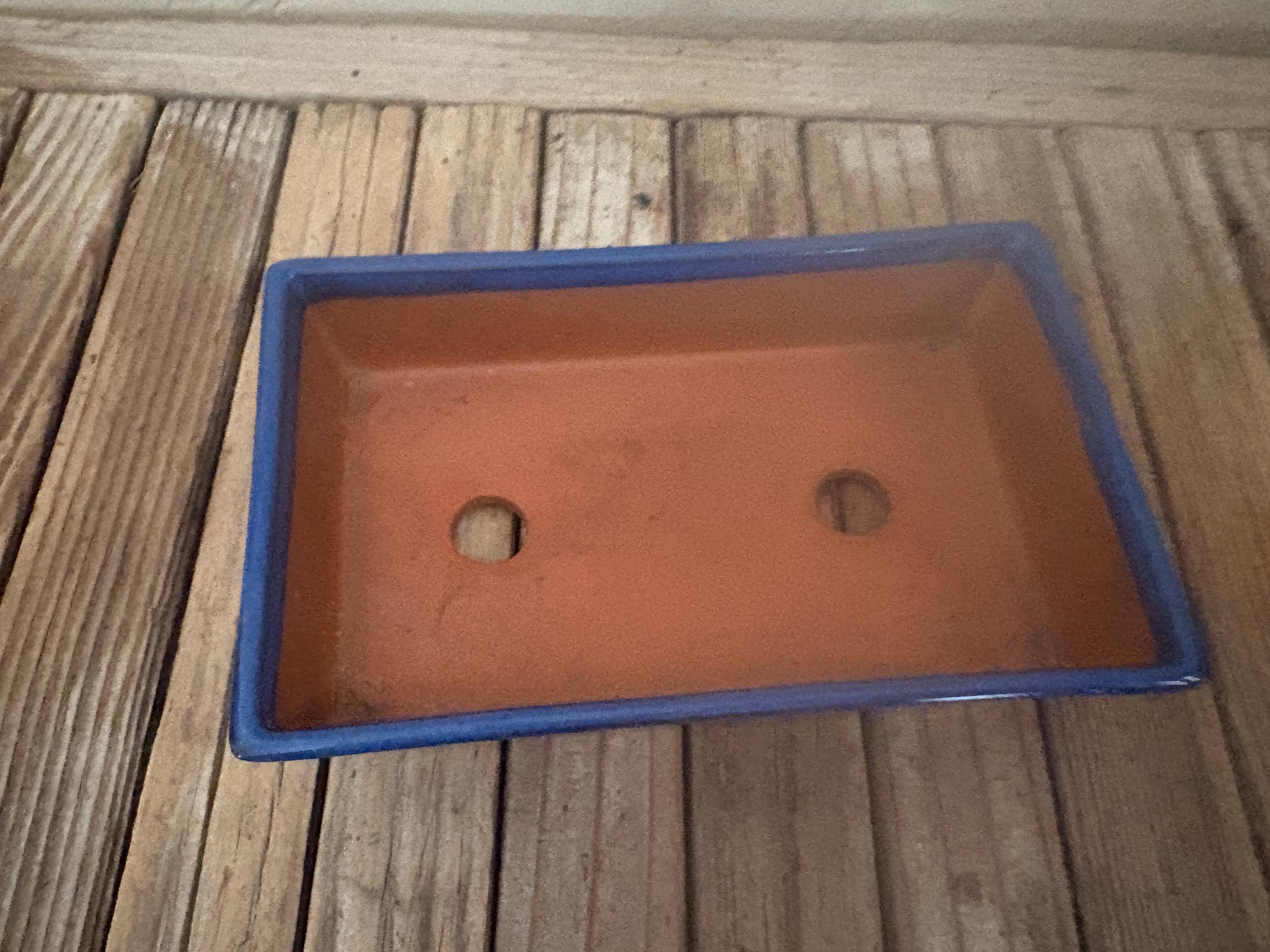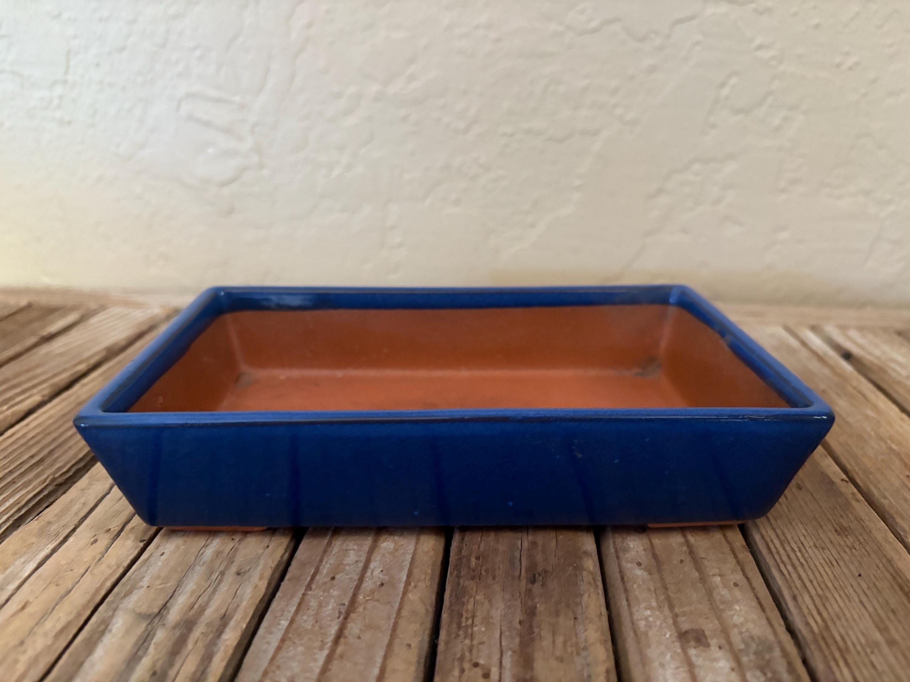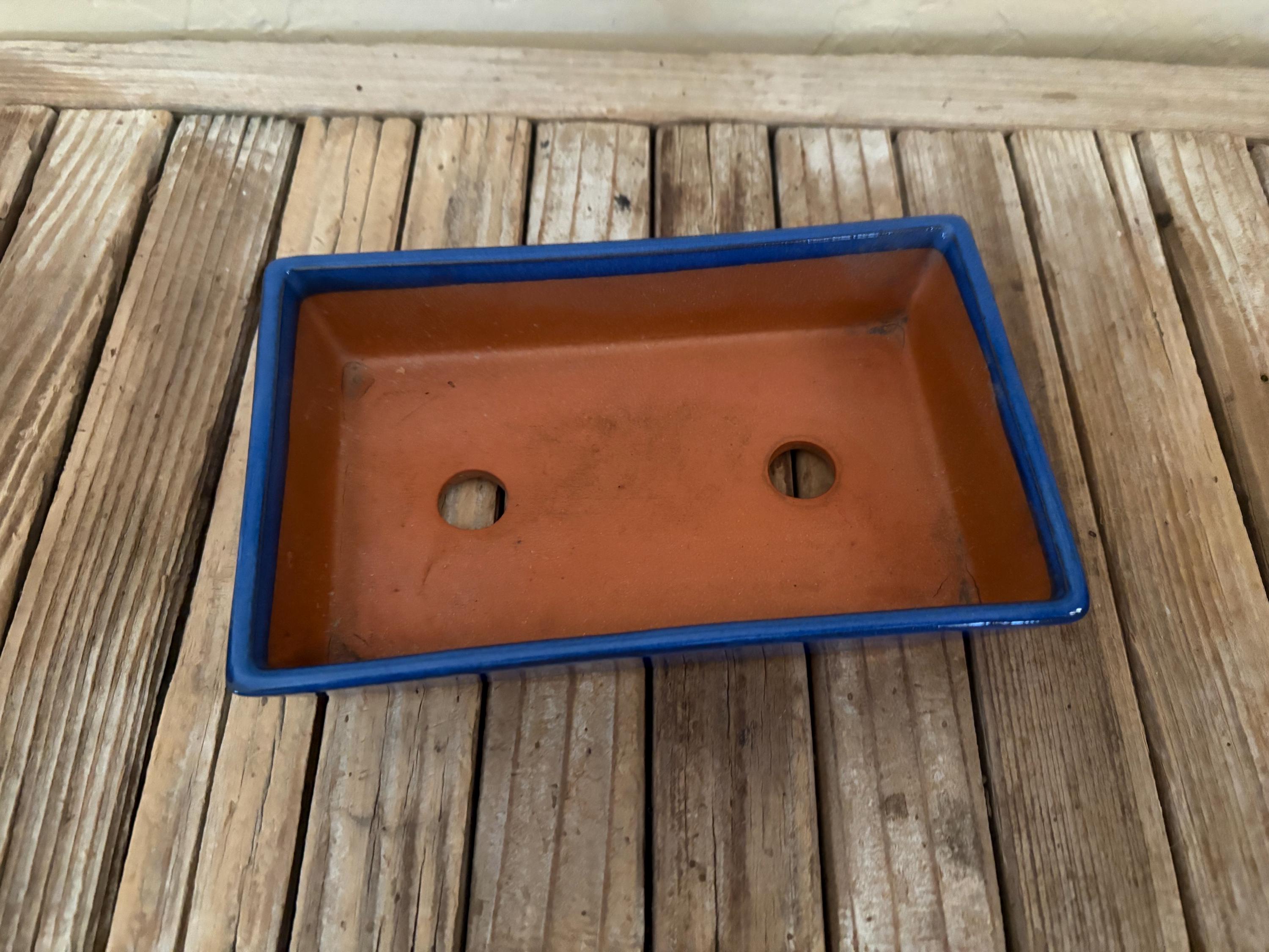 Vintage Japanese blue bonsai pot. In great used condition, normal wear due to age and use. The pot has surface markings and scrapes. The pot has no chips or cracks, please see pictures. A beautiful pot to add to a collection or garden.