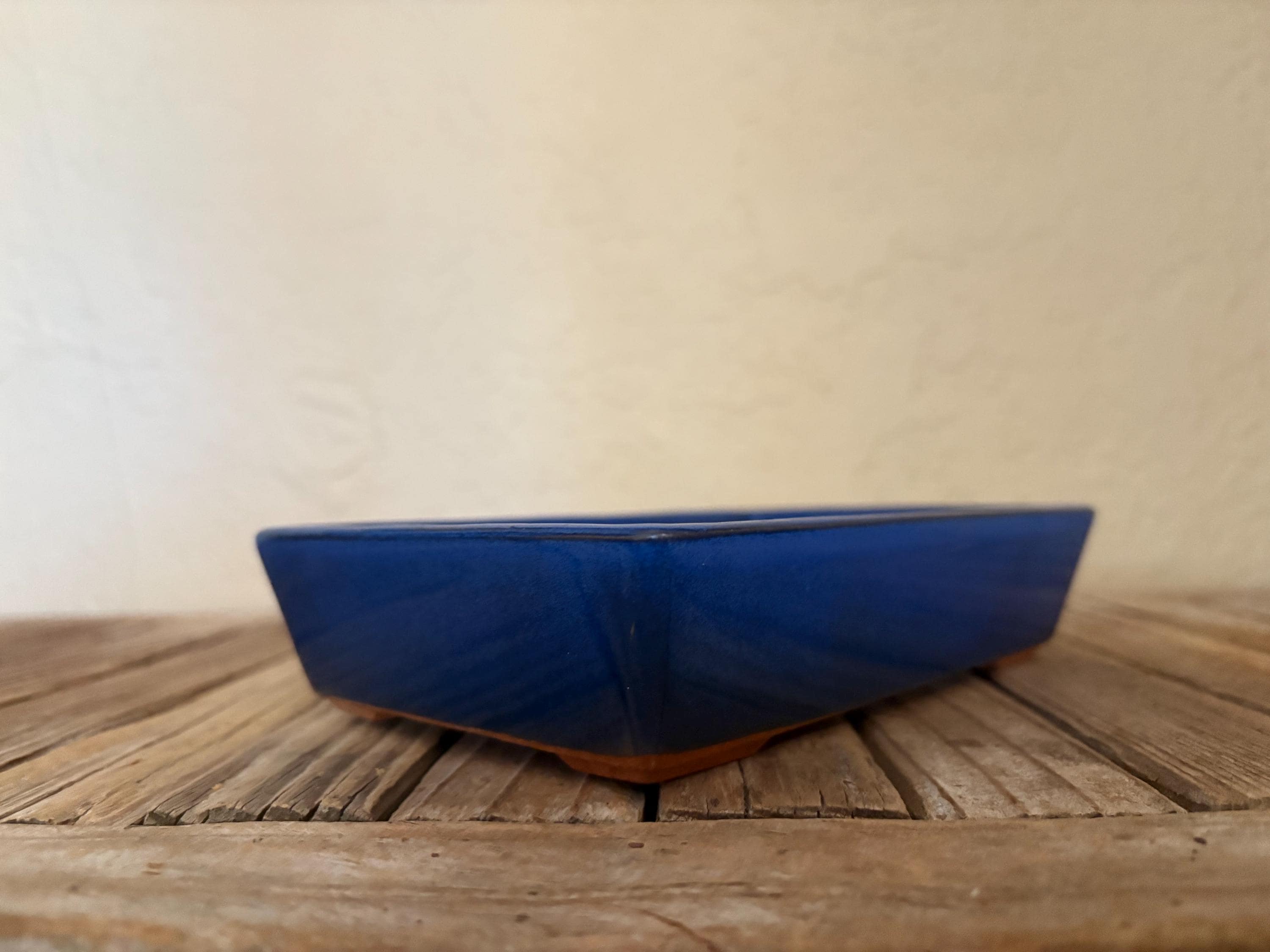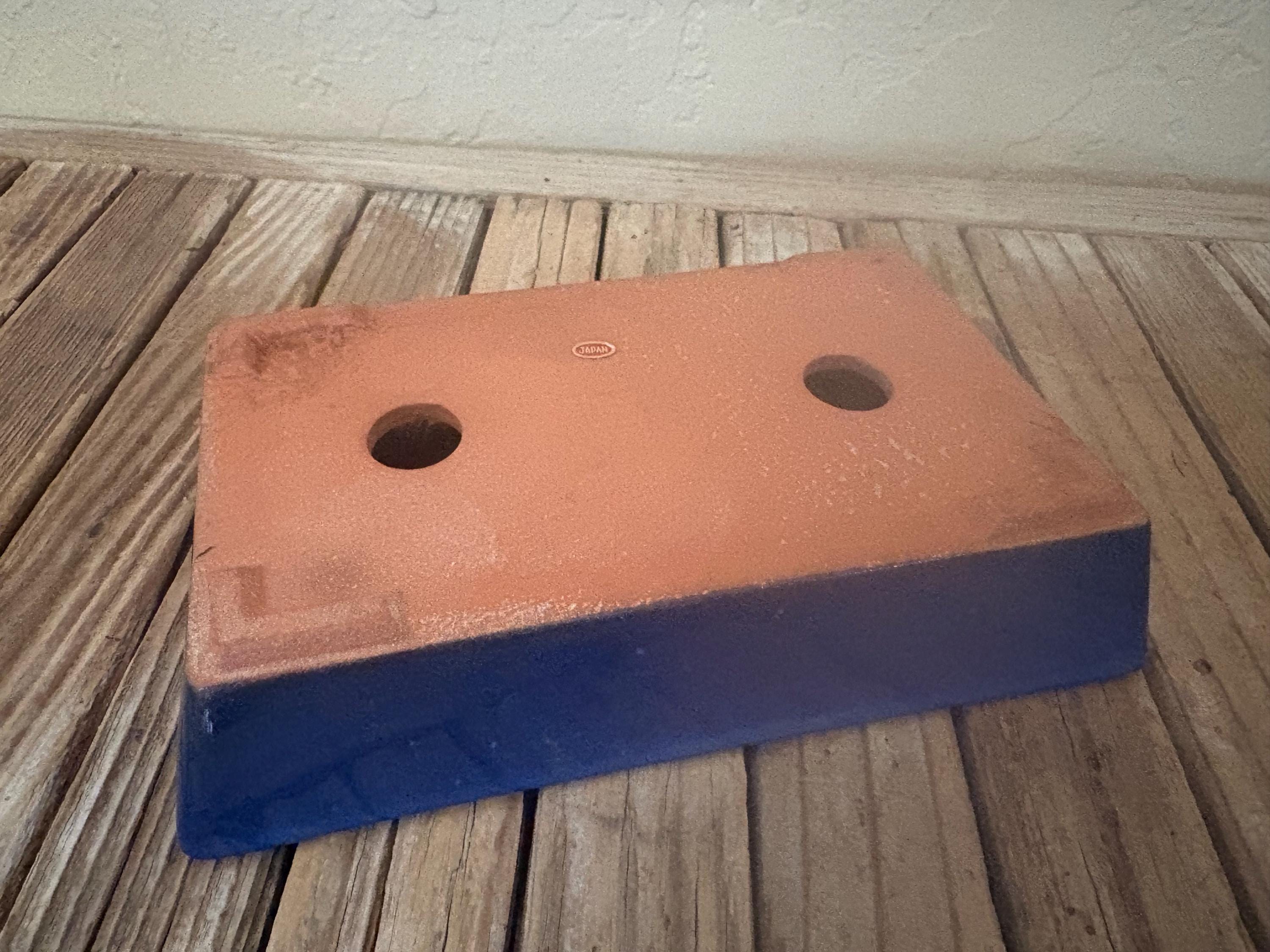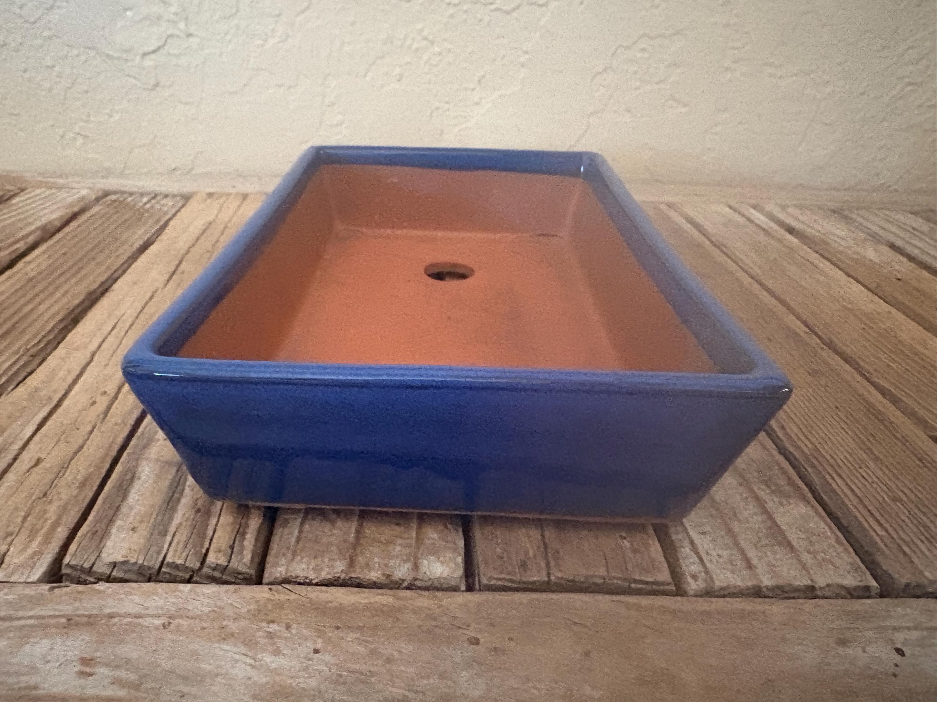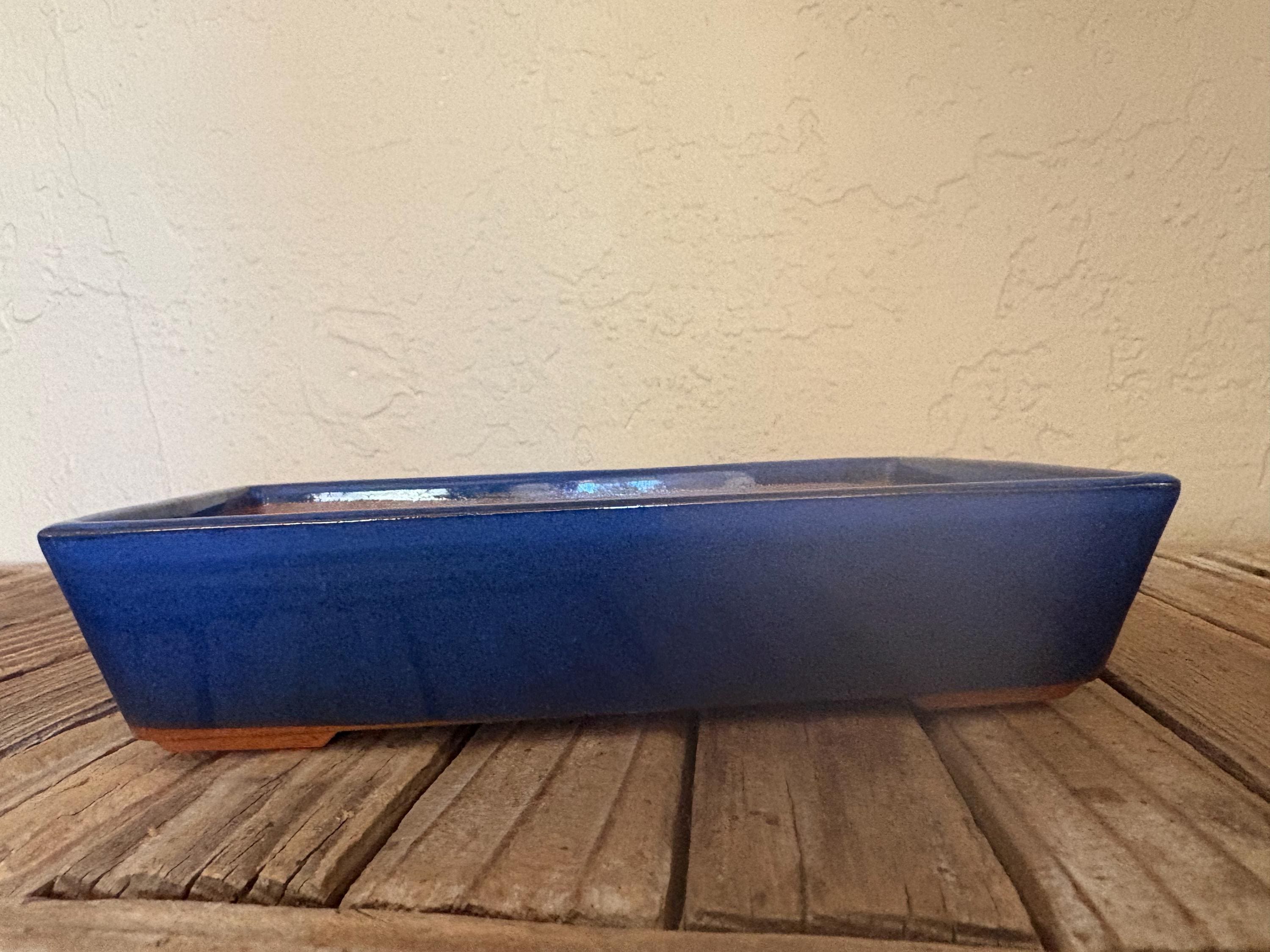 Vintage Japanese blue bonsai pot. In great used condition, normal wear due to age and use. The pot has surface markings and scrapes. The pot has no chips or cracks, please see pictures. A beautiful pot to add to a collection or garden.