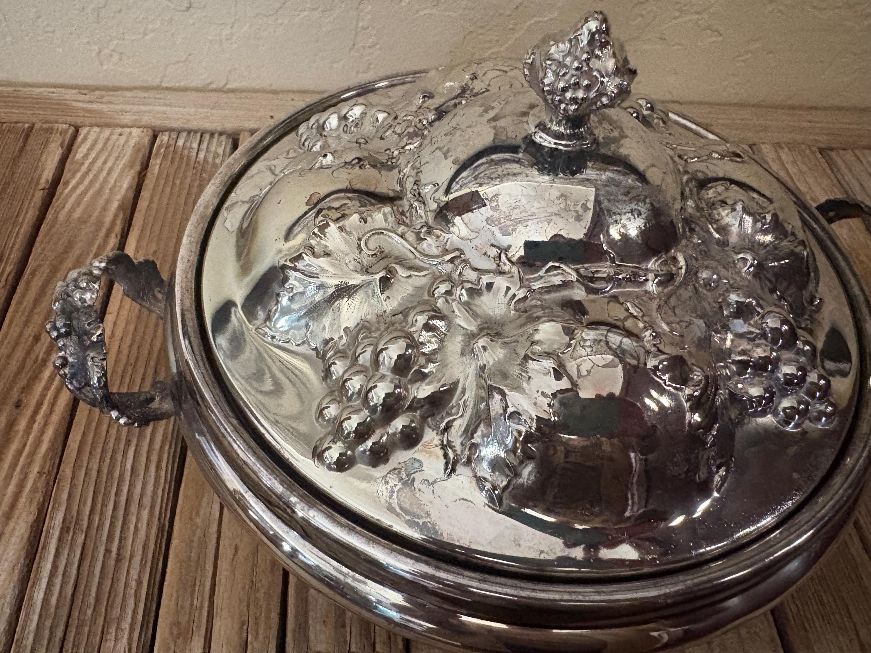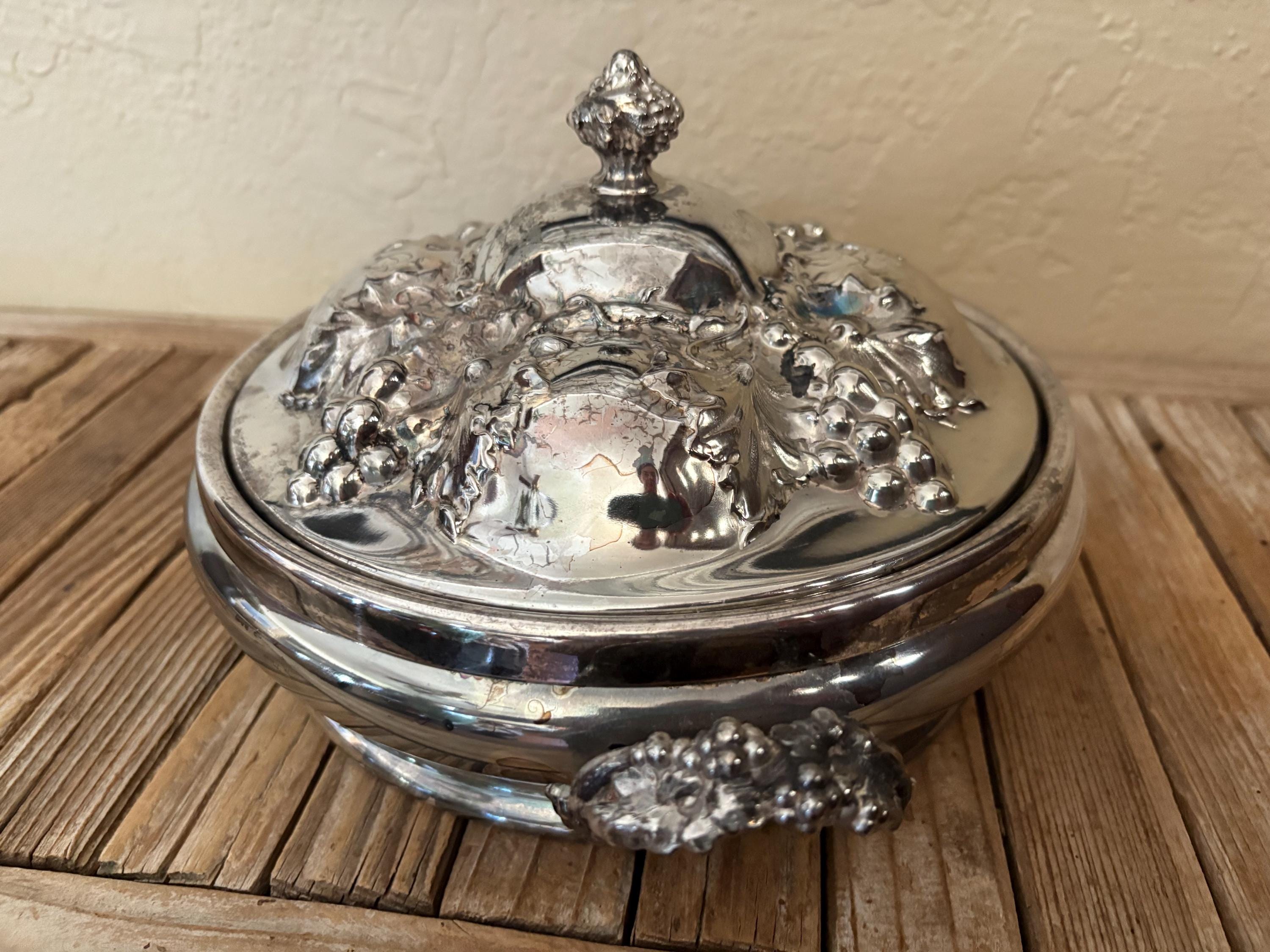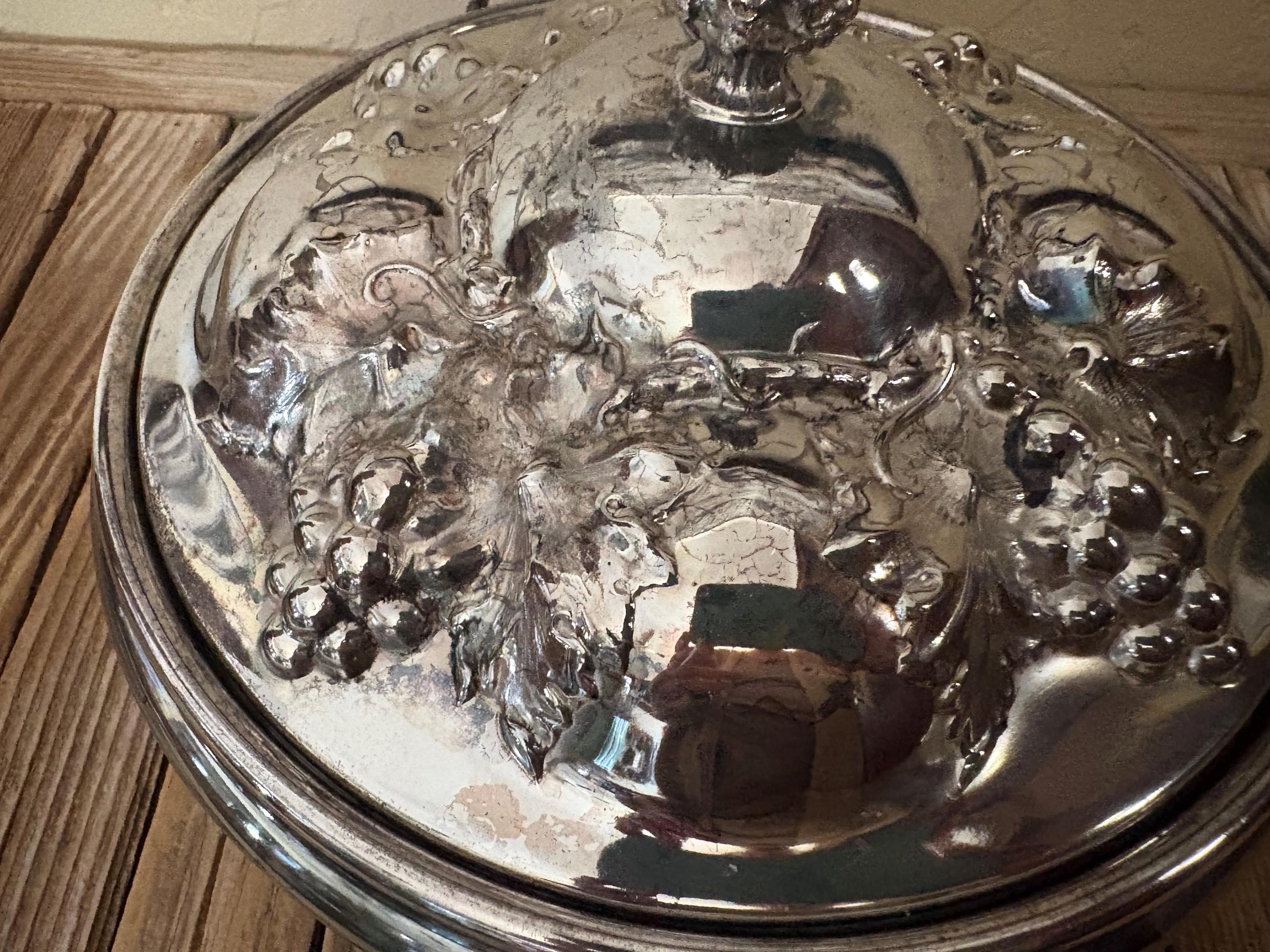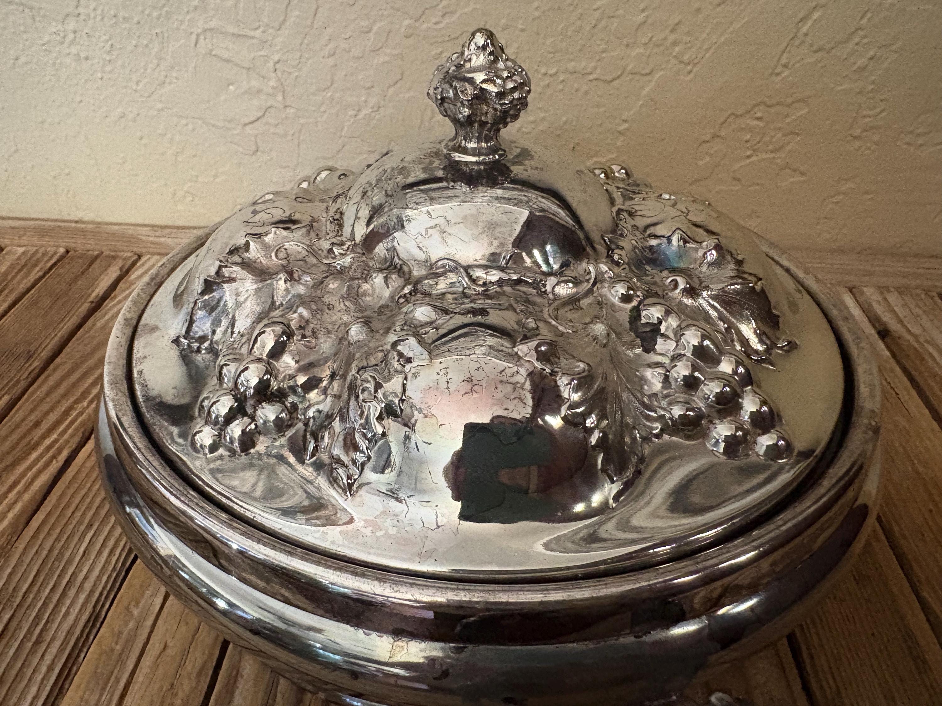 Antique silver plate Homan Mfg. Co. In great condition, normal wear due to age and use. There is surface scrapes and dings to the finish, and some slight discolorations and patina, please see pictures. A beautiful piece to add to your tabletop, collection or to give as a gift.