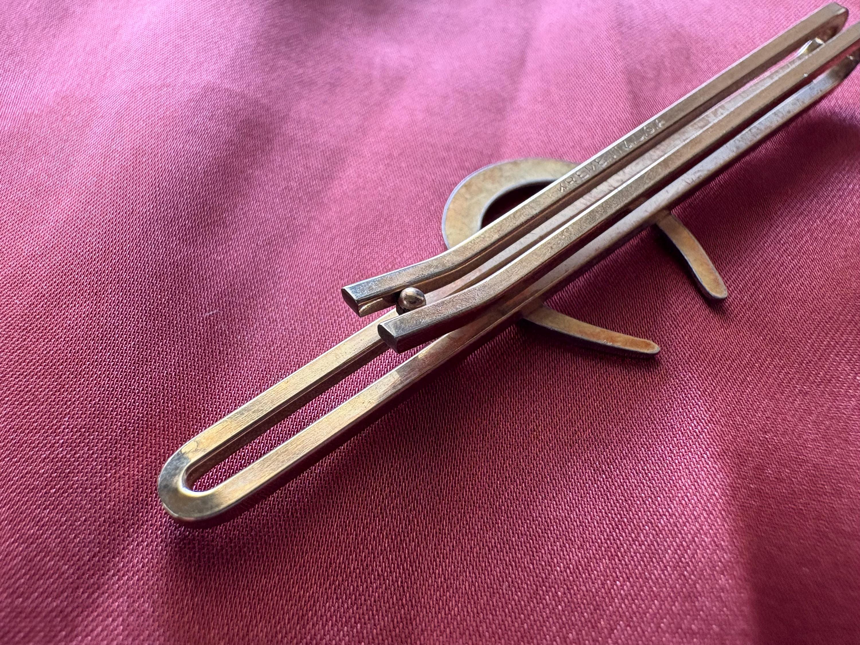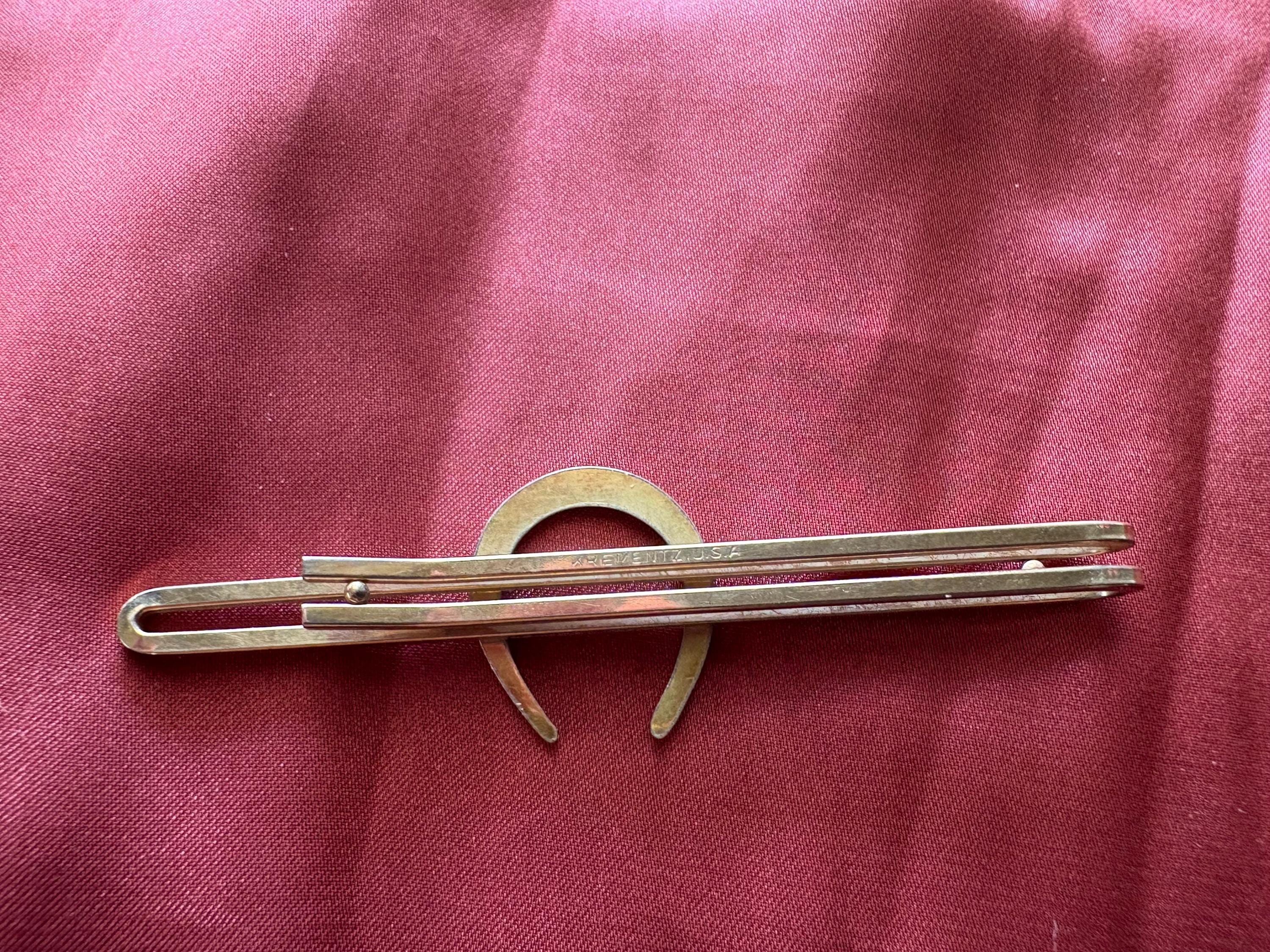 Vintage gold tone Krementz horseshoe tie clip. In great condition, normal wear due to age and use. The finish has some surface imperfections and scrapes, please see pictures. A very cool old piece to add to your collection or to give as a gift.