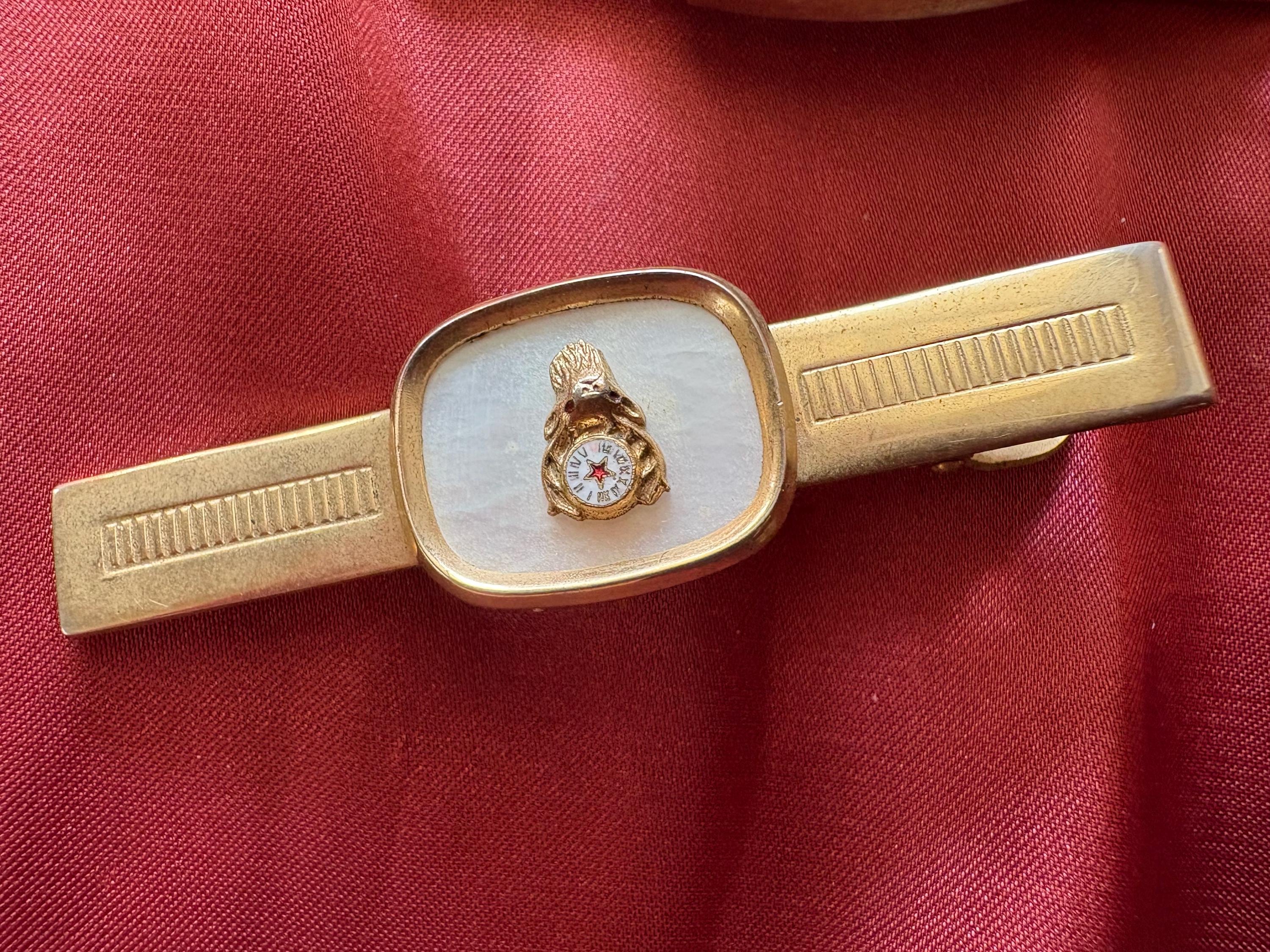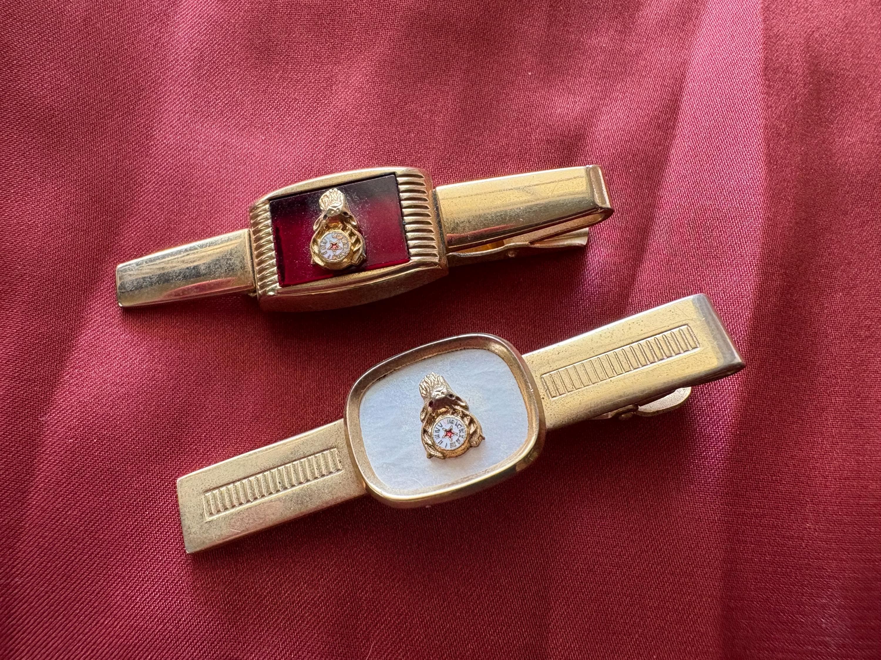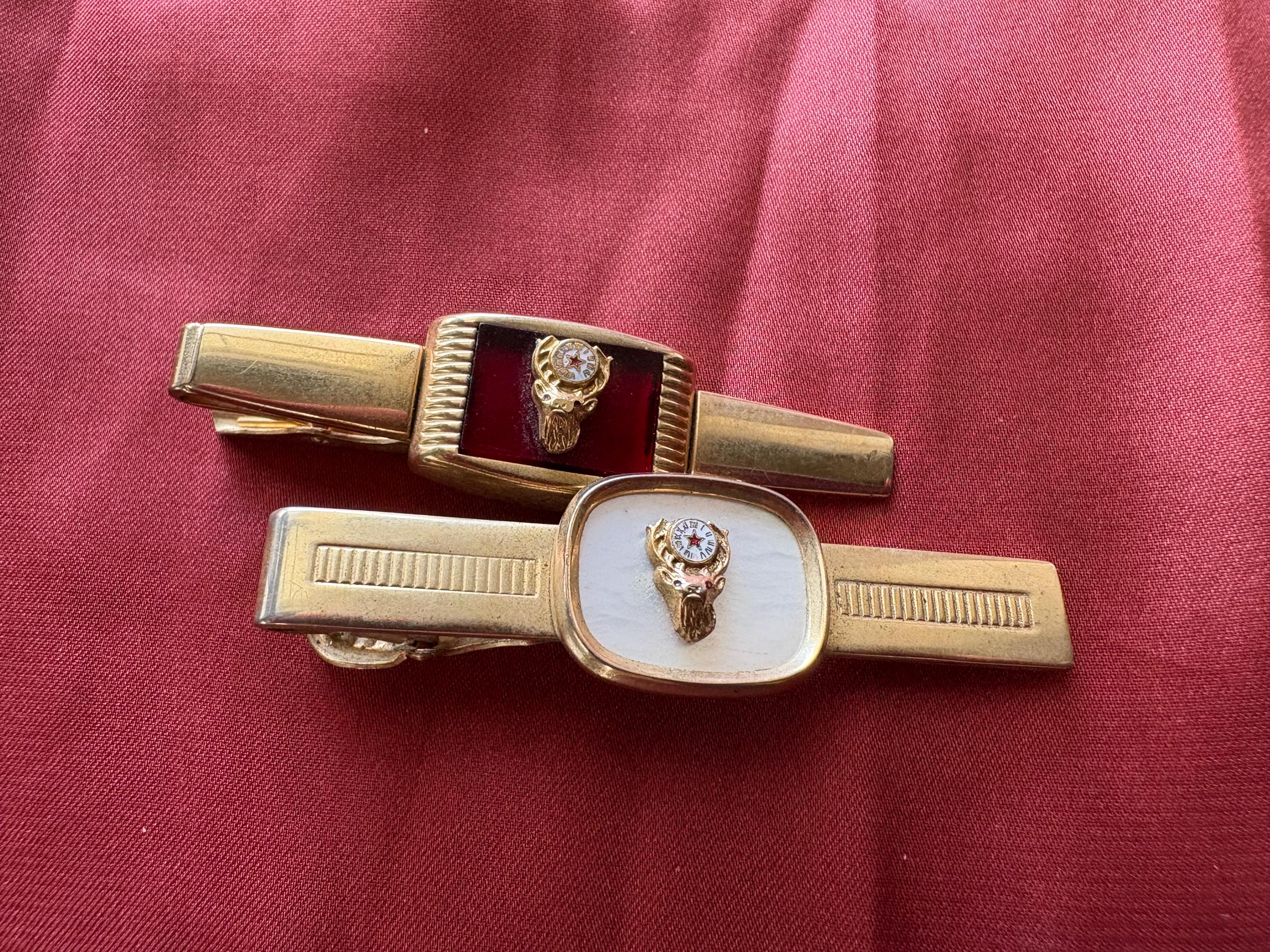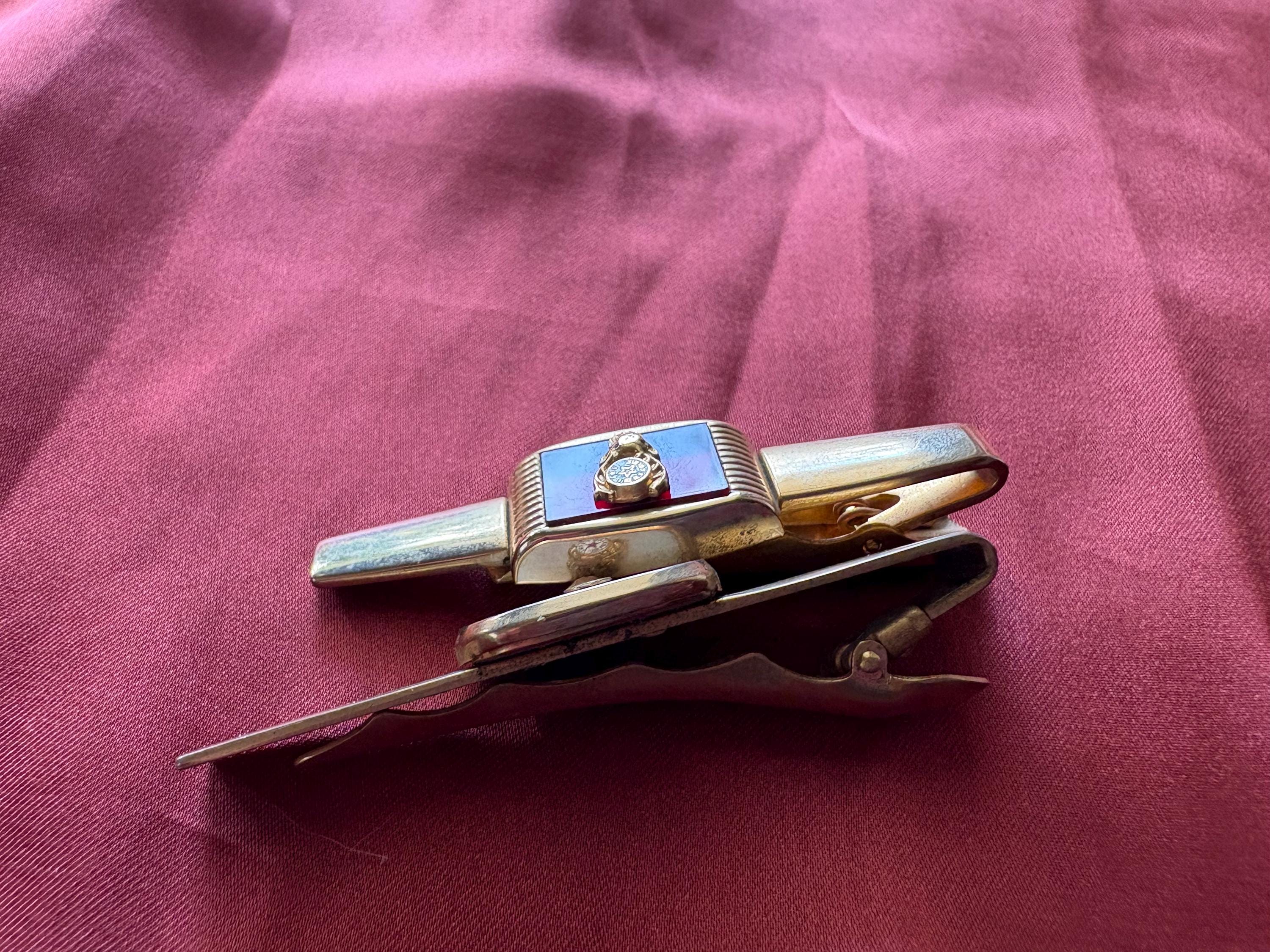 Vintage pair of Anson wide tie clips. In great condition, normal wear due to age and use. The gold metal has some surface imperfections and scrapes, please see pictures. I'm not sure of the materials. A very cool set to add your collection or to give as a gift.