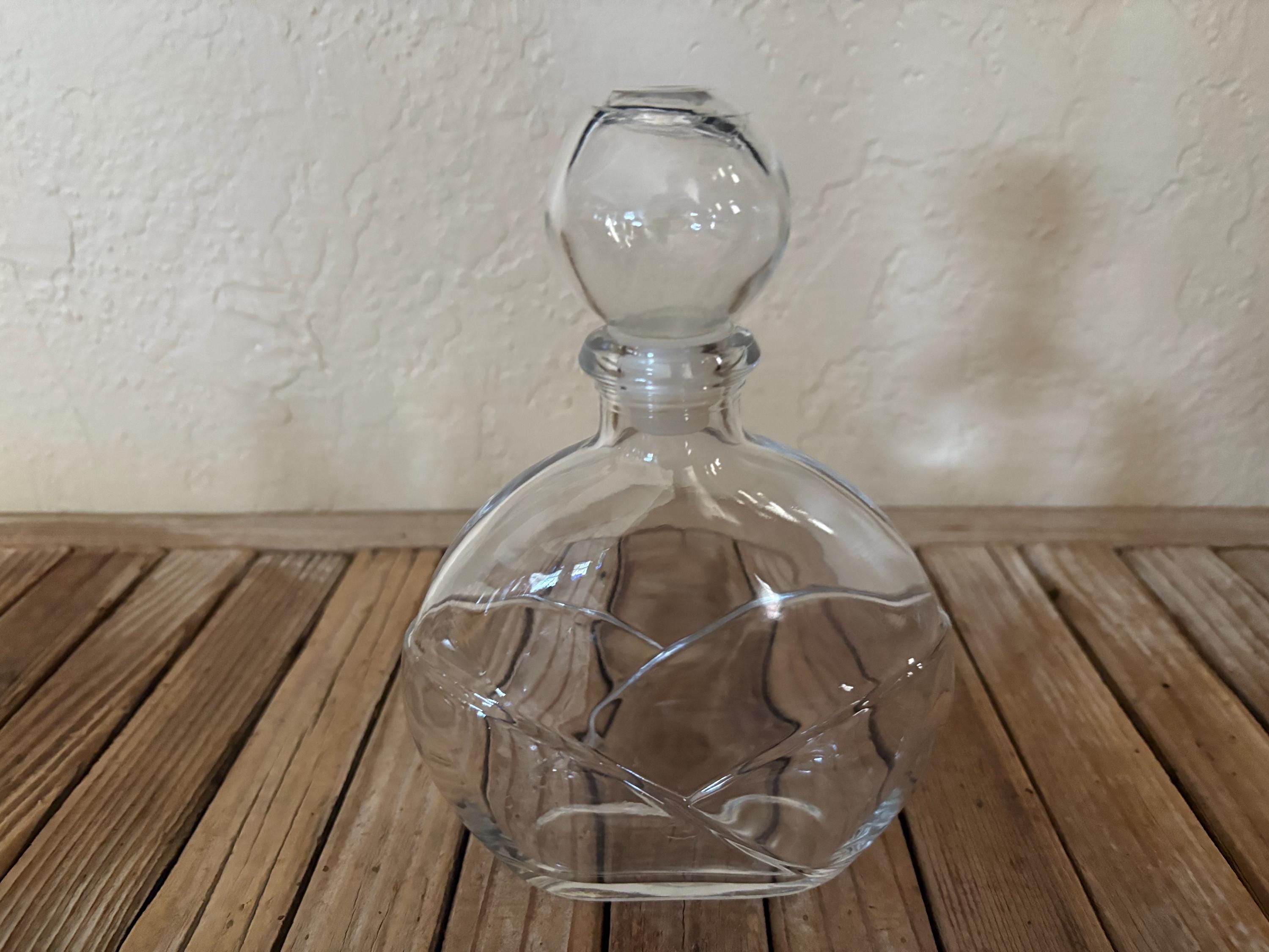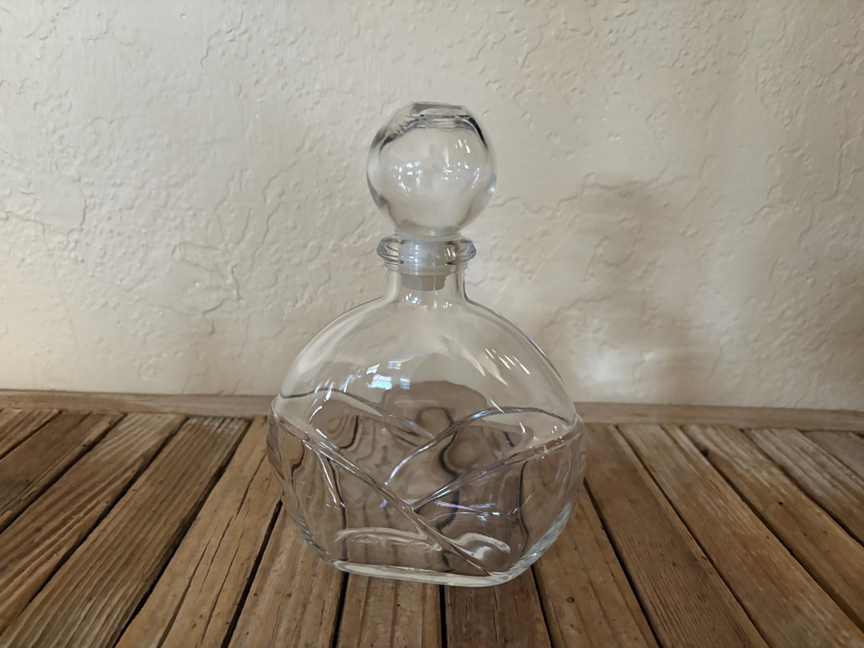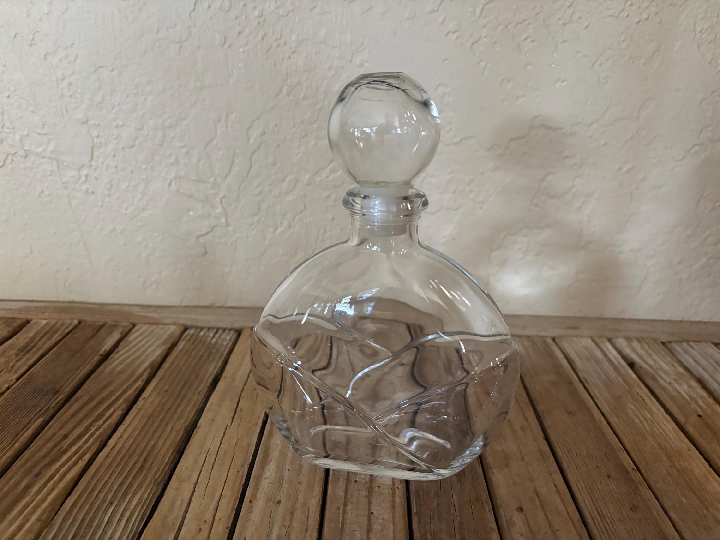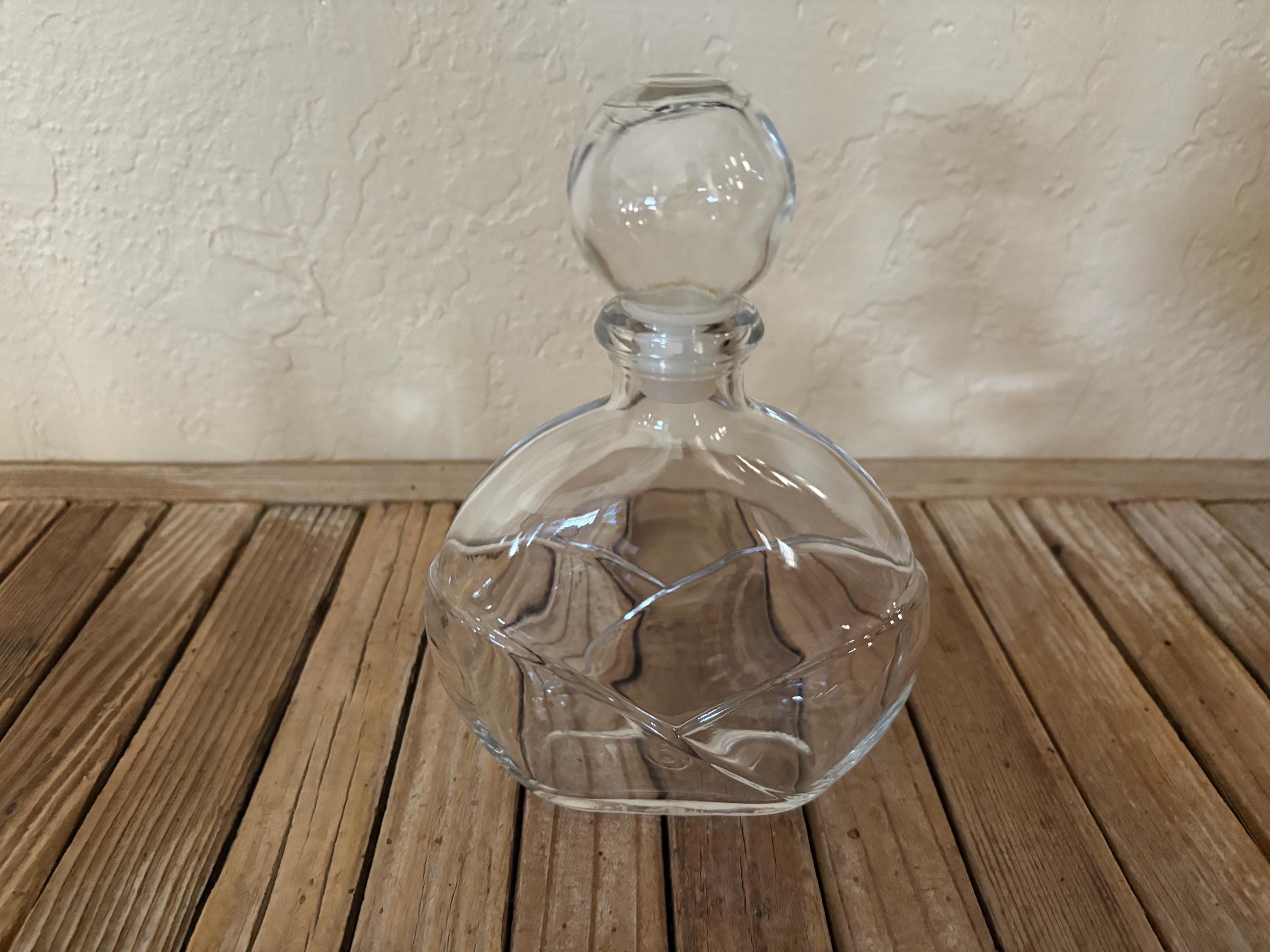 Vintage pressed glass perfume/liquor bottle. In great vintage condition, normal wear due to age and use. The piece has some surface scrapes and markings with no chips or cracks, please see pictures. A beautiful piece for everyday use, to give as a give or add to a collection.