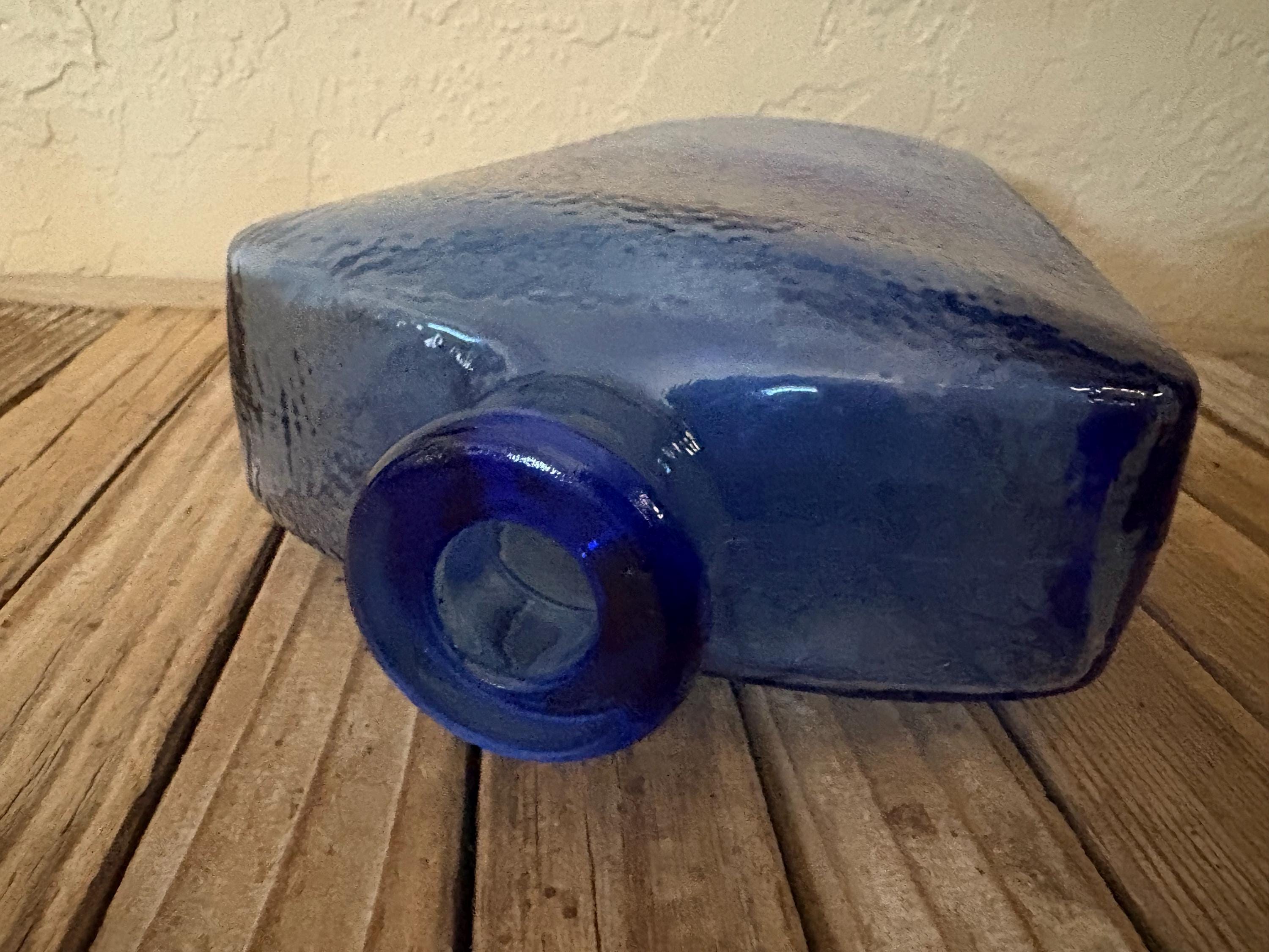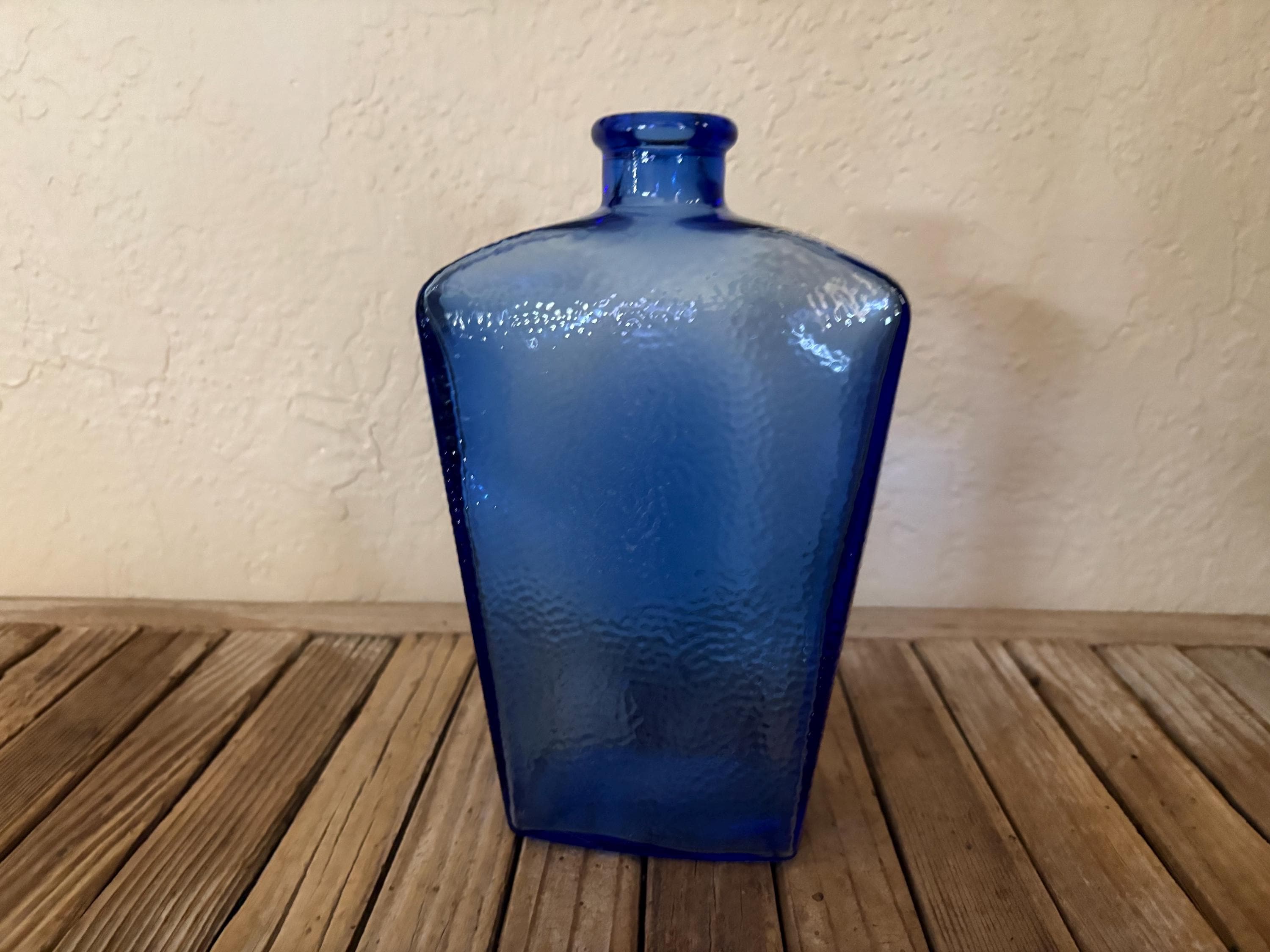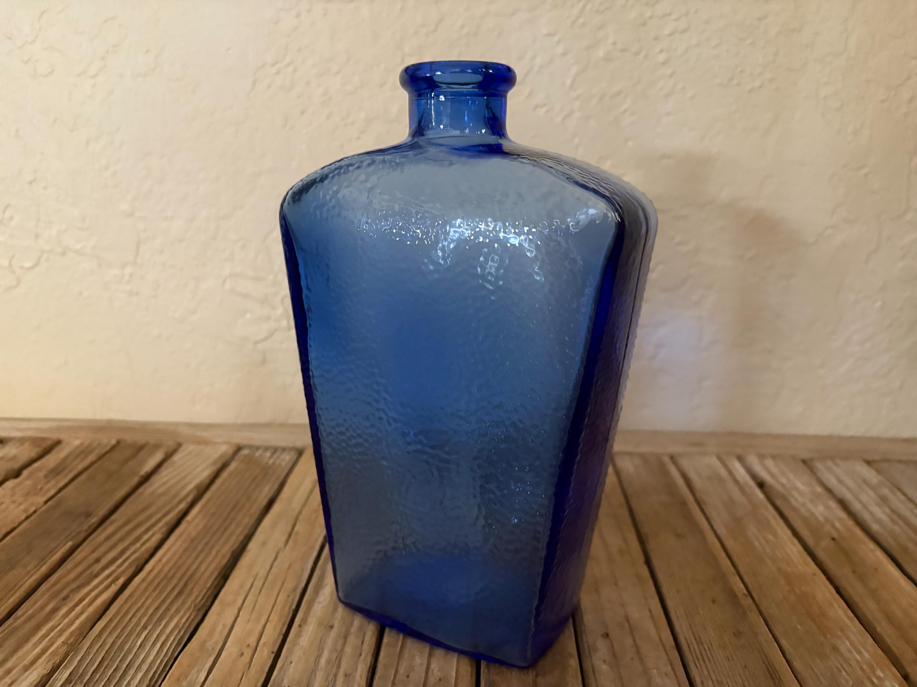 Vintage textured Canada blue bottle. In great condition, normal wear due to age and use. Some slight discoloration on the inside of the bottle and the bottle has no lid, with no chips or cracks, please see pictures. A cool, unique bottle with great detail to add to your home or collection.