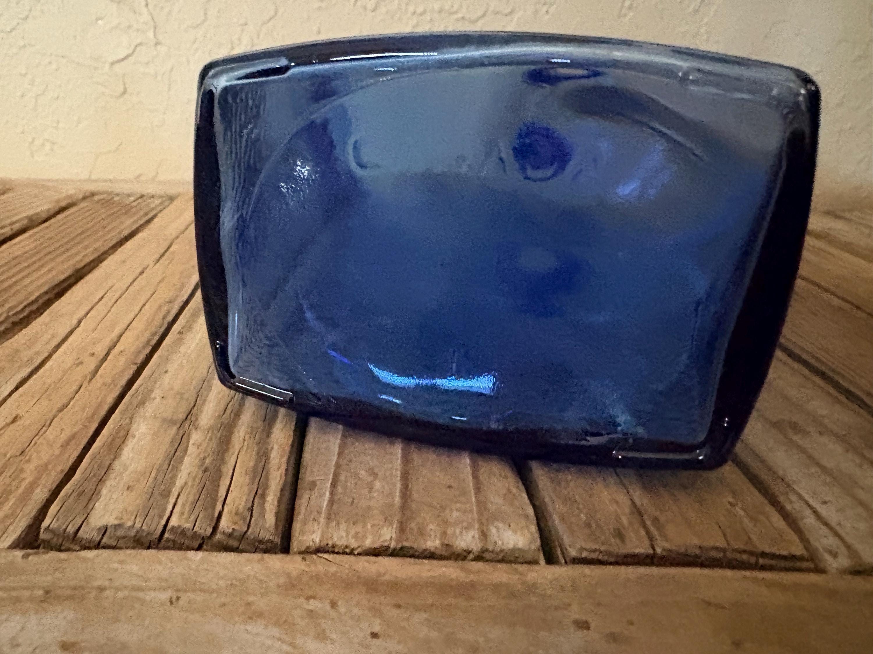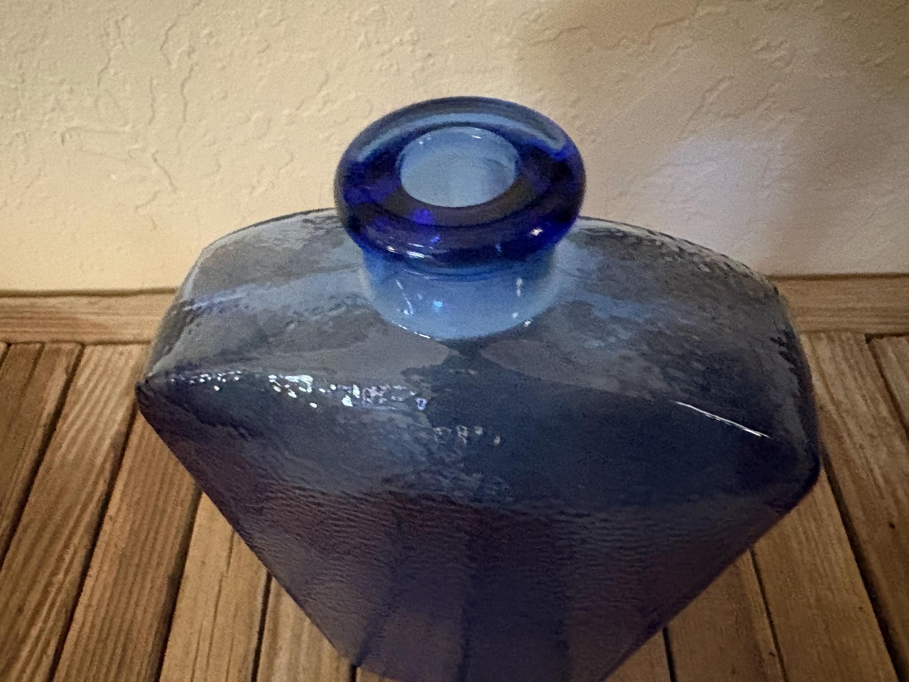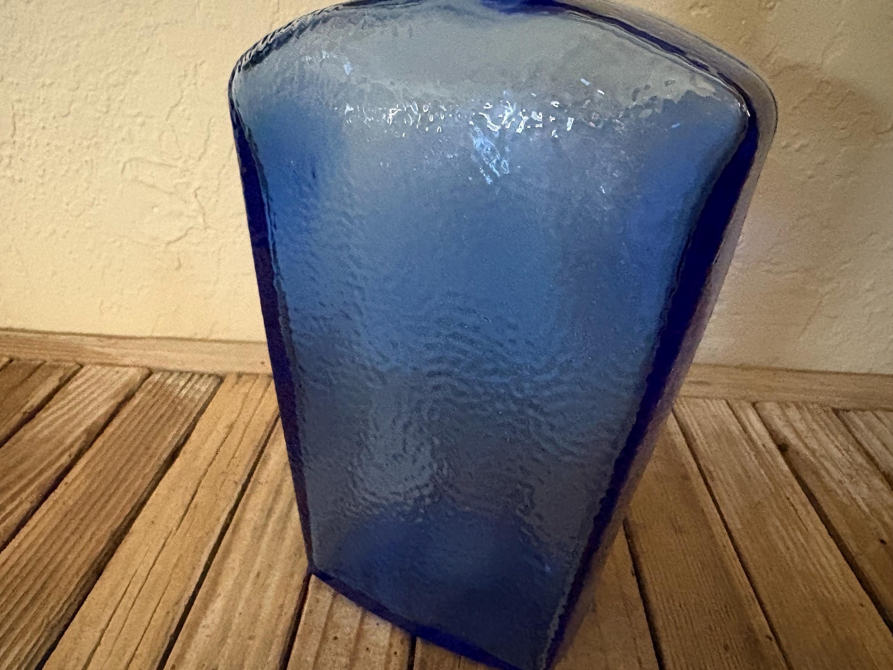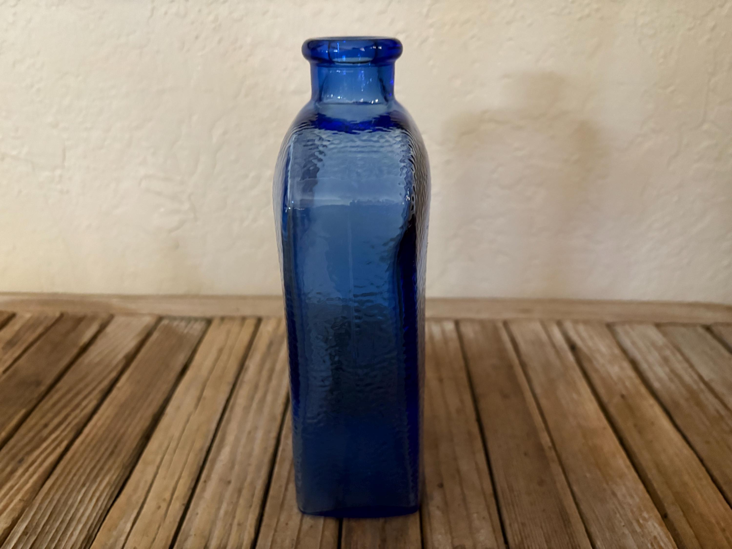 Vintage textured Canada blue bottle. In great condition, normal wear due to age and use. Some slight discoloration on the inside of the bottle and the bottle has no lid, with no chips or cracks, please see pictures. A cool, unique bottle with great detail to add to your home or collection.