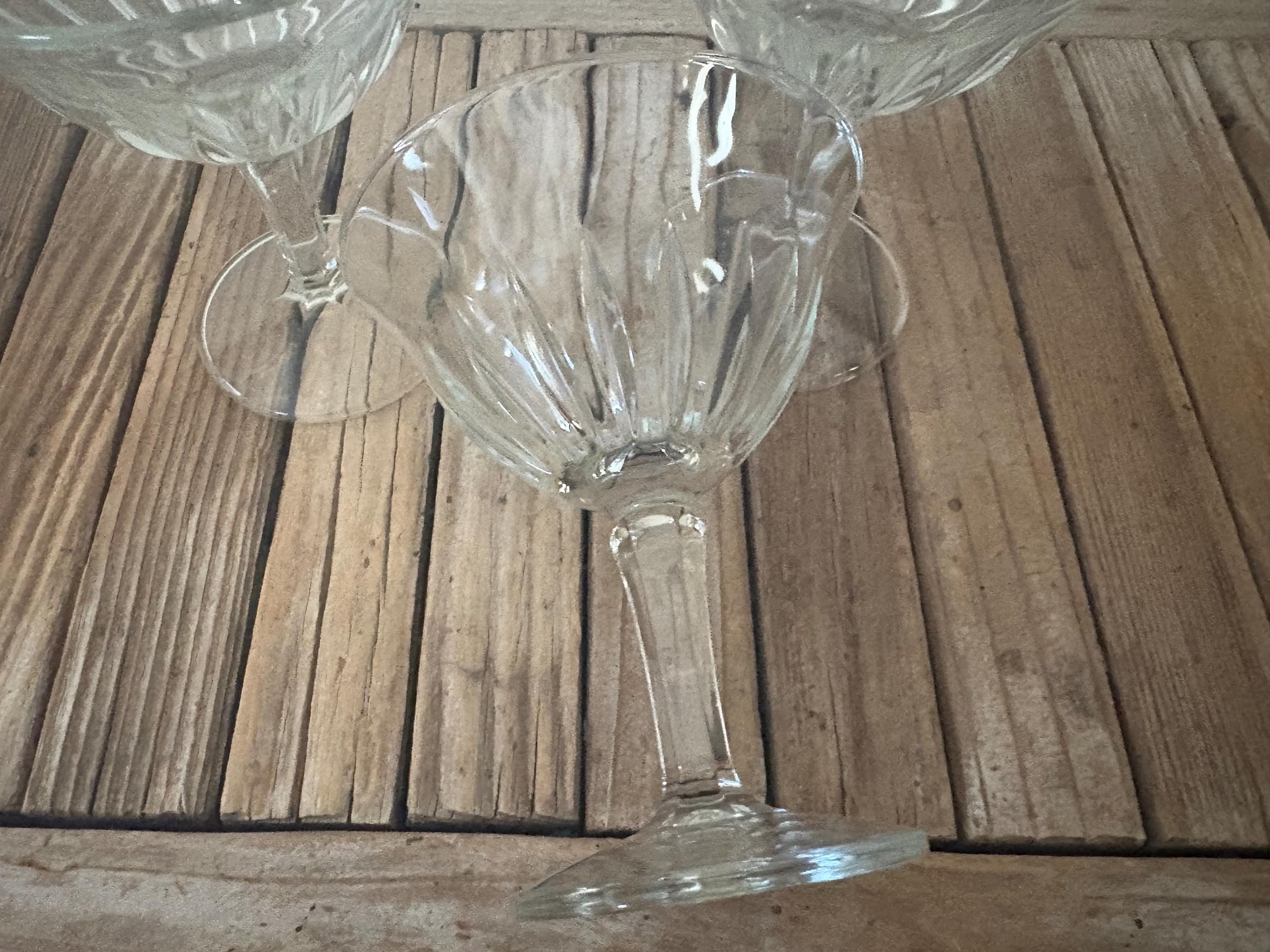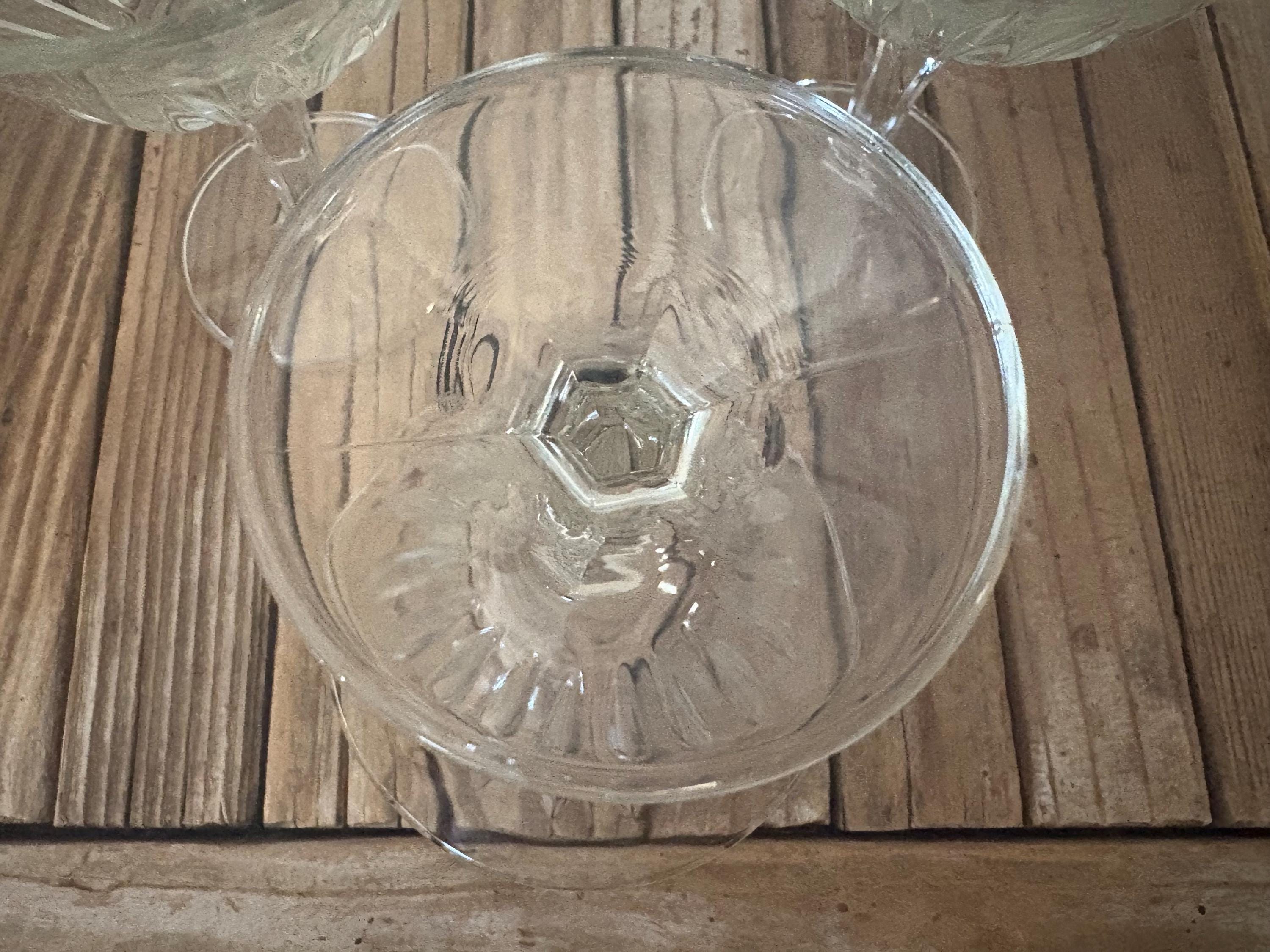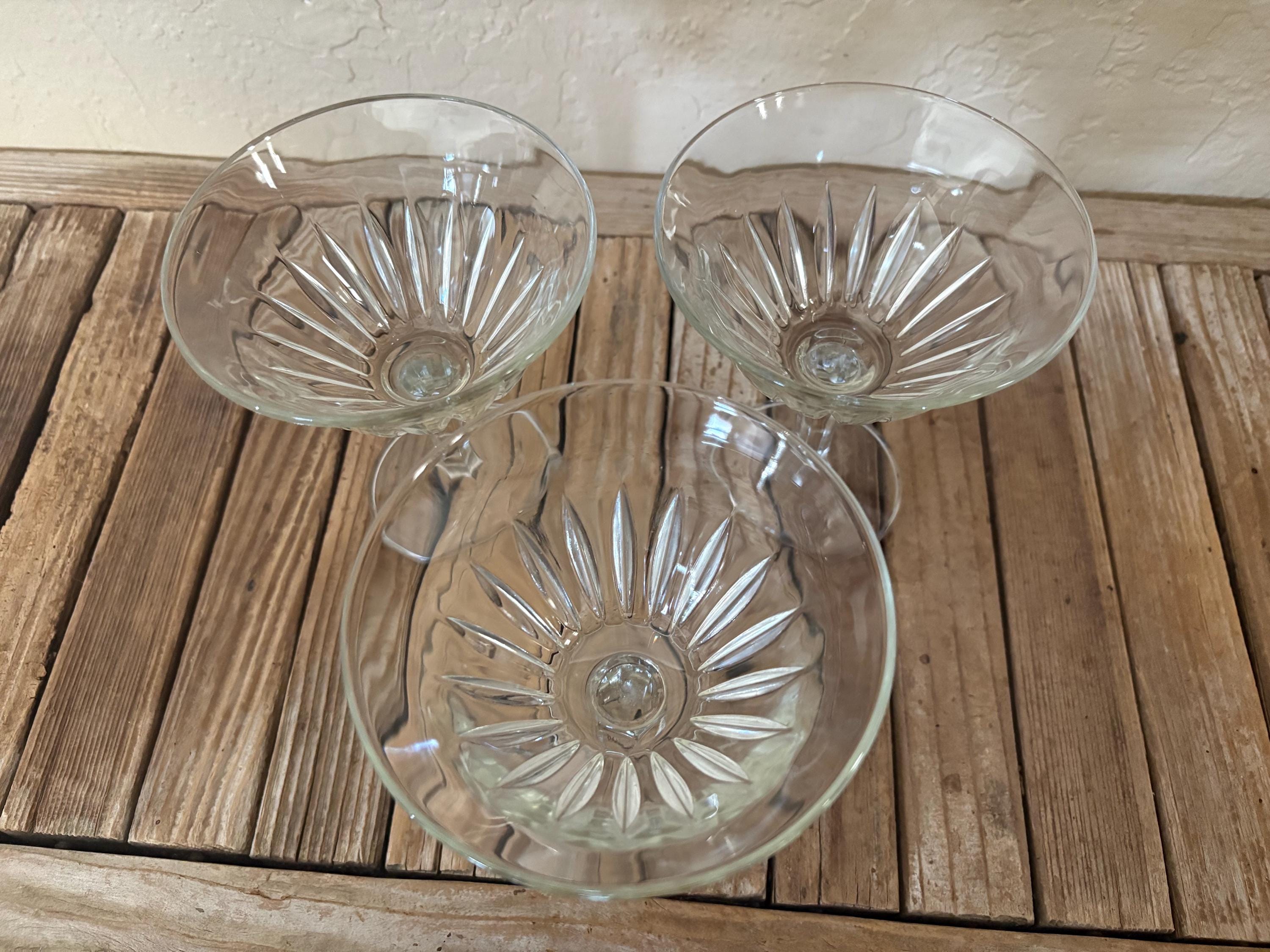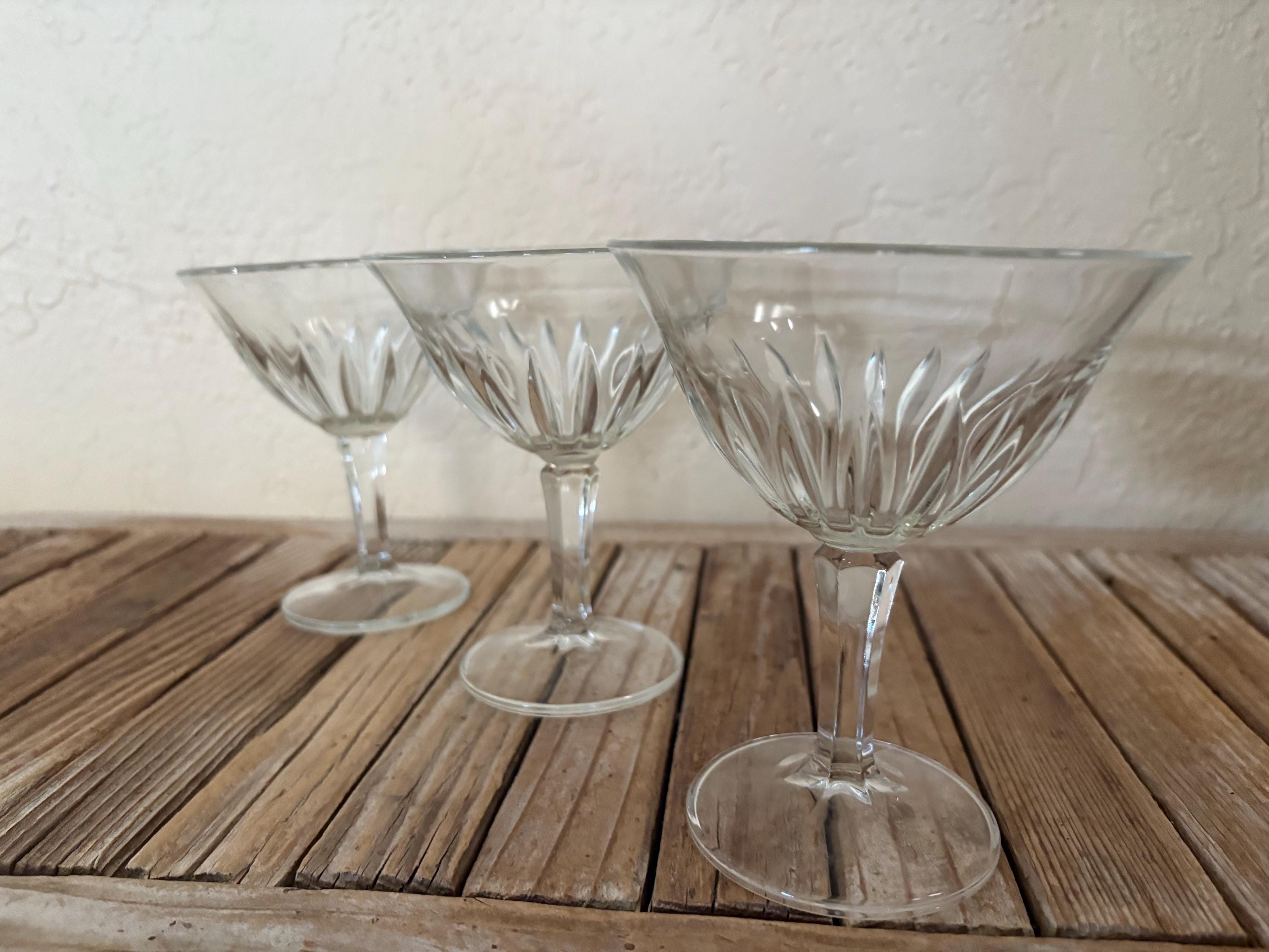 Vintage Italian set of 3 cut glass champagne coupes. In great condition, normal wear due to age and use. The glasses have surface scrapes and markings to the finish, and no chips or cracks, please see pictures. A beautiful set to use for an upcoming party or bar.