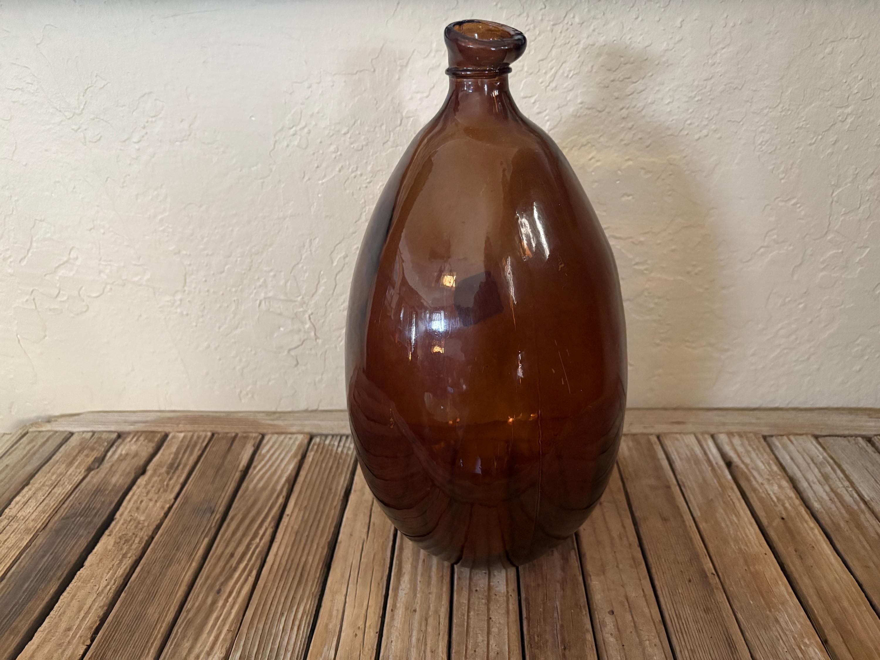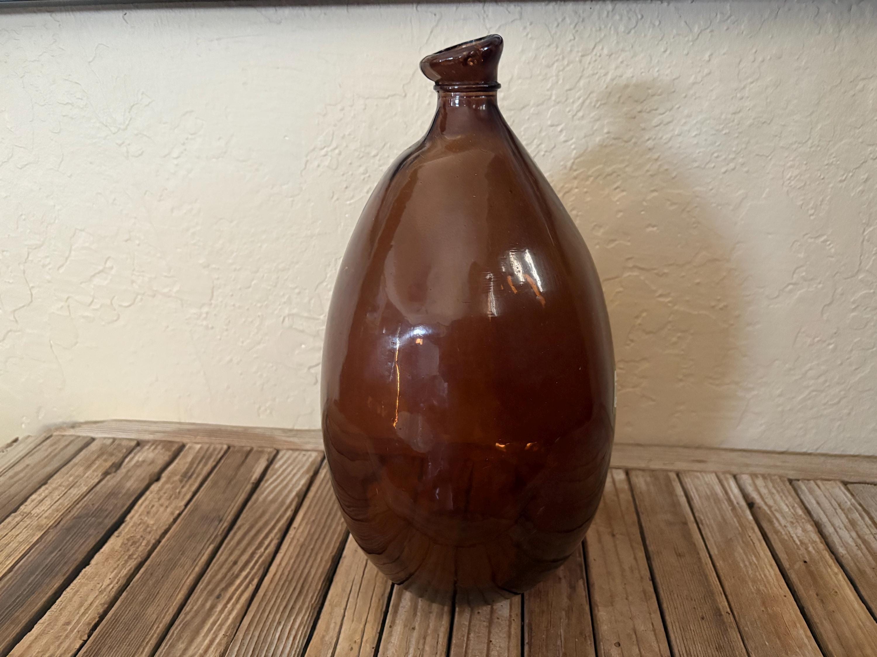 Vintage brown bottle. In good condition, normal wear due to age and use. The bottle has some surface scrapes and markings to it, it has no chips or cracks. A great unique bottle to add to your home or collection.