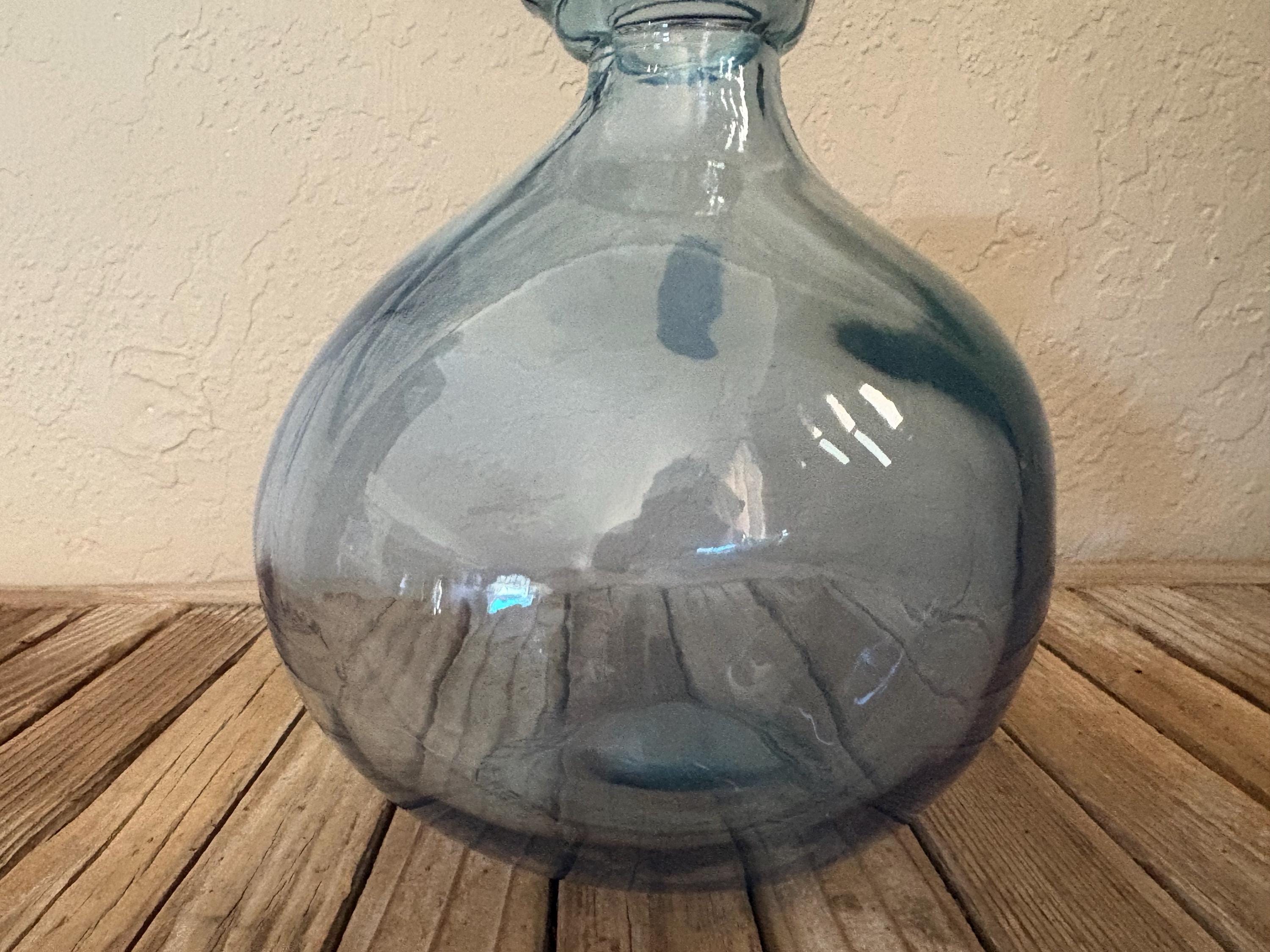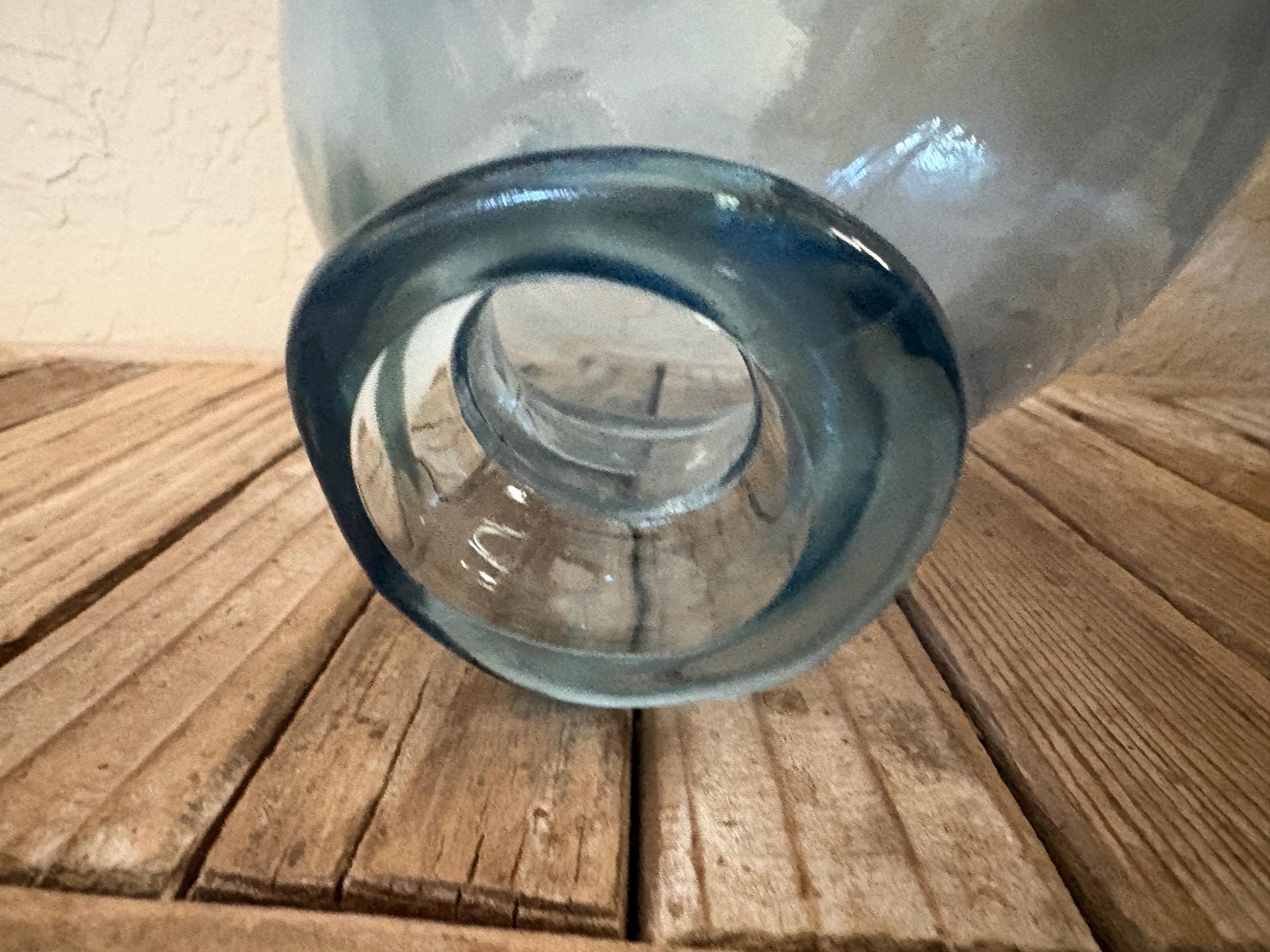 Vintage blue glass bottle. In good condition, normal wear due to age and use. There are some surface scrapes, scratches and residual film, with no chips of cracks, please see pictures. I believe this may be flash painted. A cool piece to add to your home,