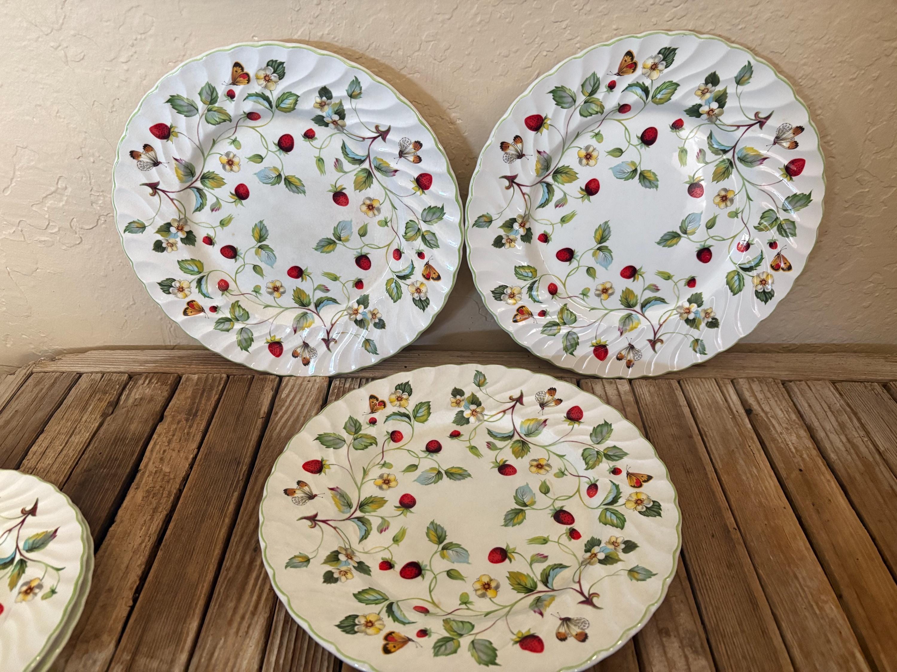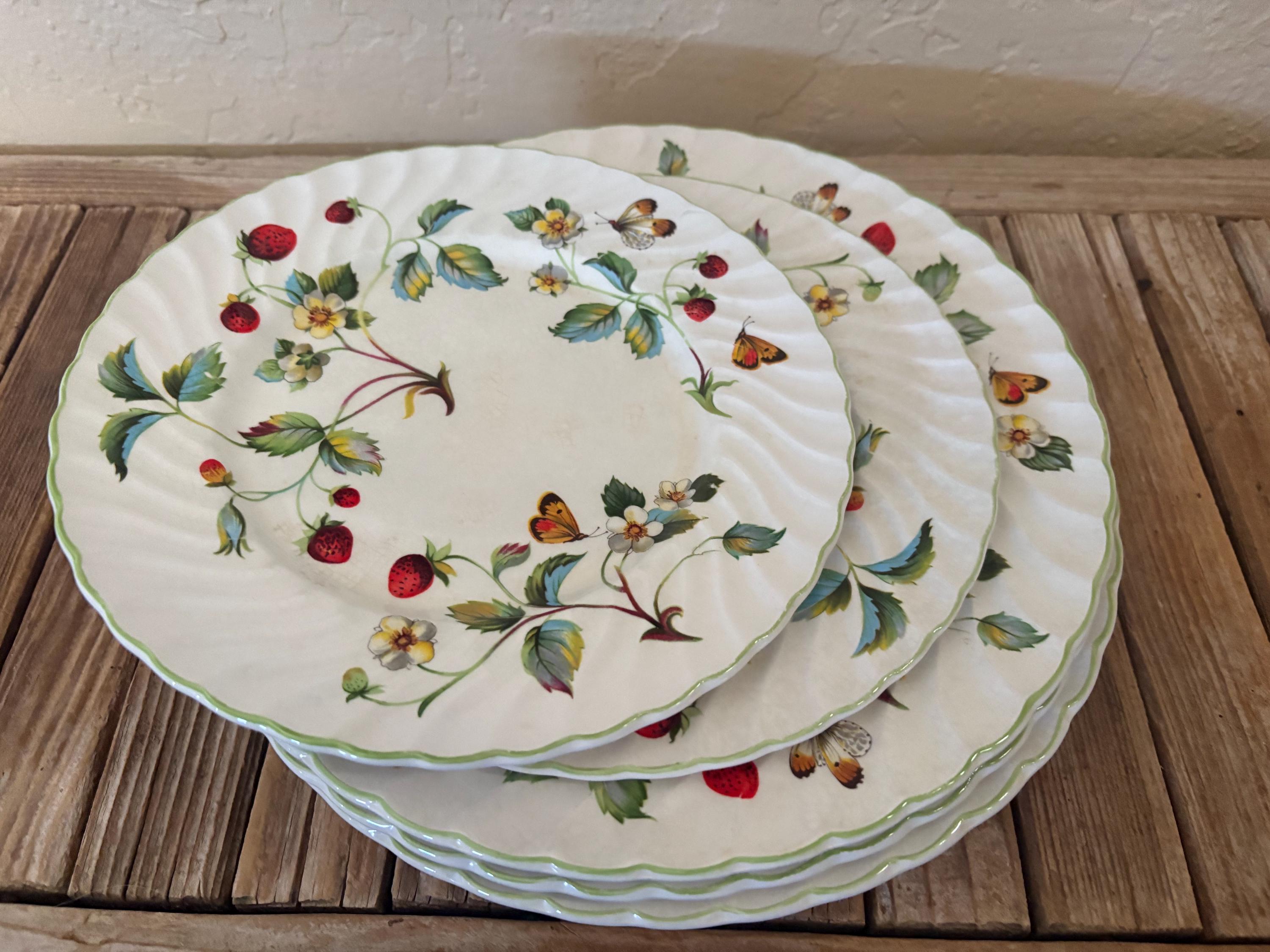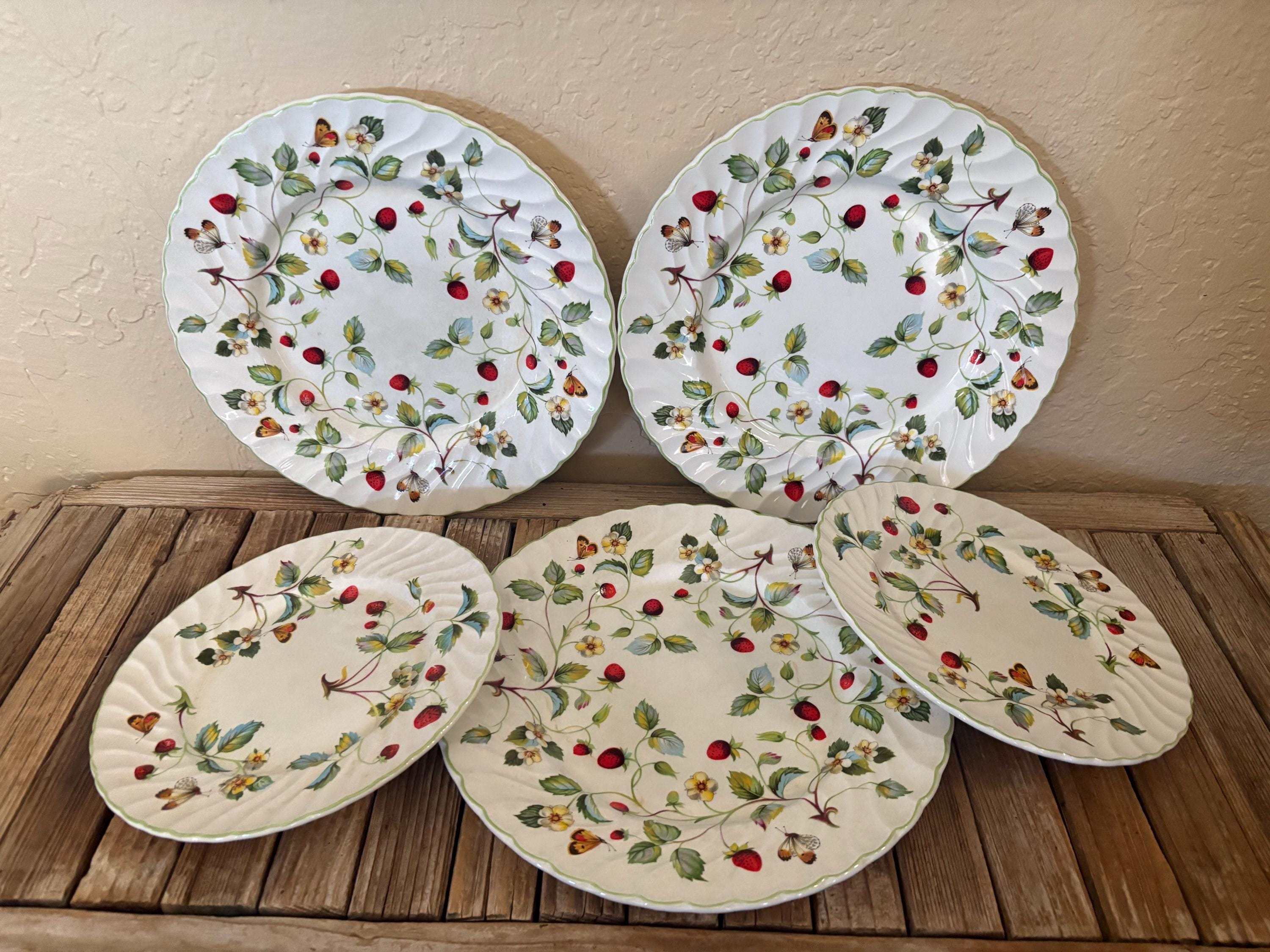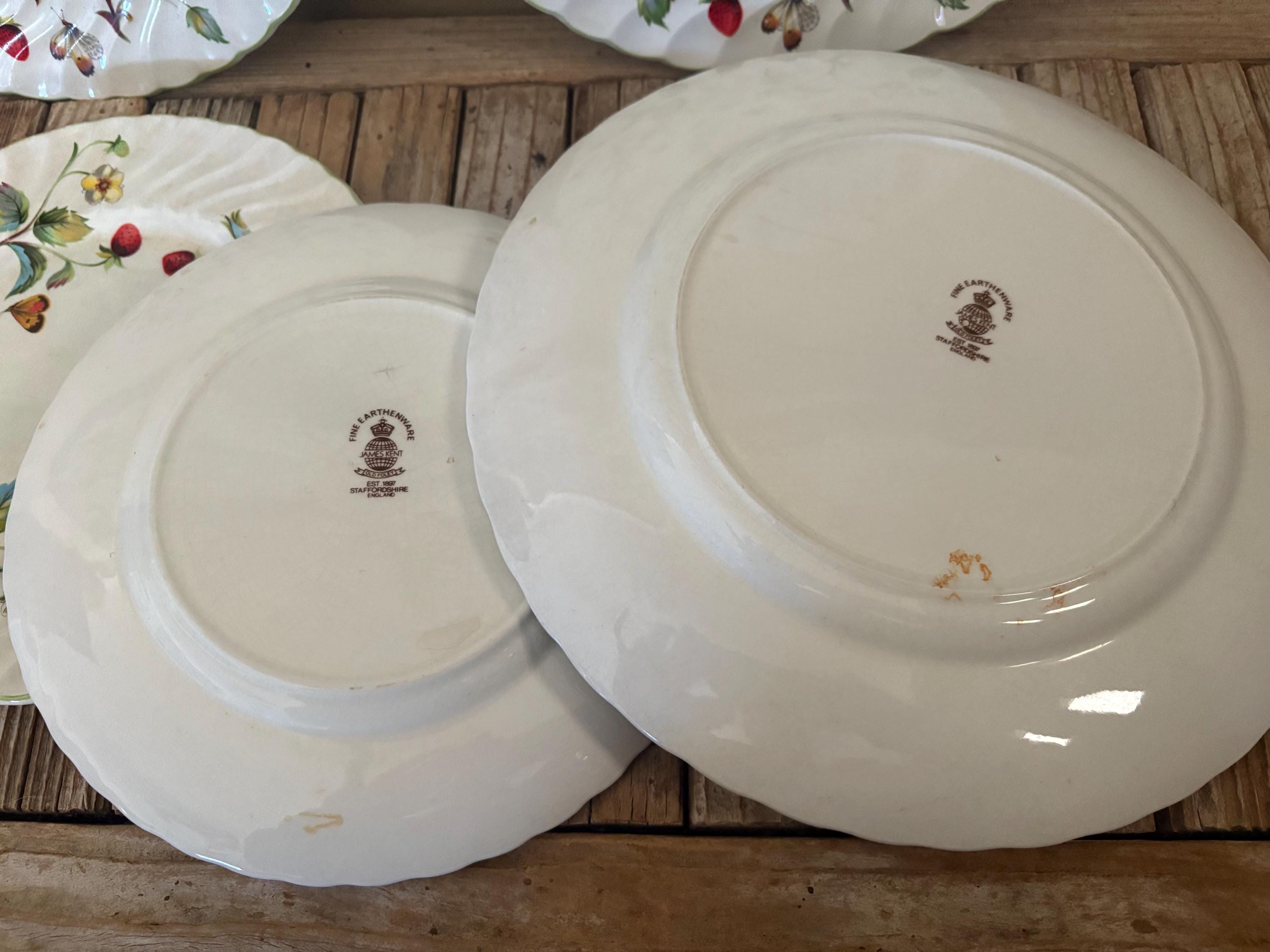 Vintage set of 5 James Kent Old Foley Strawberry plates. In great vintage condition, normal wear due to age and use. The set has some scrapes to the finish, along with crazing to the finish throughout , please see pictures. A great set to add to a collection or for everyday use.