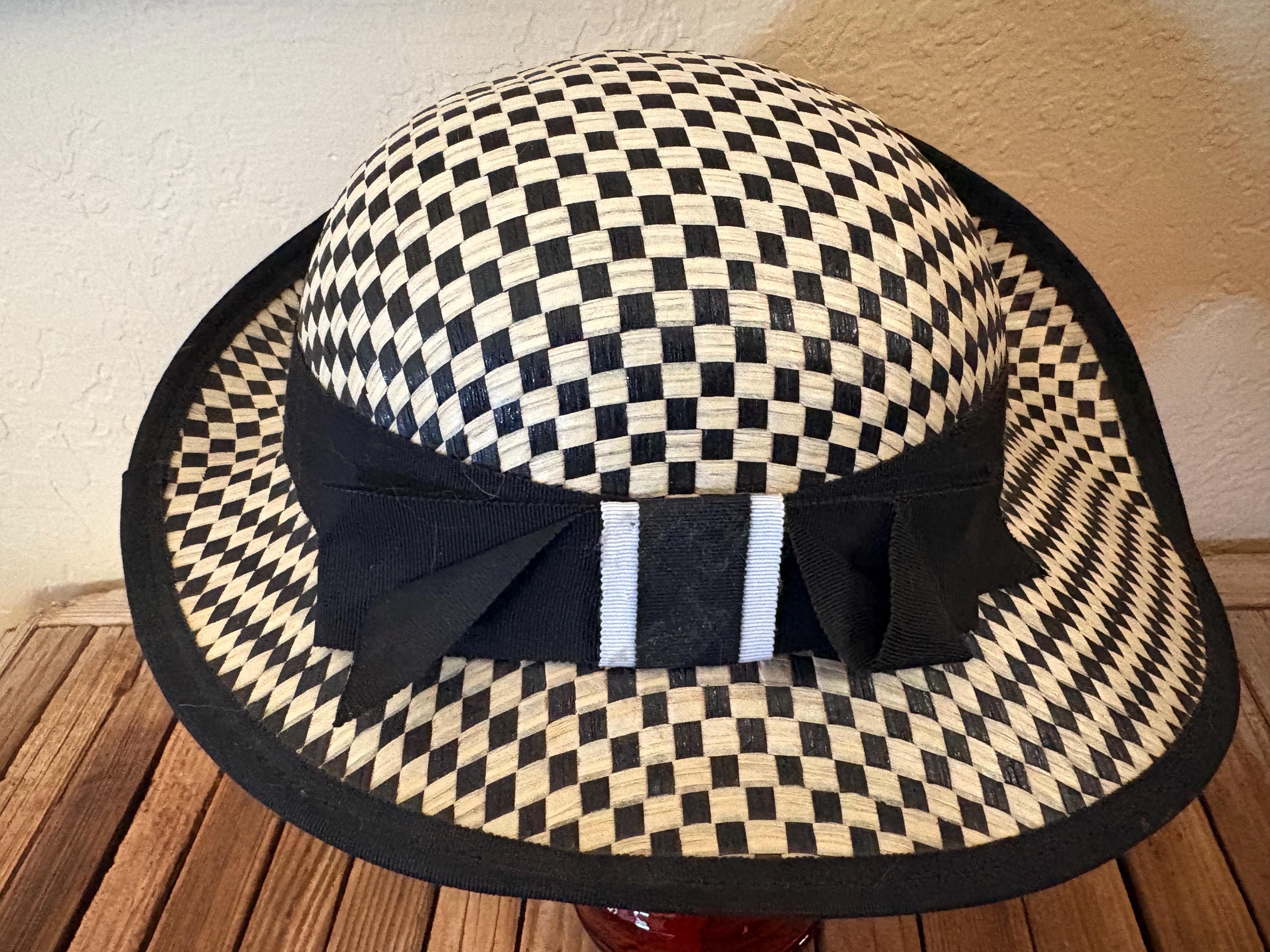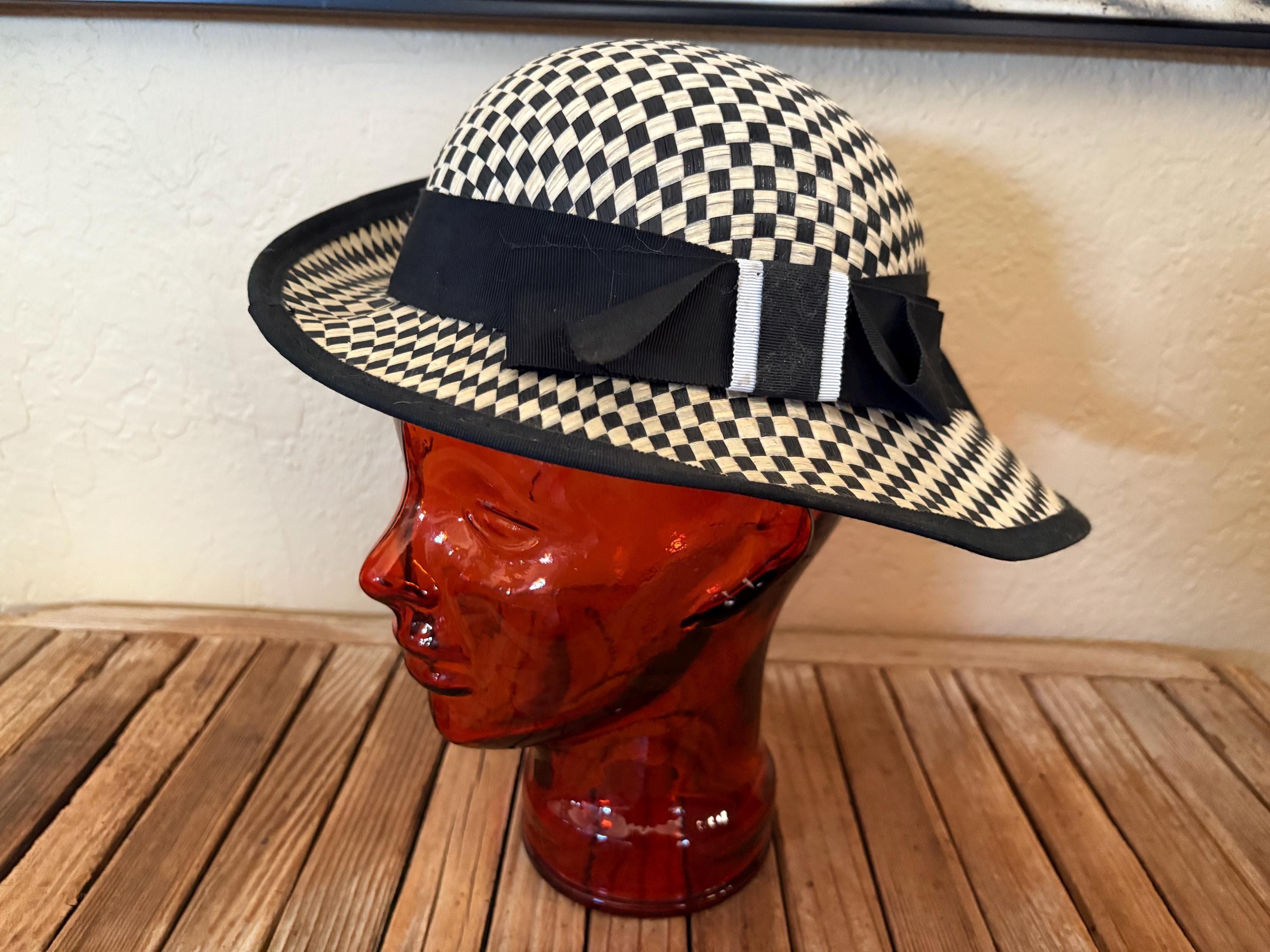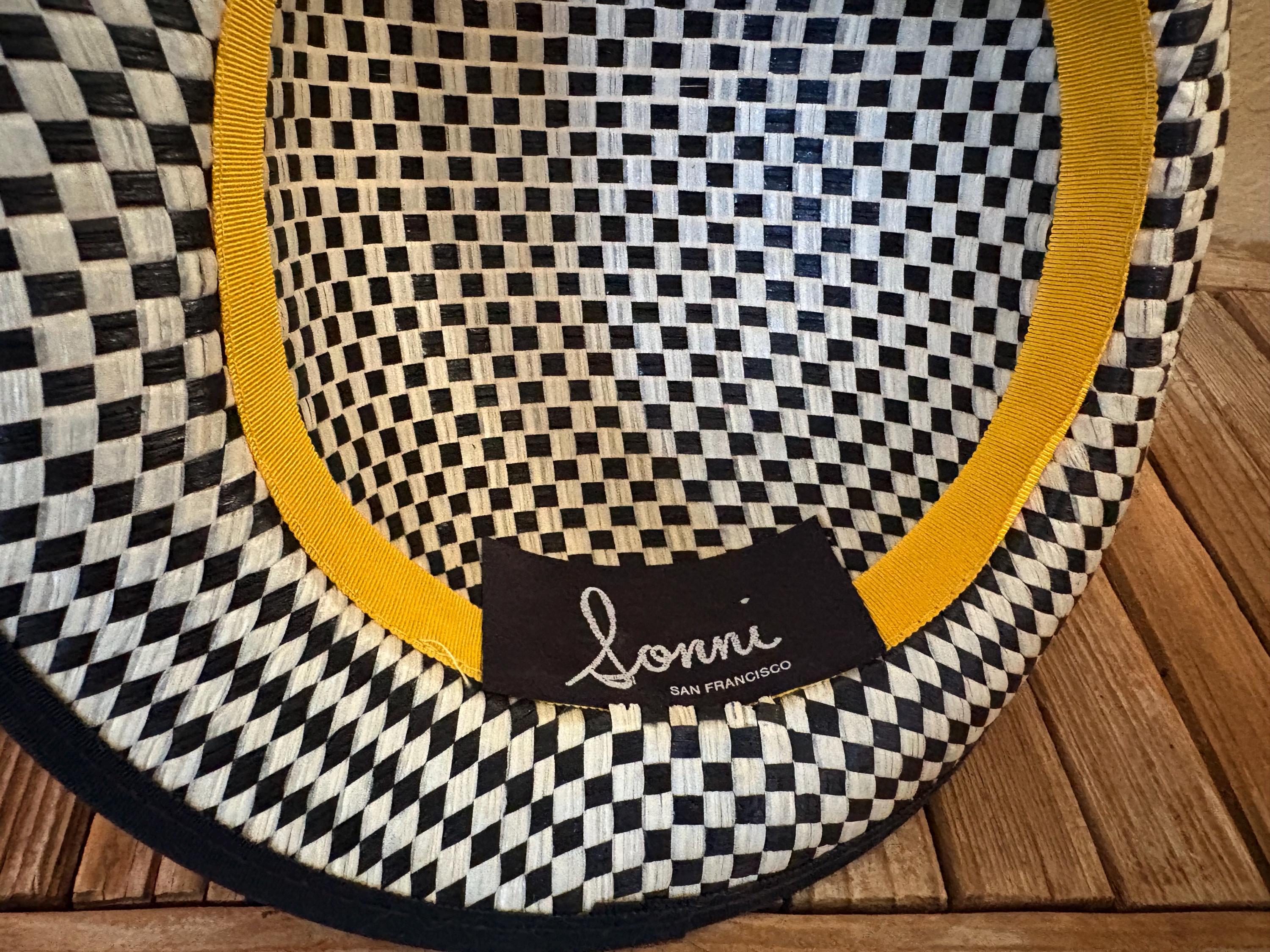 Vintage black and white Sonni San Francisco woven straw hat. In great, used condition, normal wear due to age and use. The hat has a few scrapes, please see pictures. A cool, unique hat to add to your collection or for personal use.