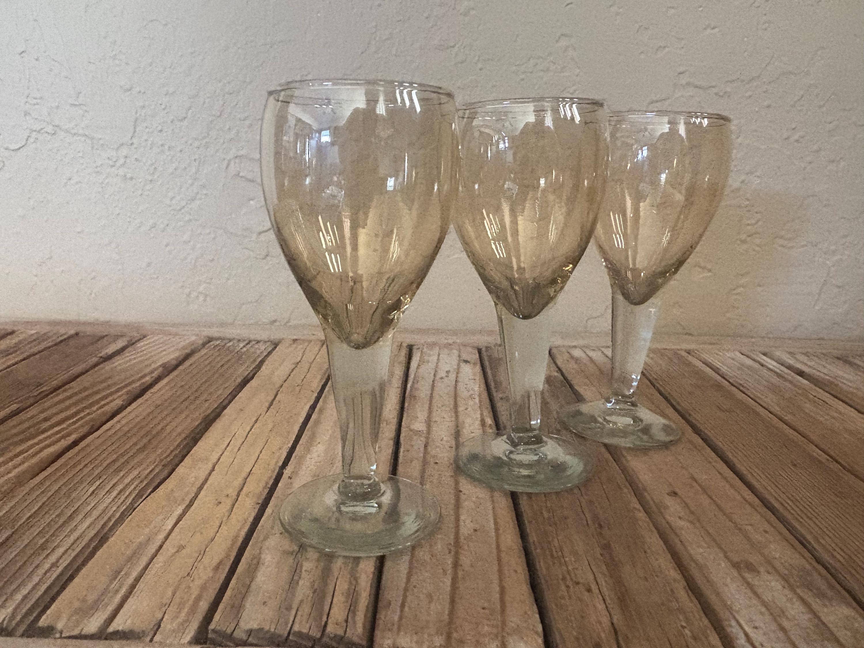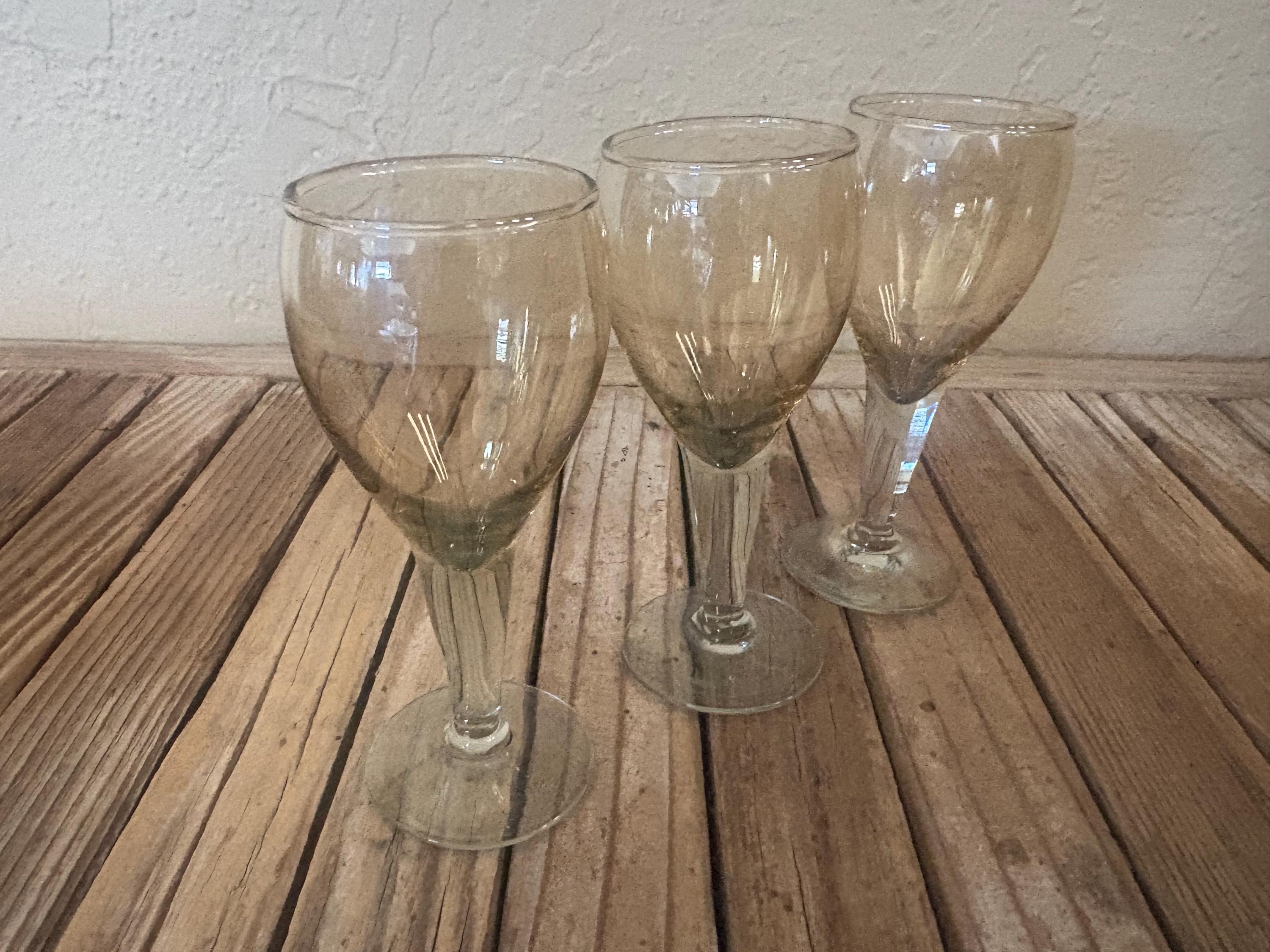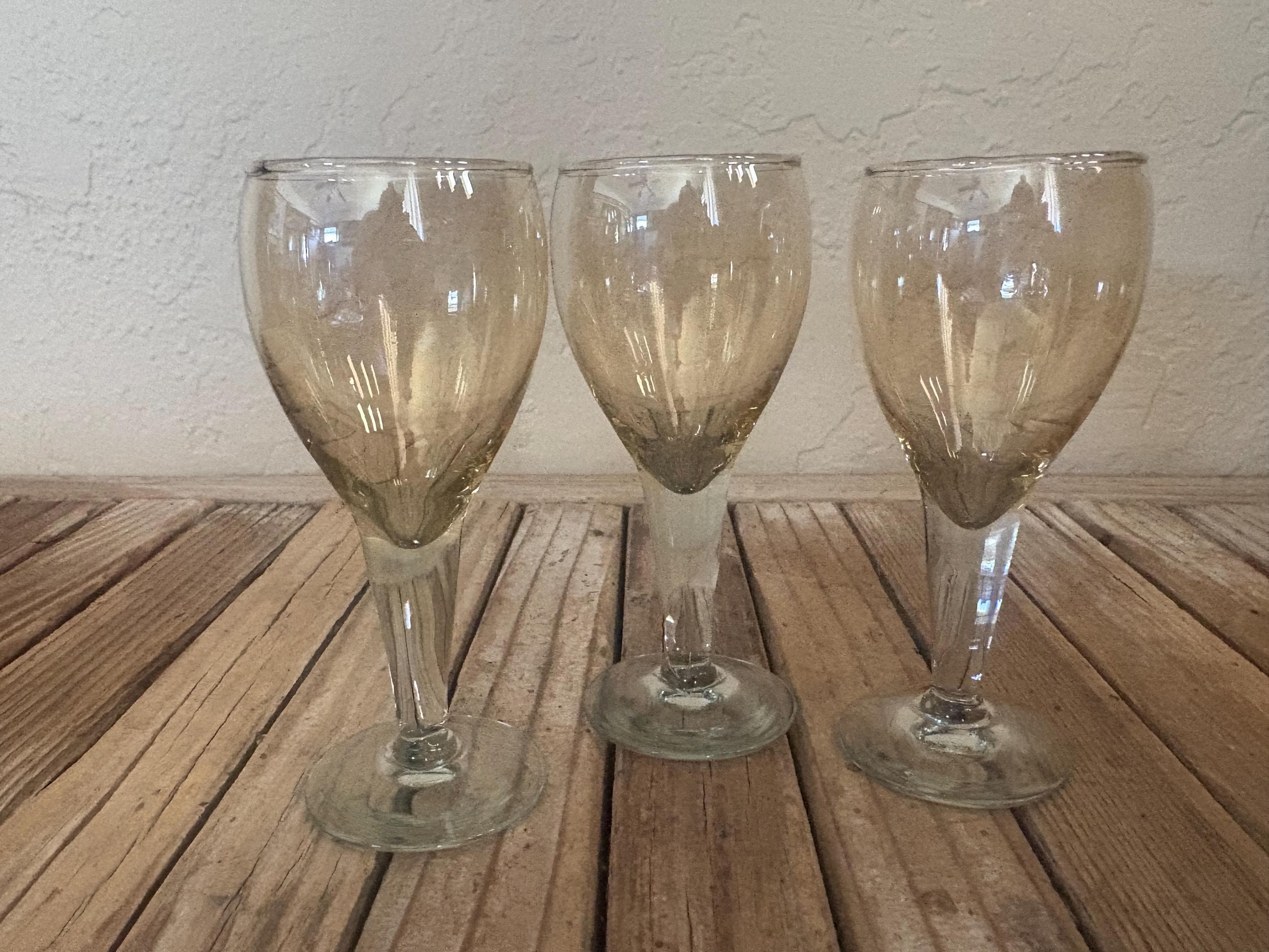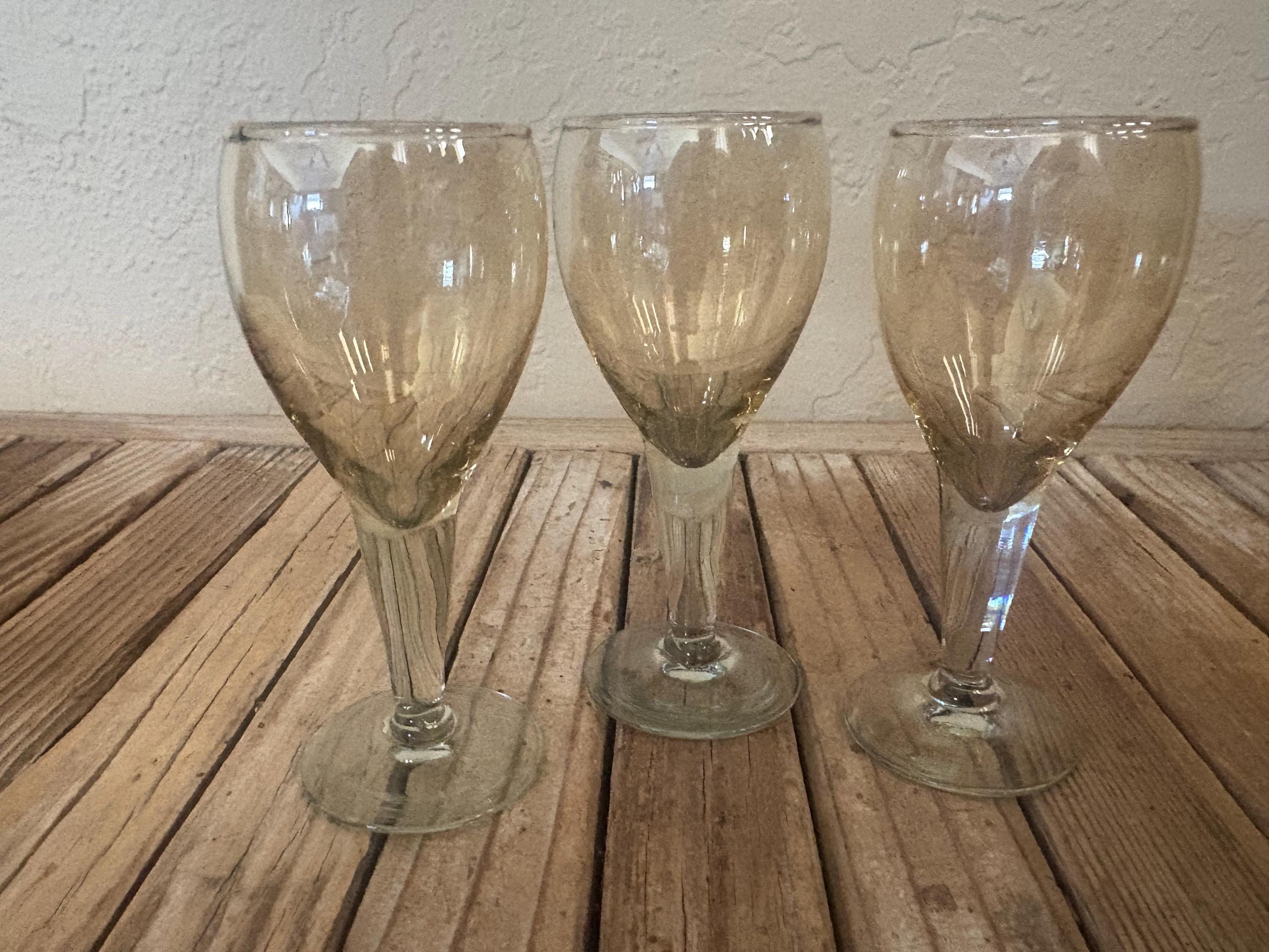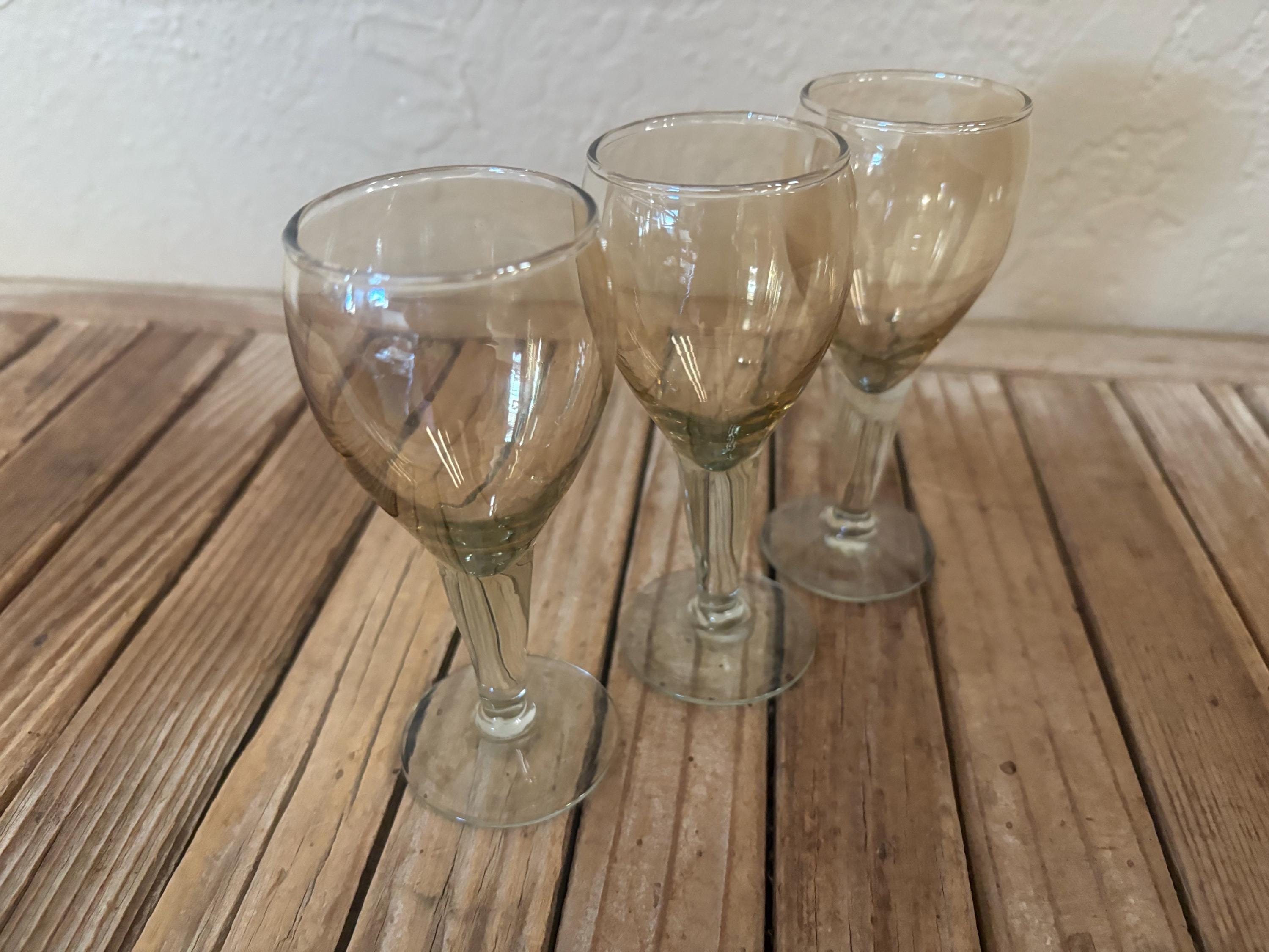 Set of 3 clear amber cognac glasses. In great vintage condition, normal wear due to age and use. The glasses have misc. scrapes and markings to the finish, please see pictures. A great addition to any bar or for a upcoming party.