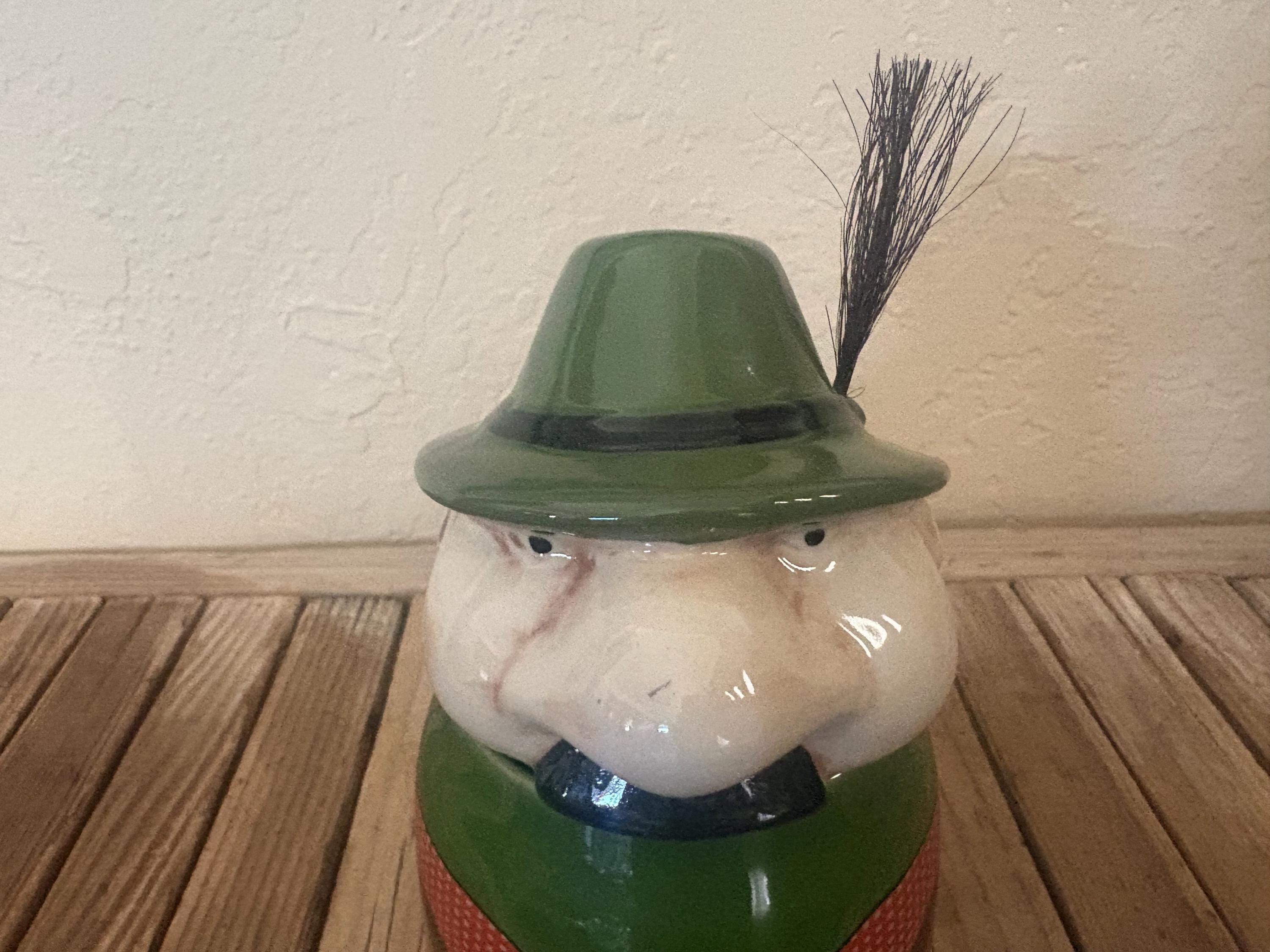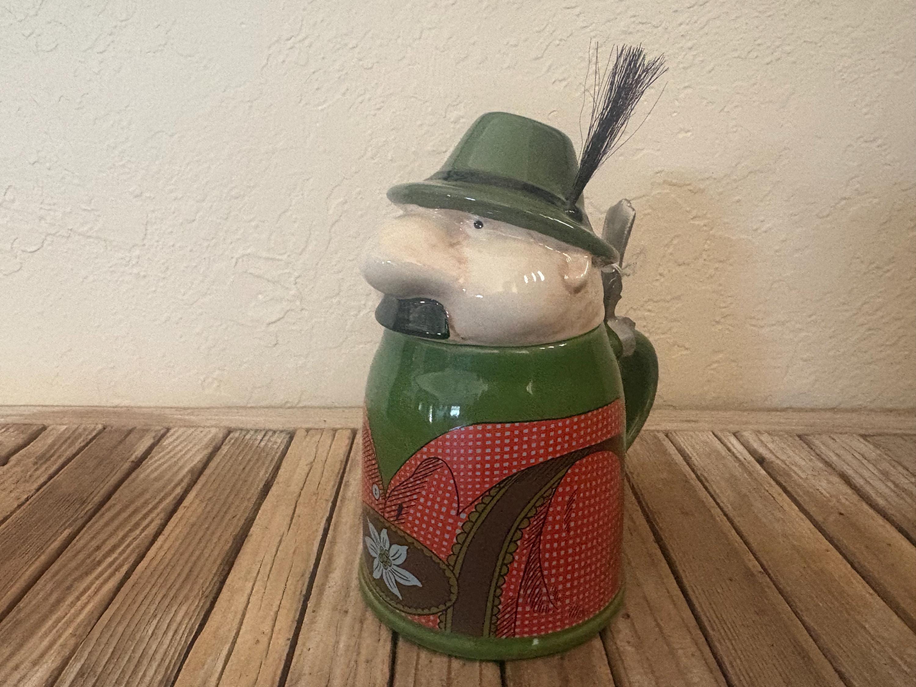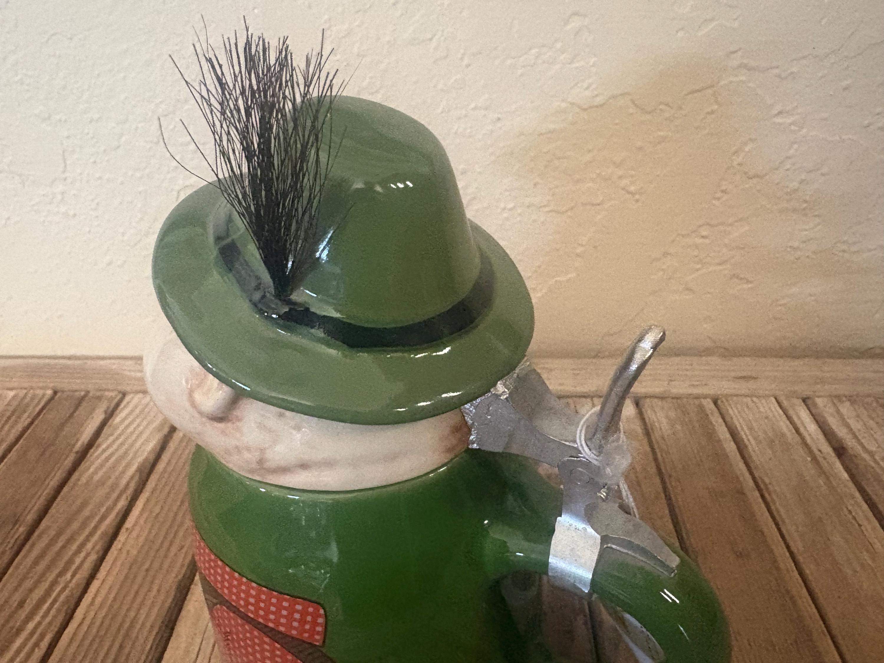 Vintage Gerz figural man German stein. In great condition, normal wear due to age and use. The stein has misc. markings but near perfect, please see pictures. It has no rust, chips or cracks. I believe the lid is pewter, however it is not marked. A beautiful piece to add to a bar or to give as a gift.
