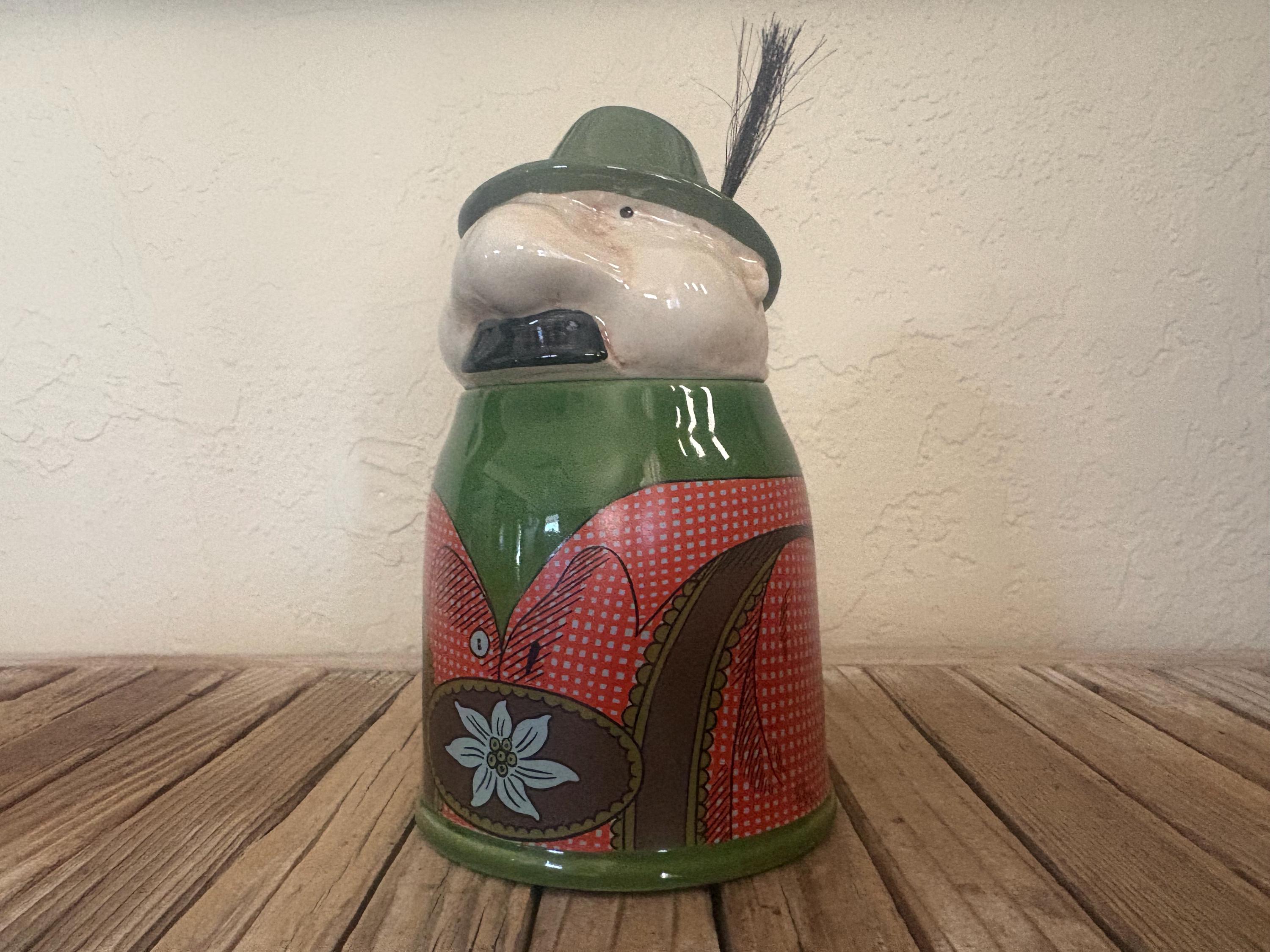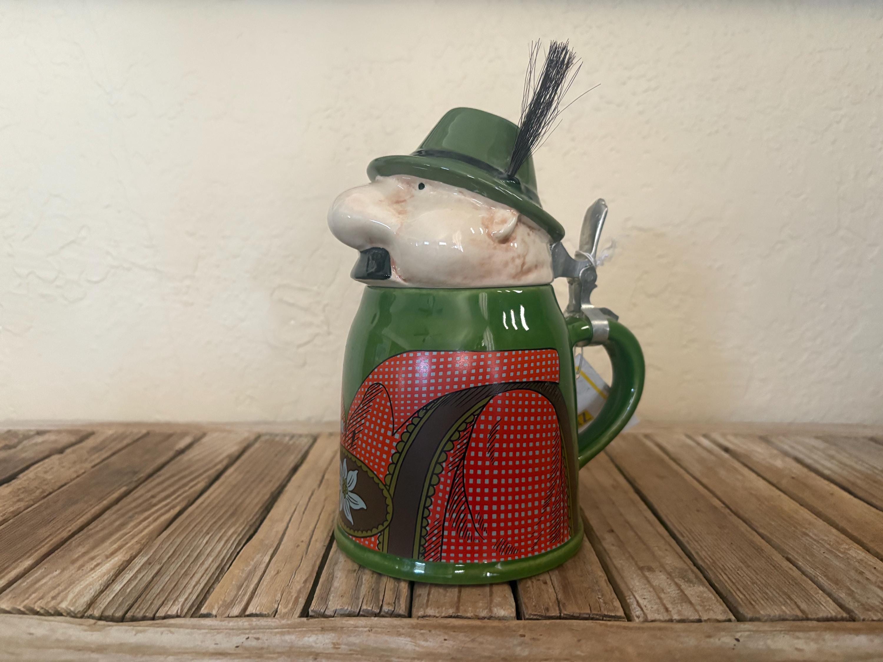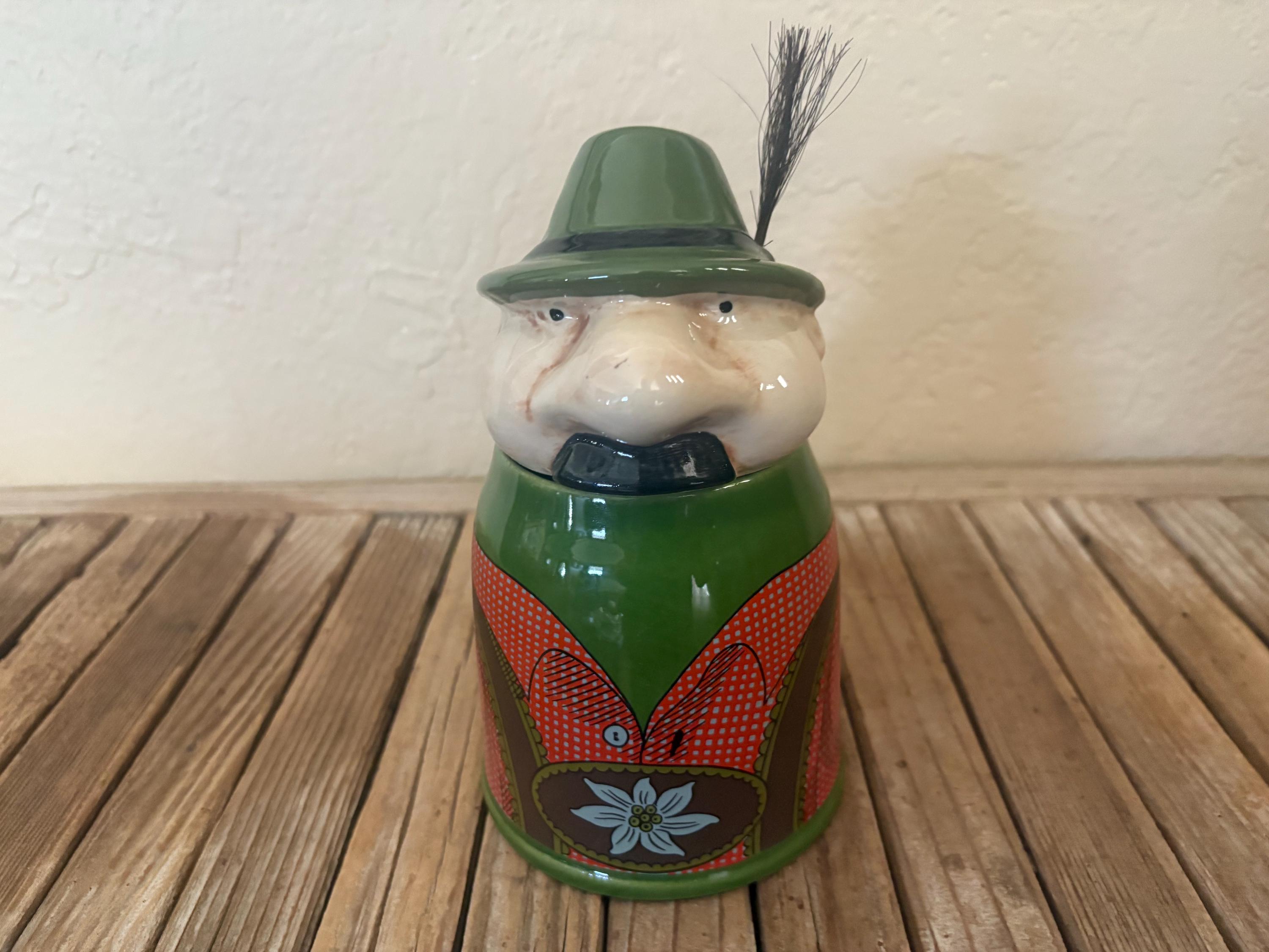Vintage Gerz figural man German stein. In great condition, normal wear due to age and use. The stein has misc. markings but near perfect, please see pictures. It has no rust, chips or cracks. I believe the lid is pewter, however it is not marked. A beautiful piece to add to a bar or to give as a gift.