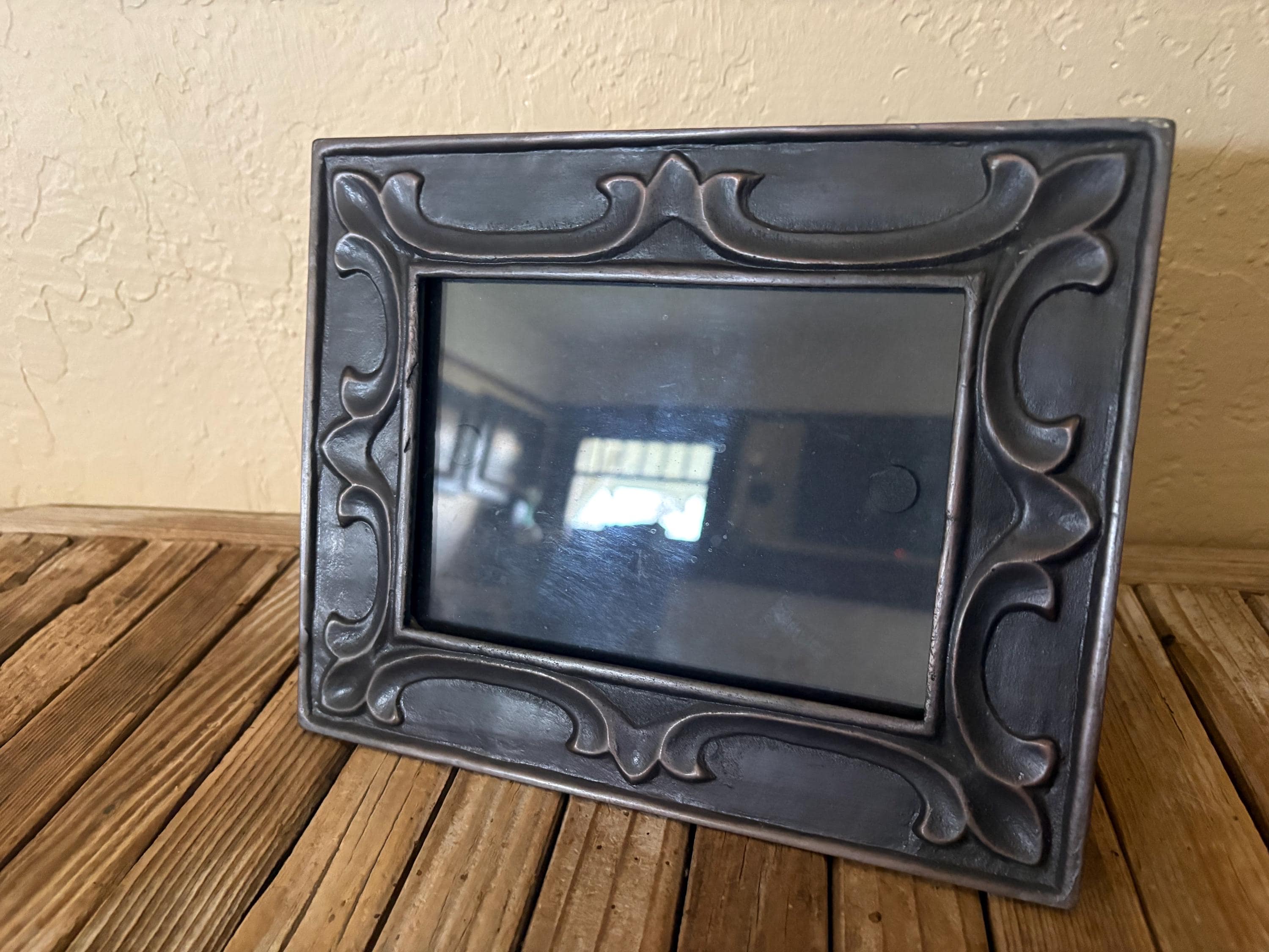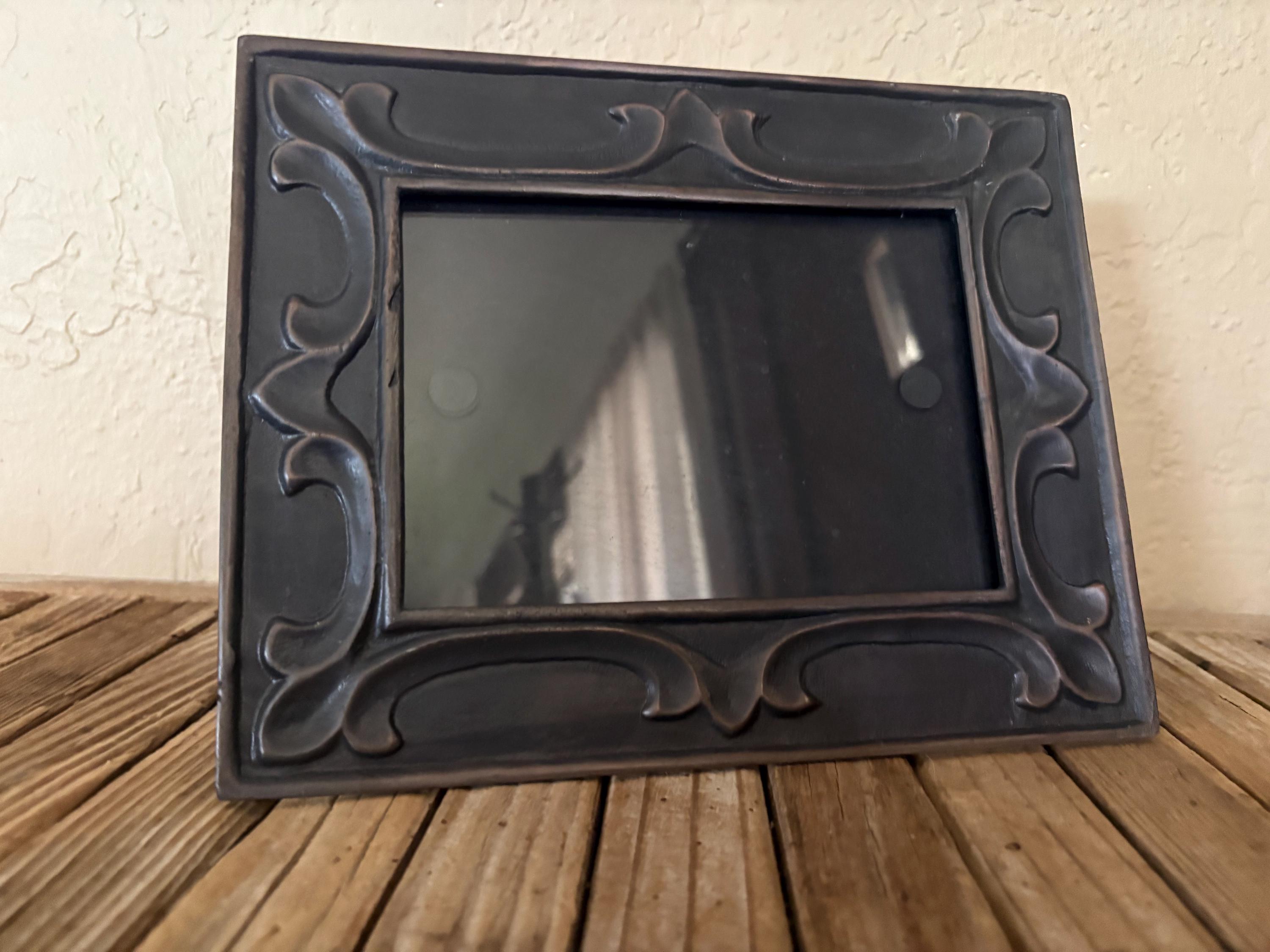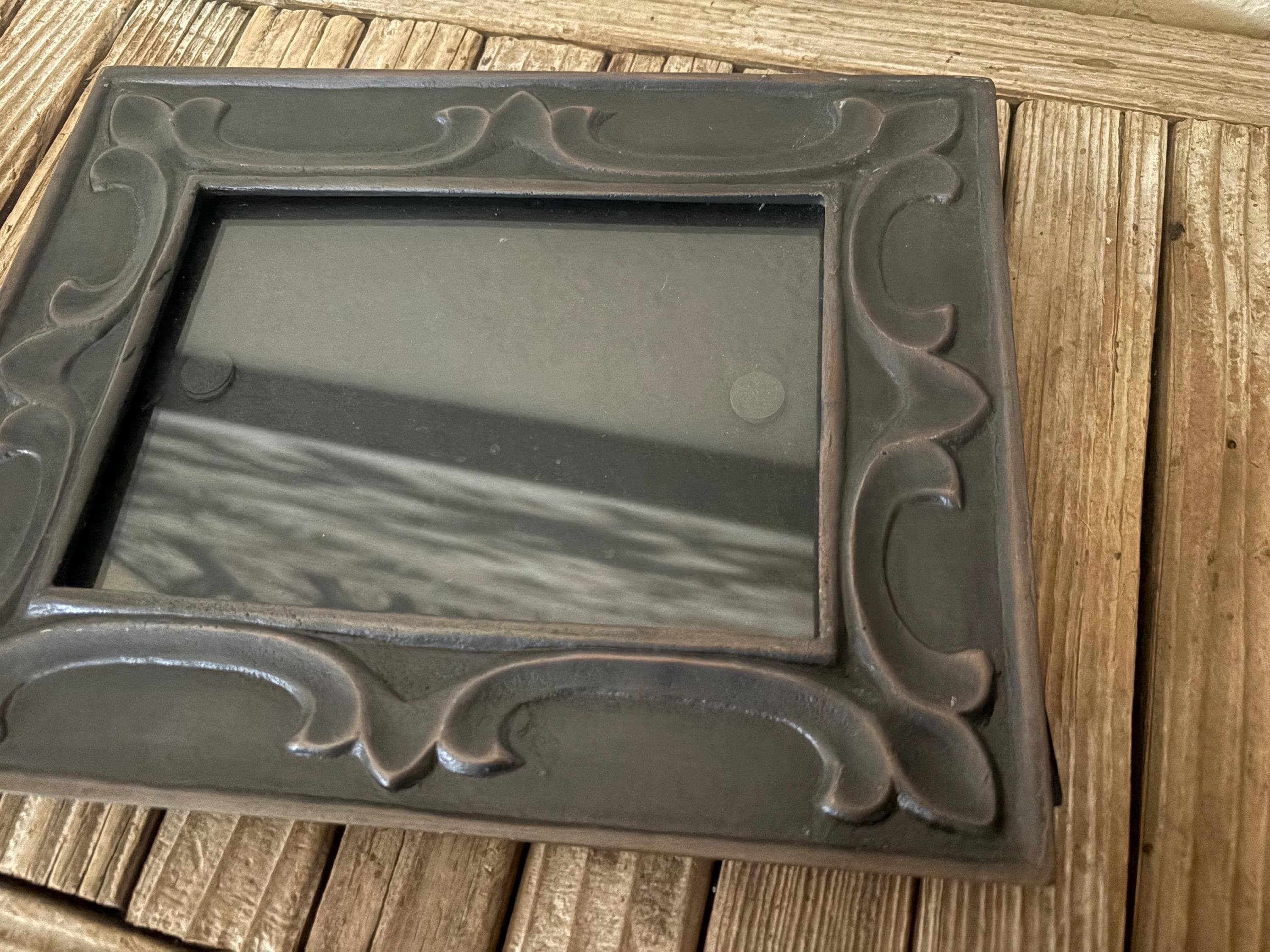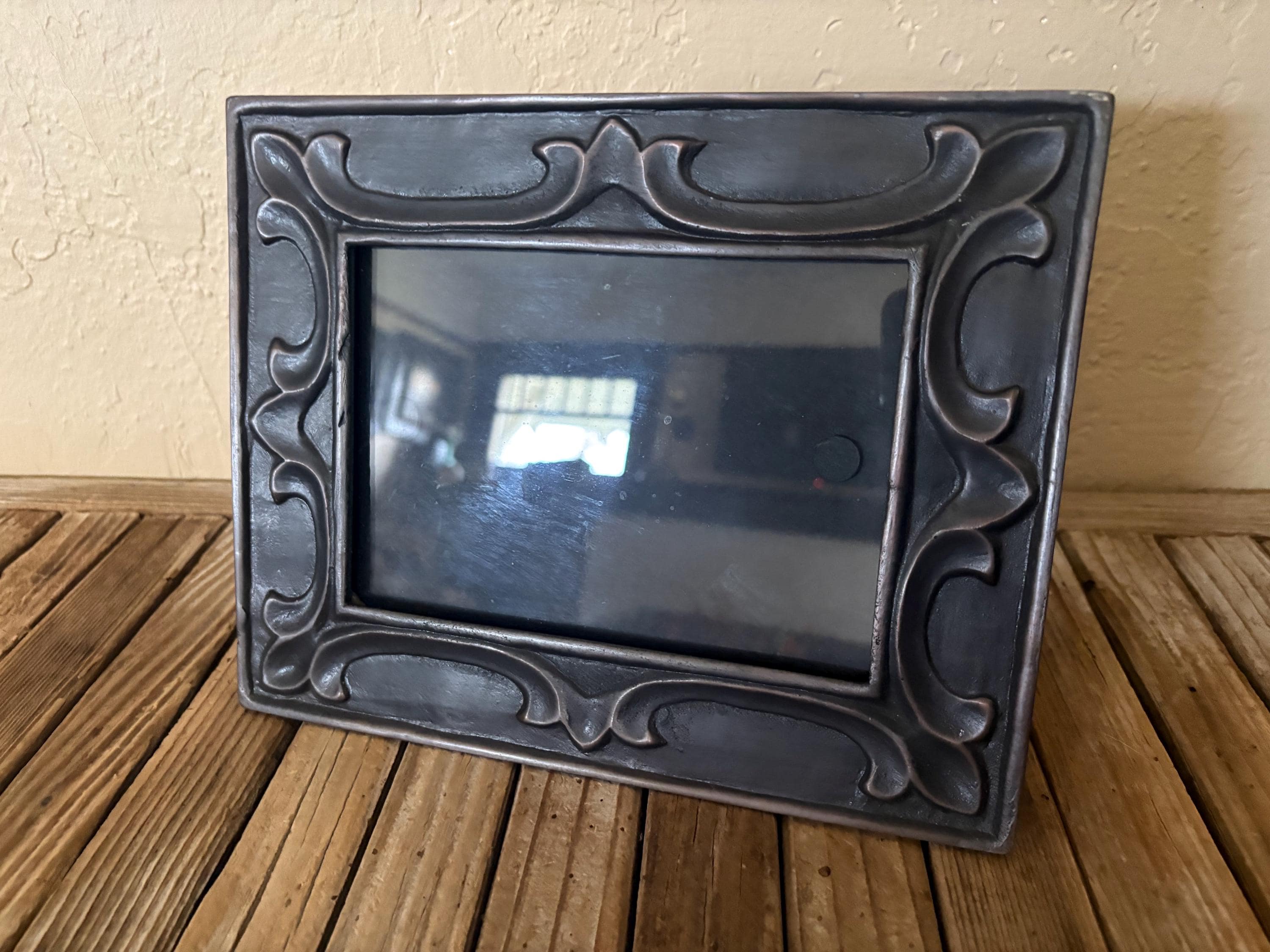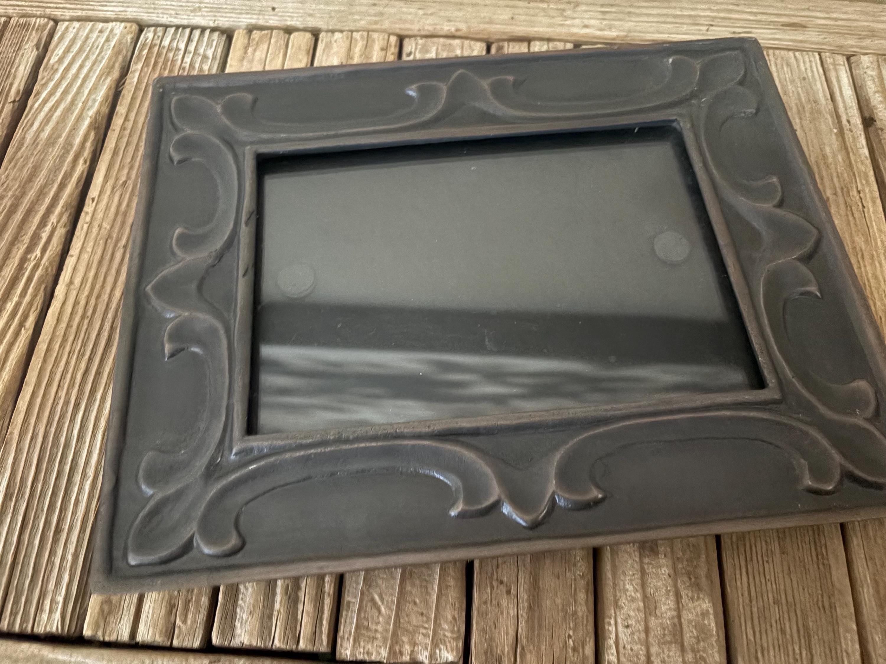 Vintage Bronze Metal Picture Frame. In good condition, normal wear due to age and use. The frames shows a few scrapes and markings, please see pictures. I believe this is some kind of cast metal with a bronze finish. A beautiful, unique frame to give as a gift or for your special memories.