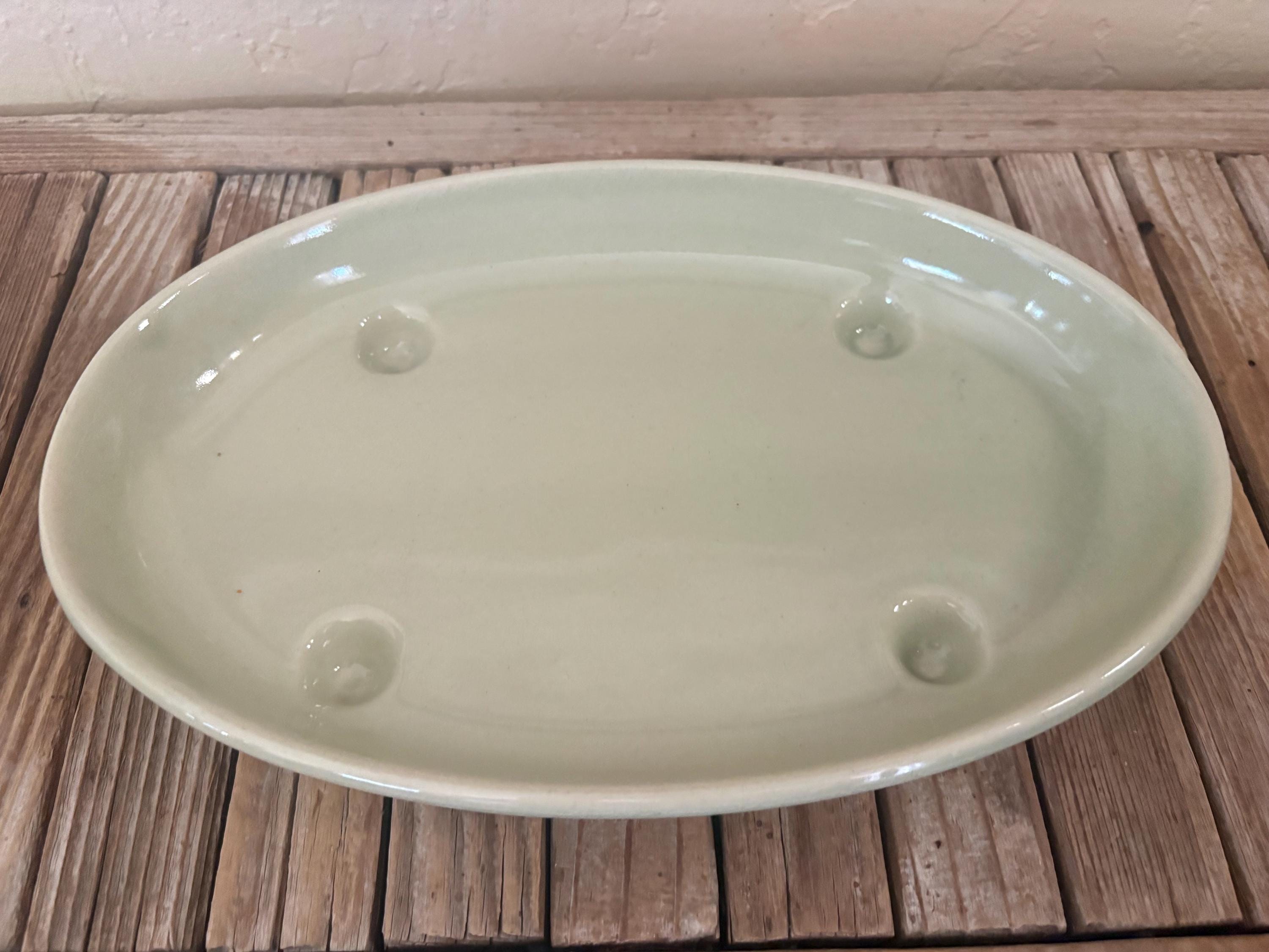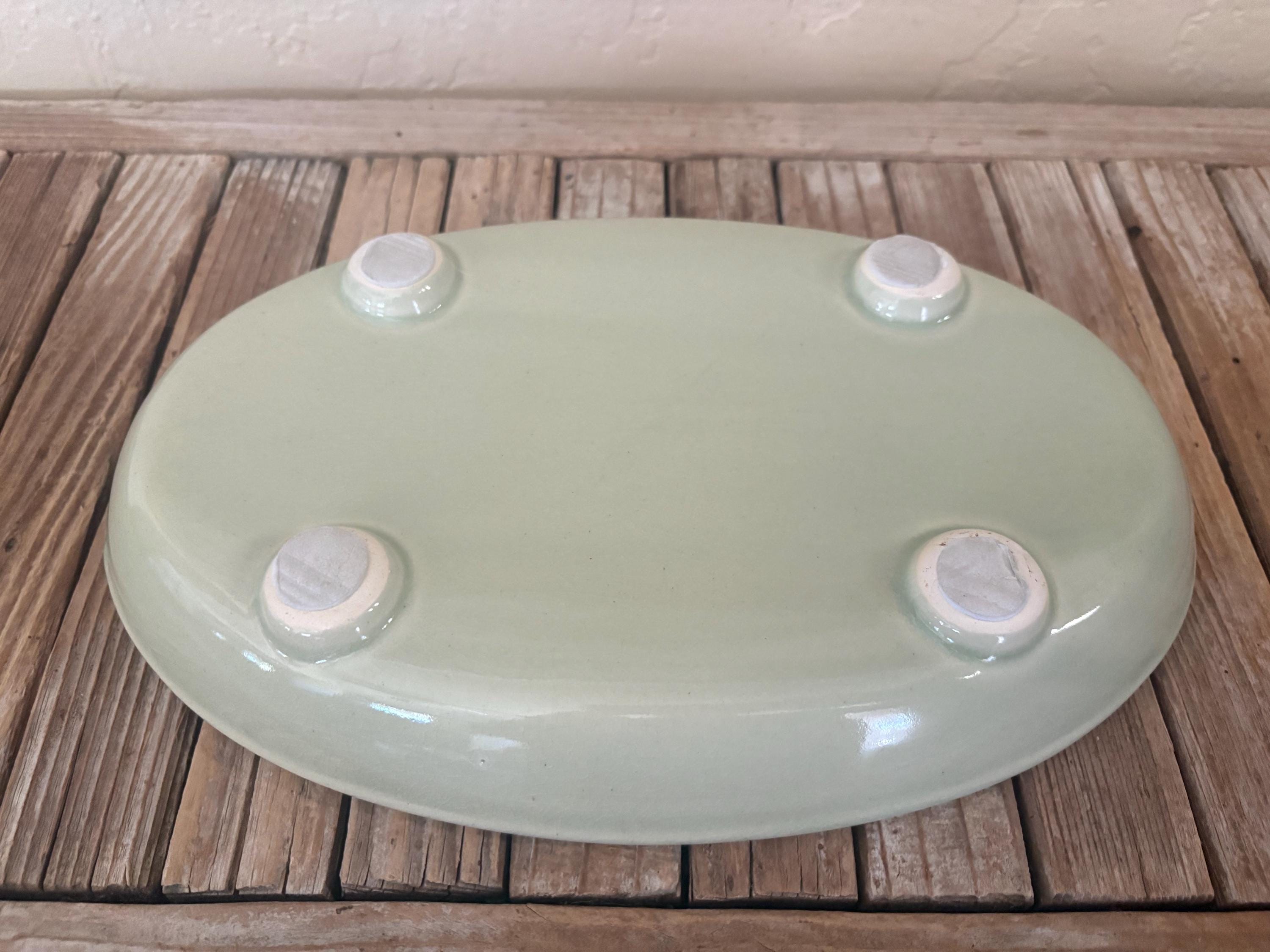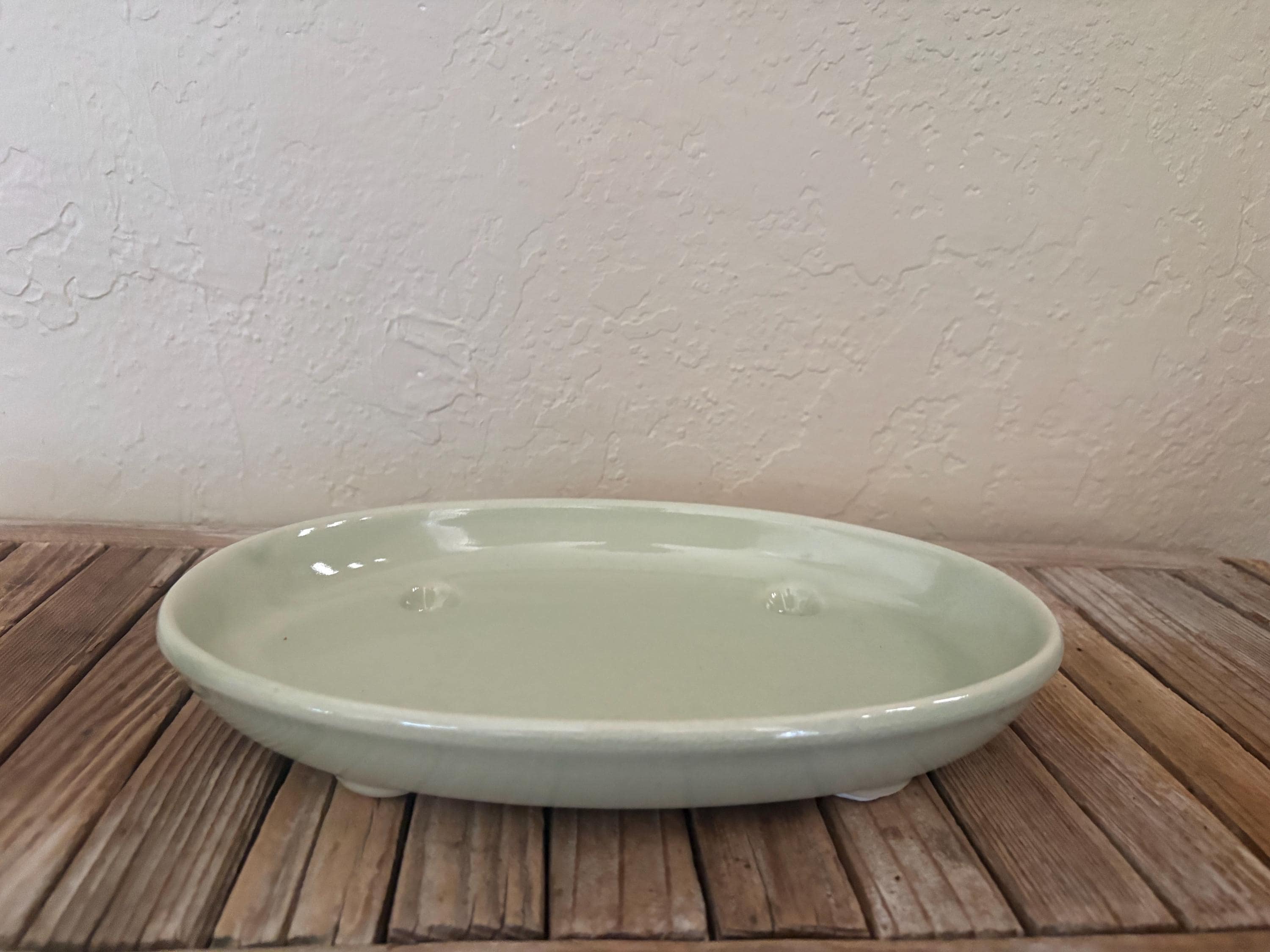 Mid Century pale green bonsai/orchid pot bowl. In great condition, normal wear due to age and use. The pot has some misc. markings and crazing to the glaze throughout with no chips or cracks, please see pictures. A beautiful piece to add to your home or collection.