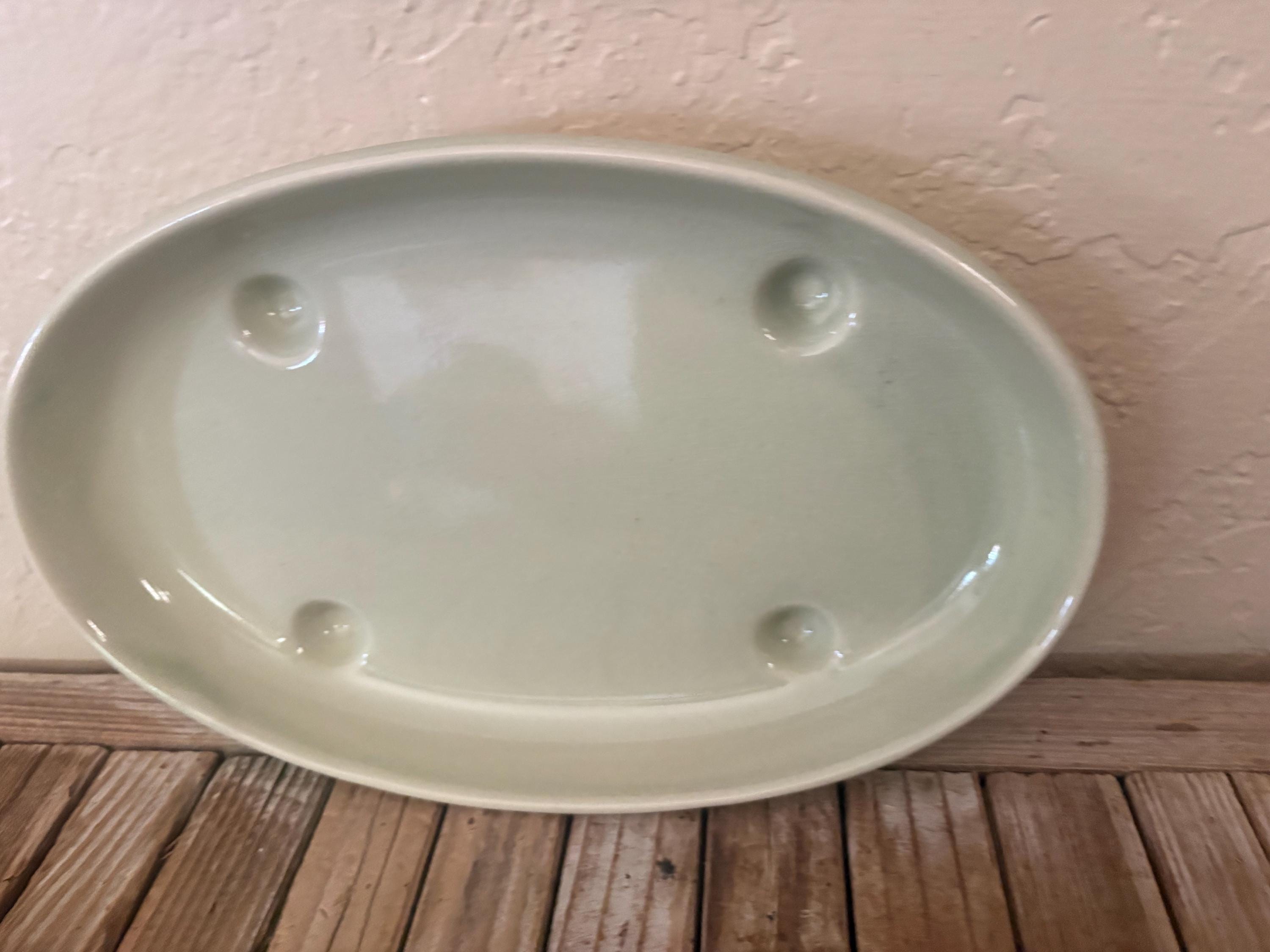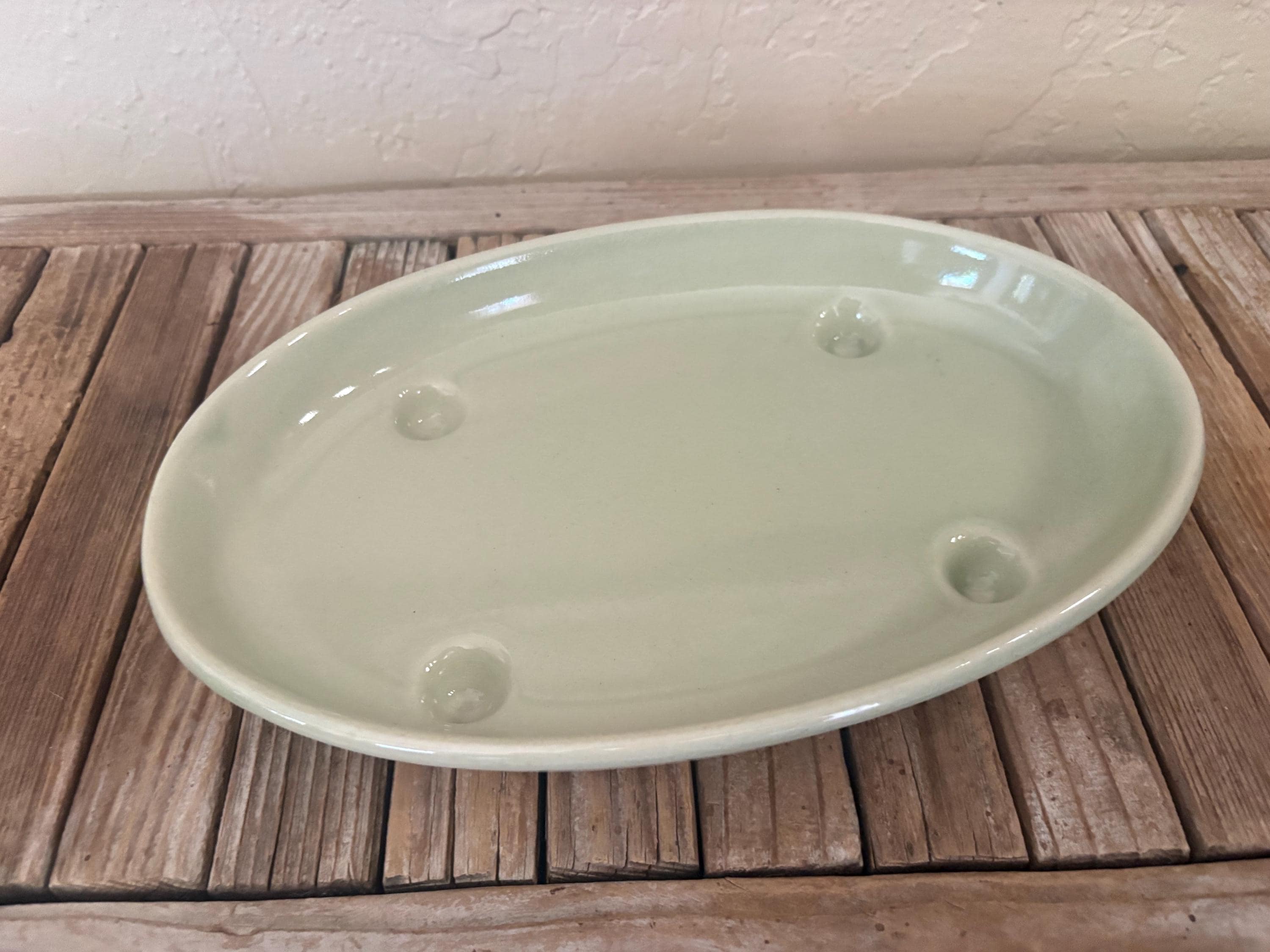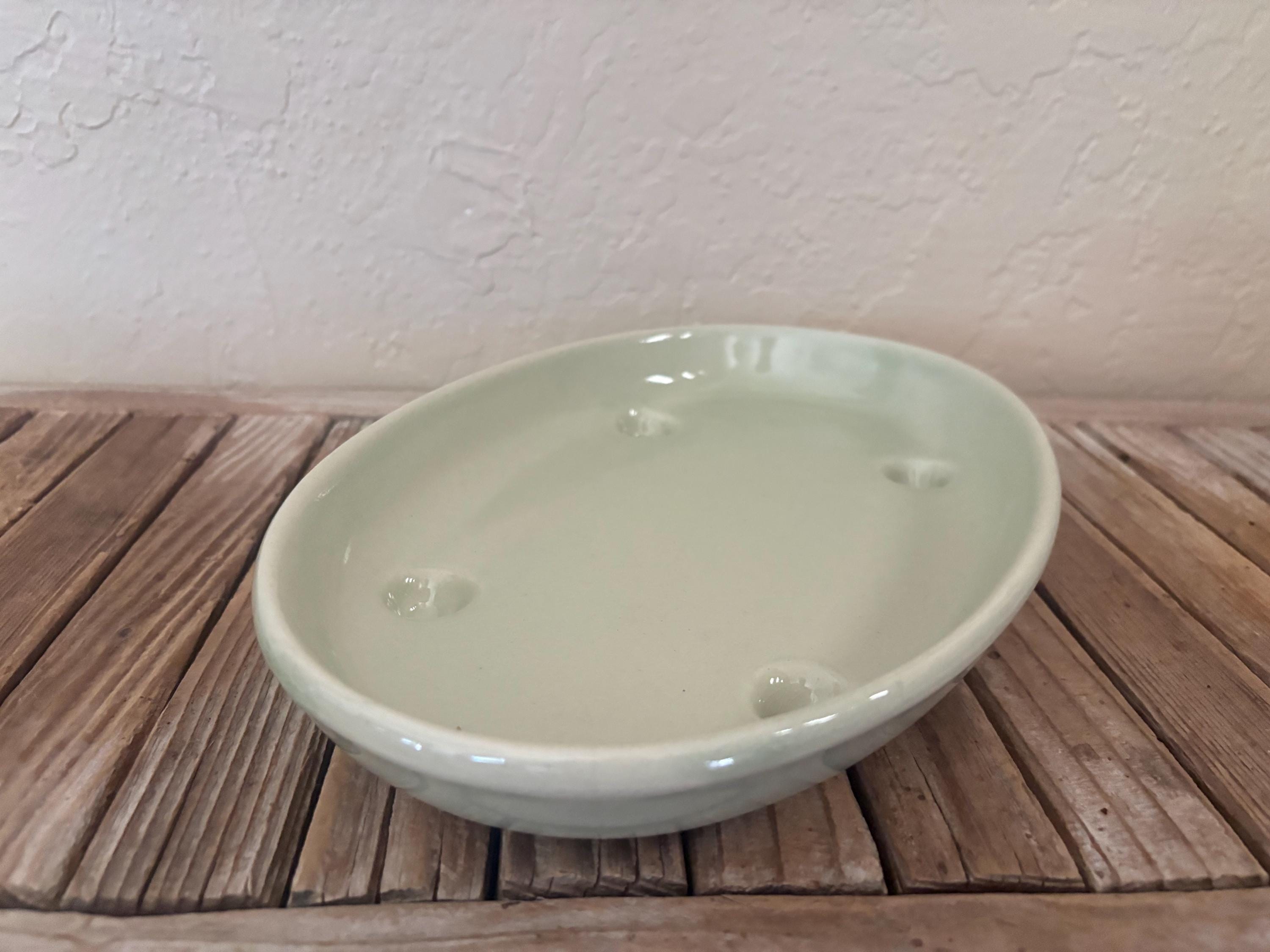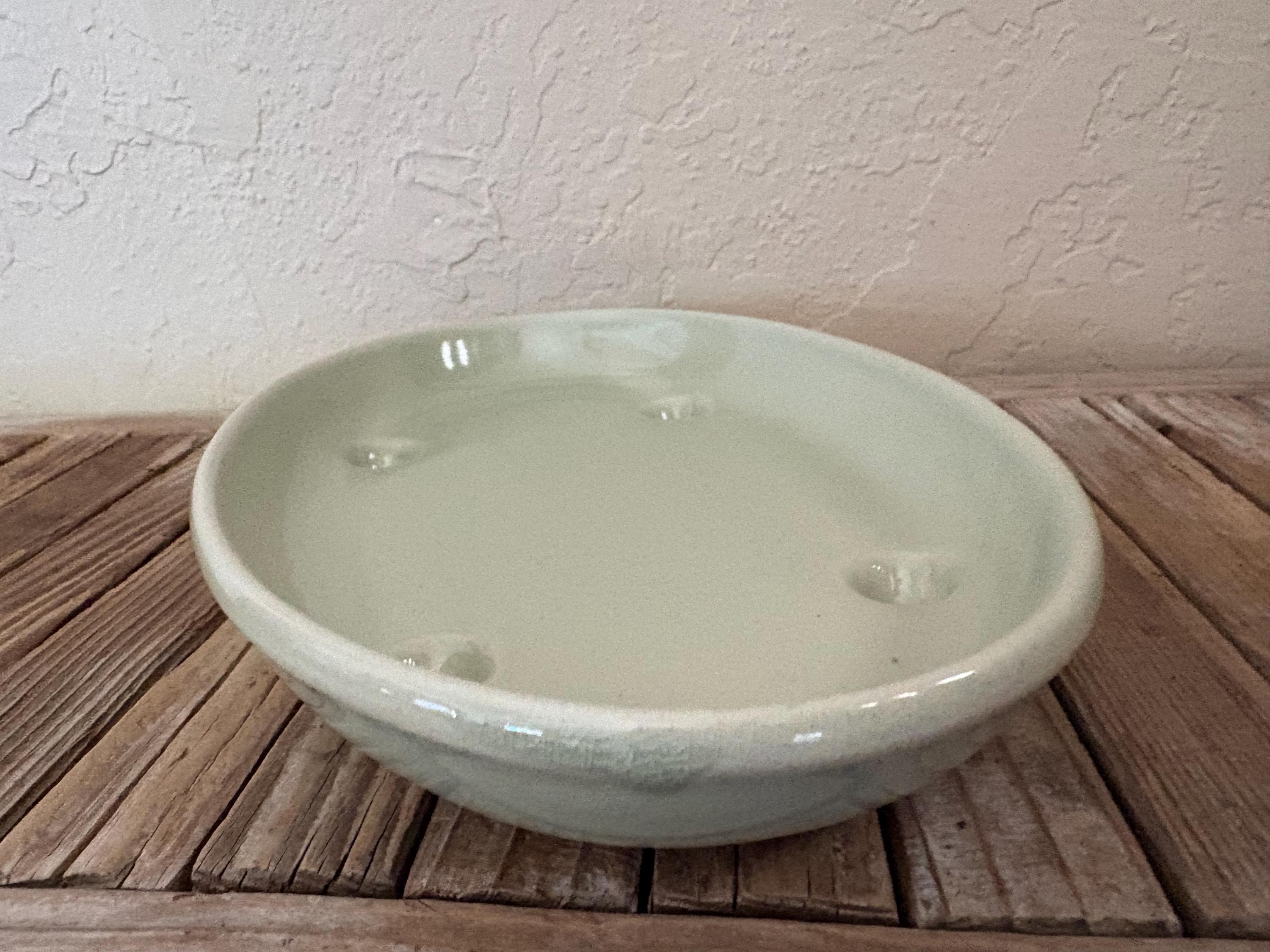 Mid Century pale green bonsai/orchid pot bowl. In great condition, normal wear due to age and use. The pot has some misc. markings and crazing to the glaze throughout with no chips or cracks, please see pictures. A beautiful piece to add to your home or collection.