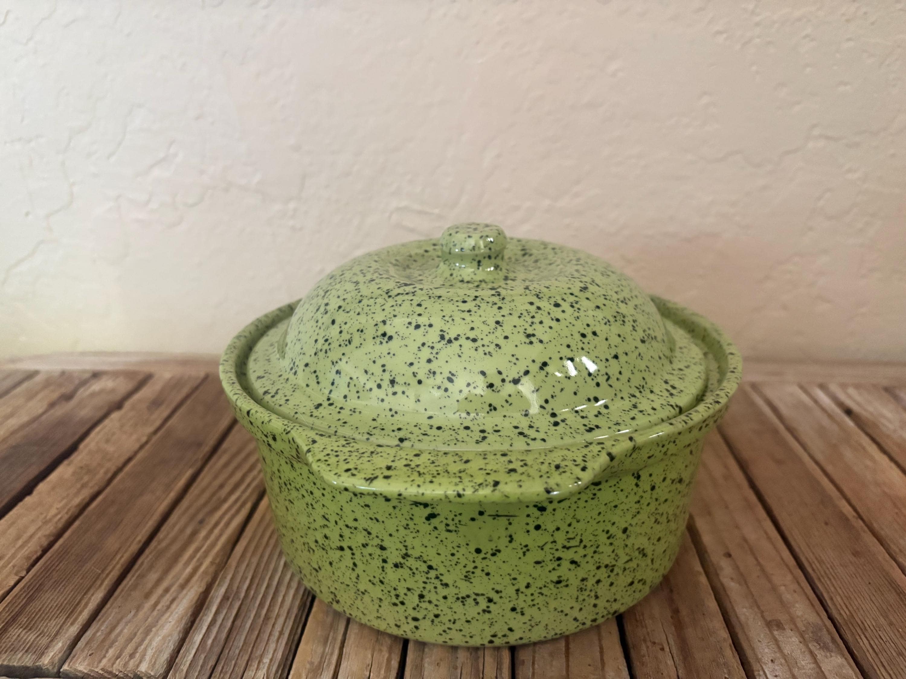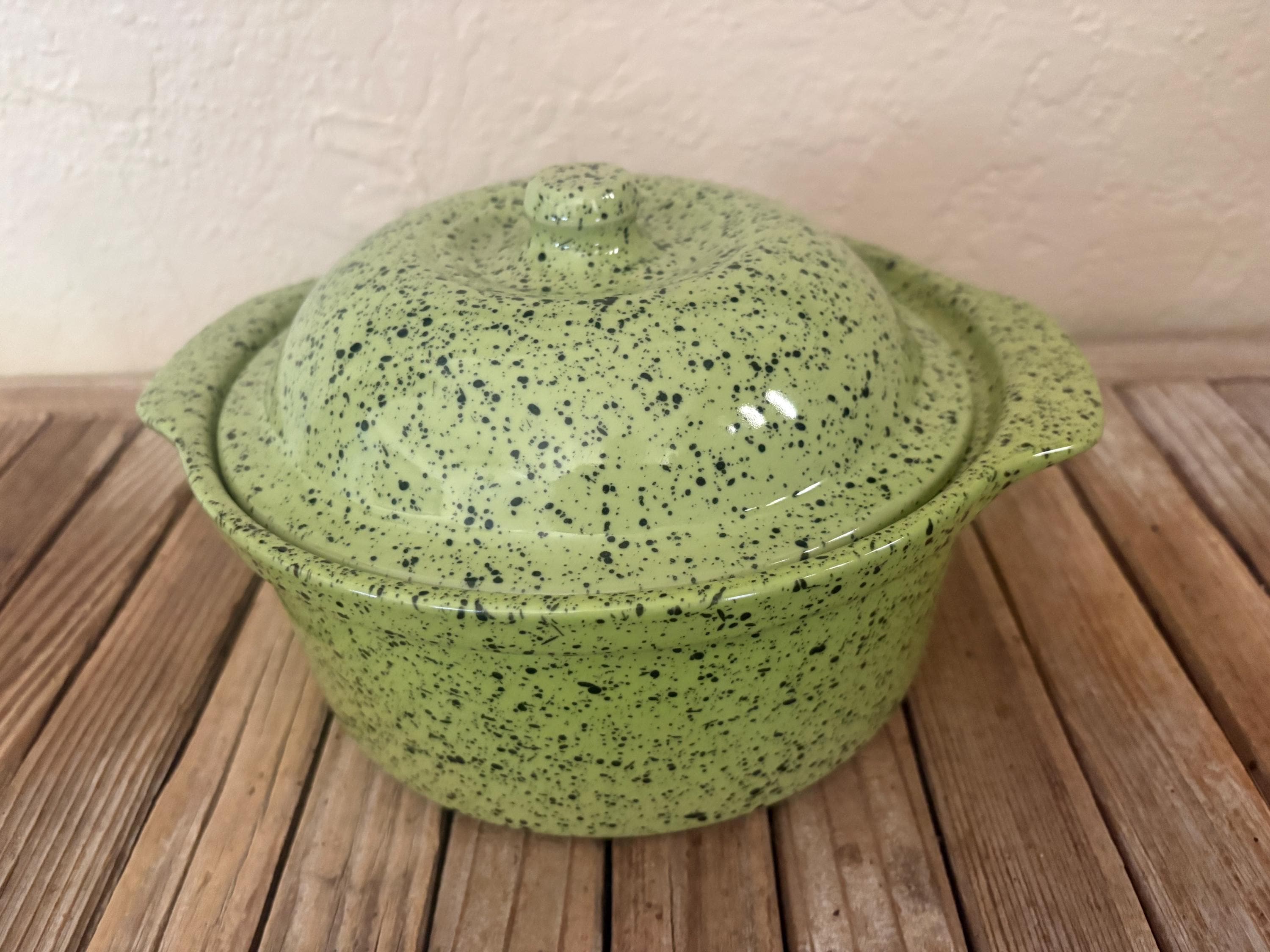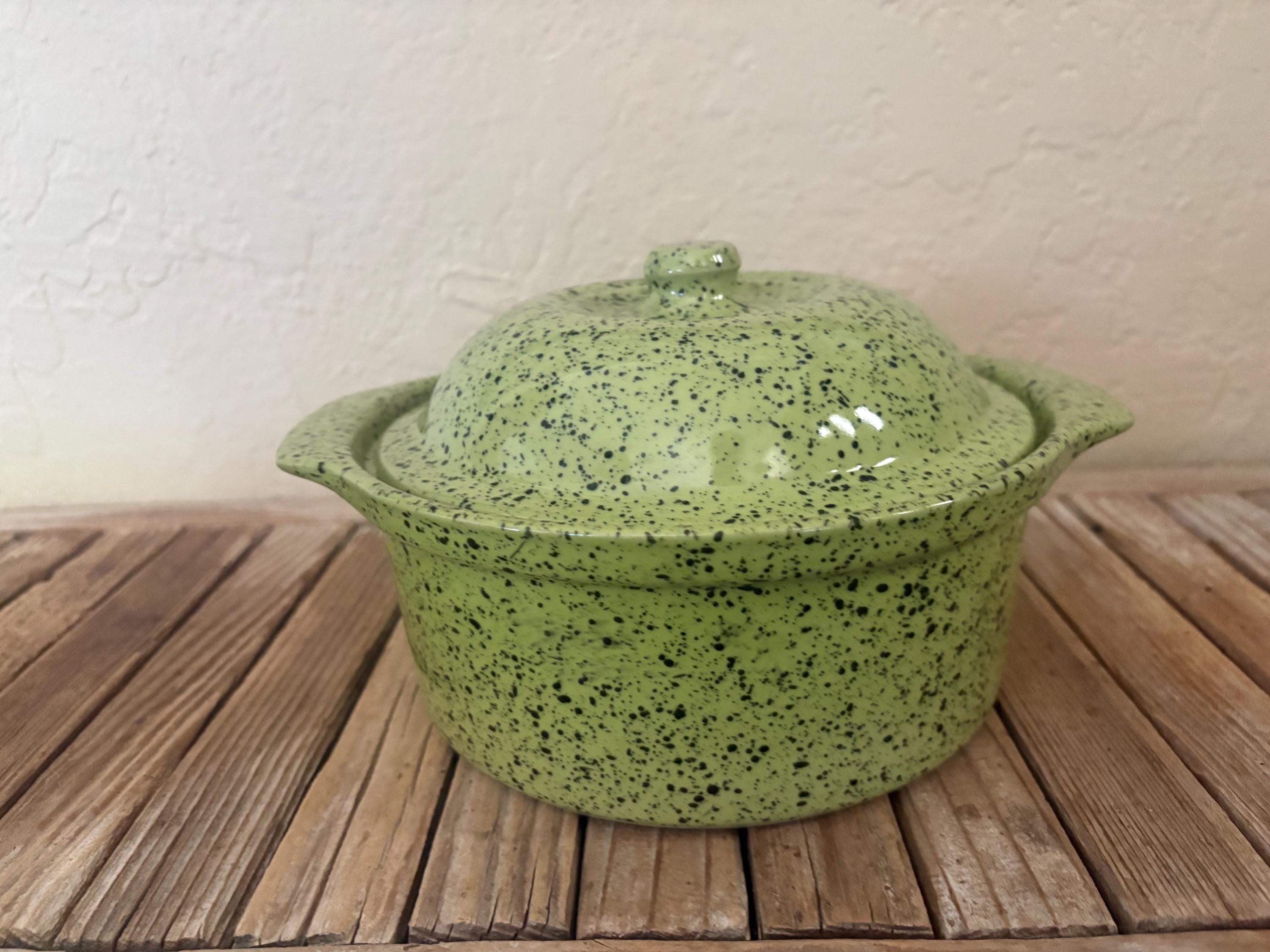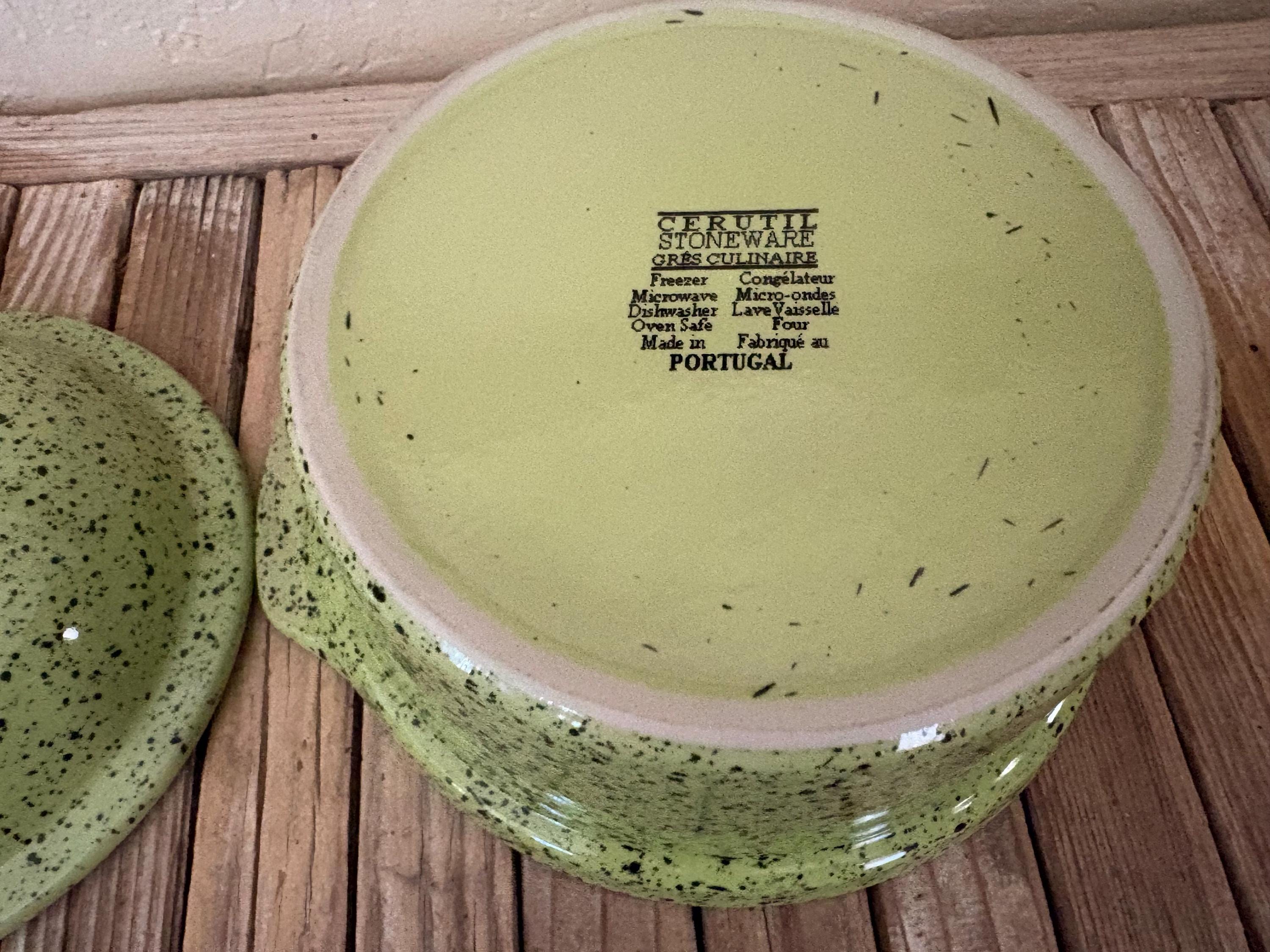 Vintage green Portugal Cerutil Stonewear Casserole Dish. In great vintage condition, normal wear due to age and use. The piece has some surface scrapes, almost near perfect. The piece has no chips or cracks, and completely clean on the inside, please see pictures. A unique piece to add to your home or to give as a gift.