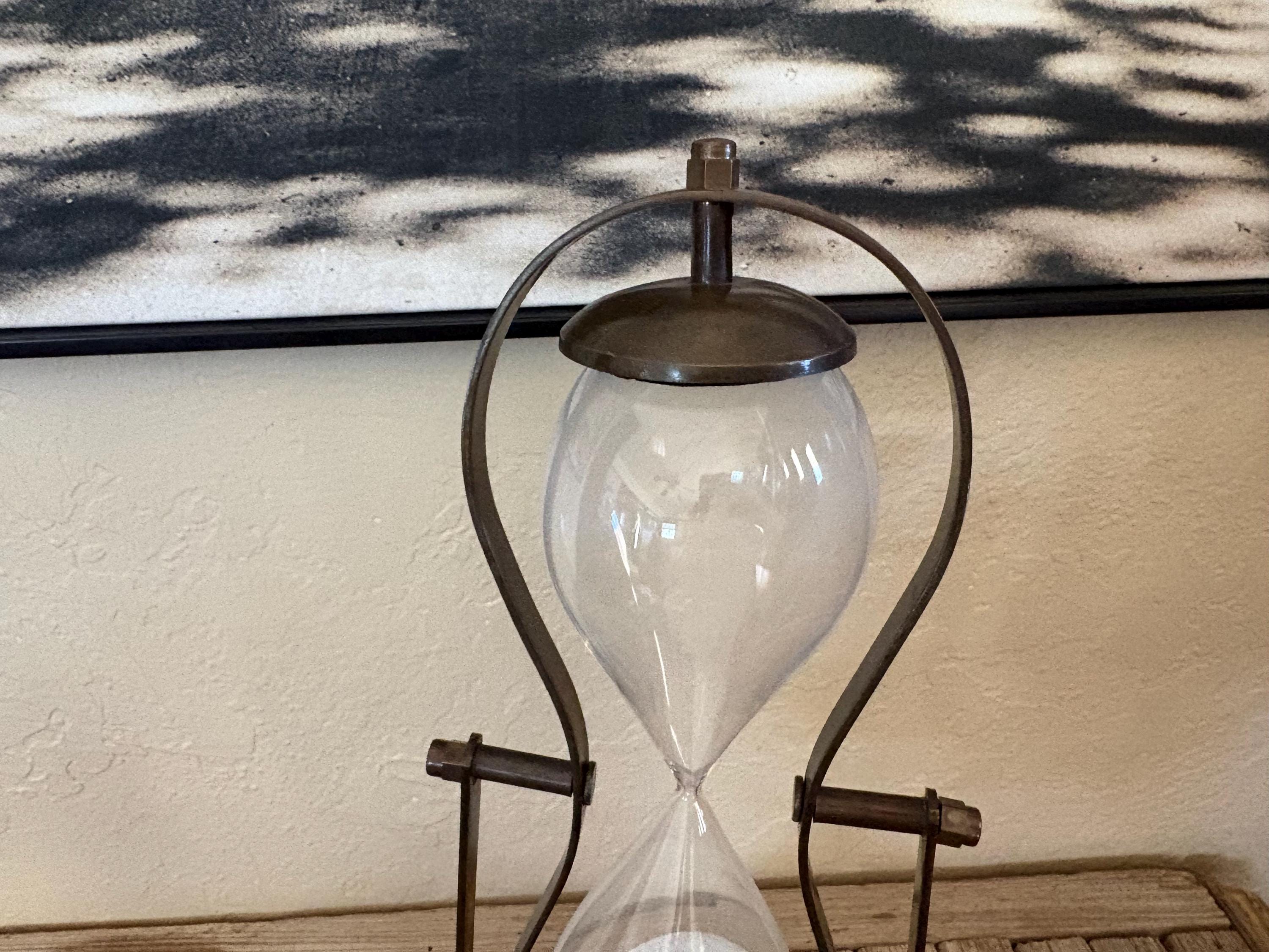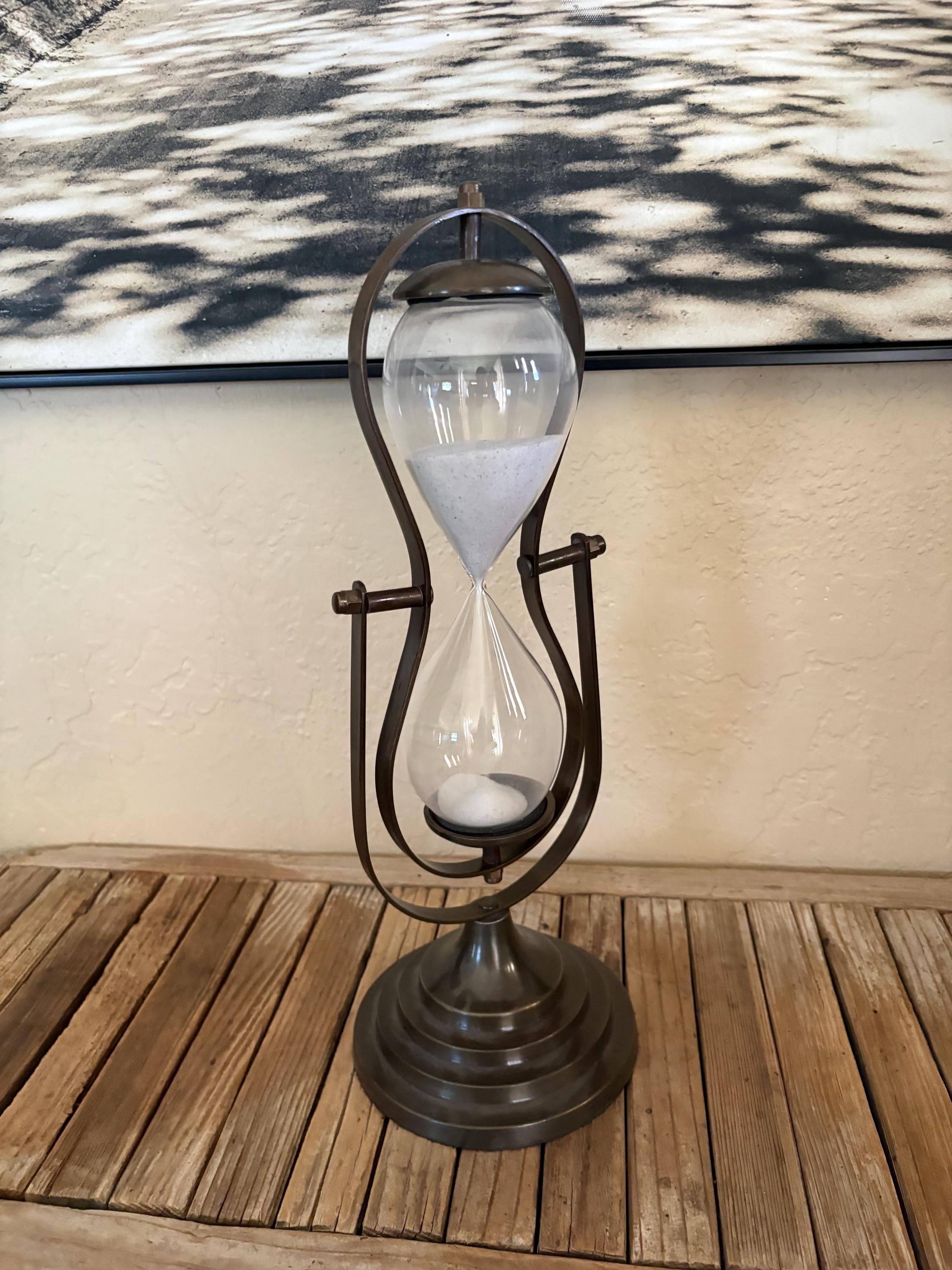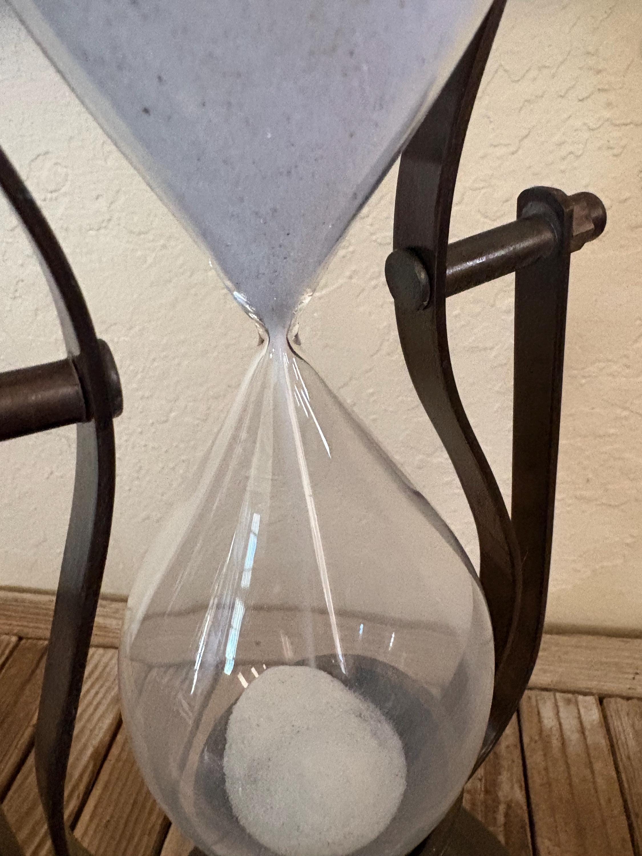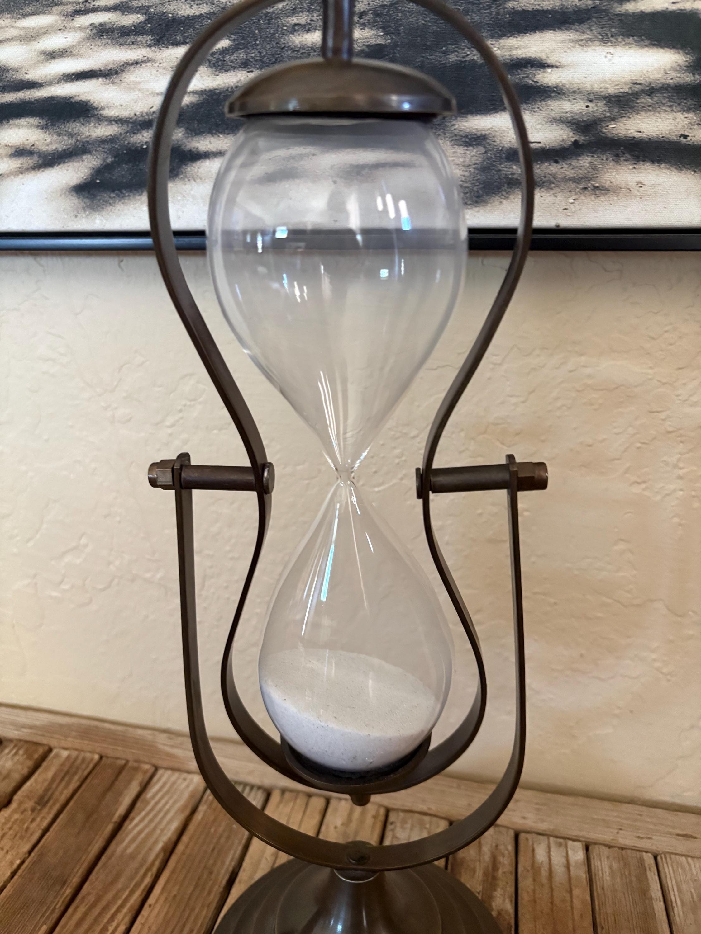Vintage glass hourglass. In great condition, normal wear due to age and use. This piece is super clean and has no chips or issues. A great piece to add to your kitchen, office or to give as a gift.