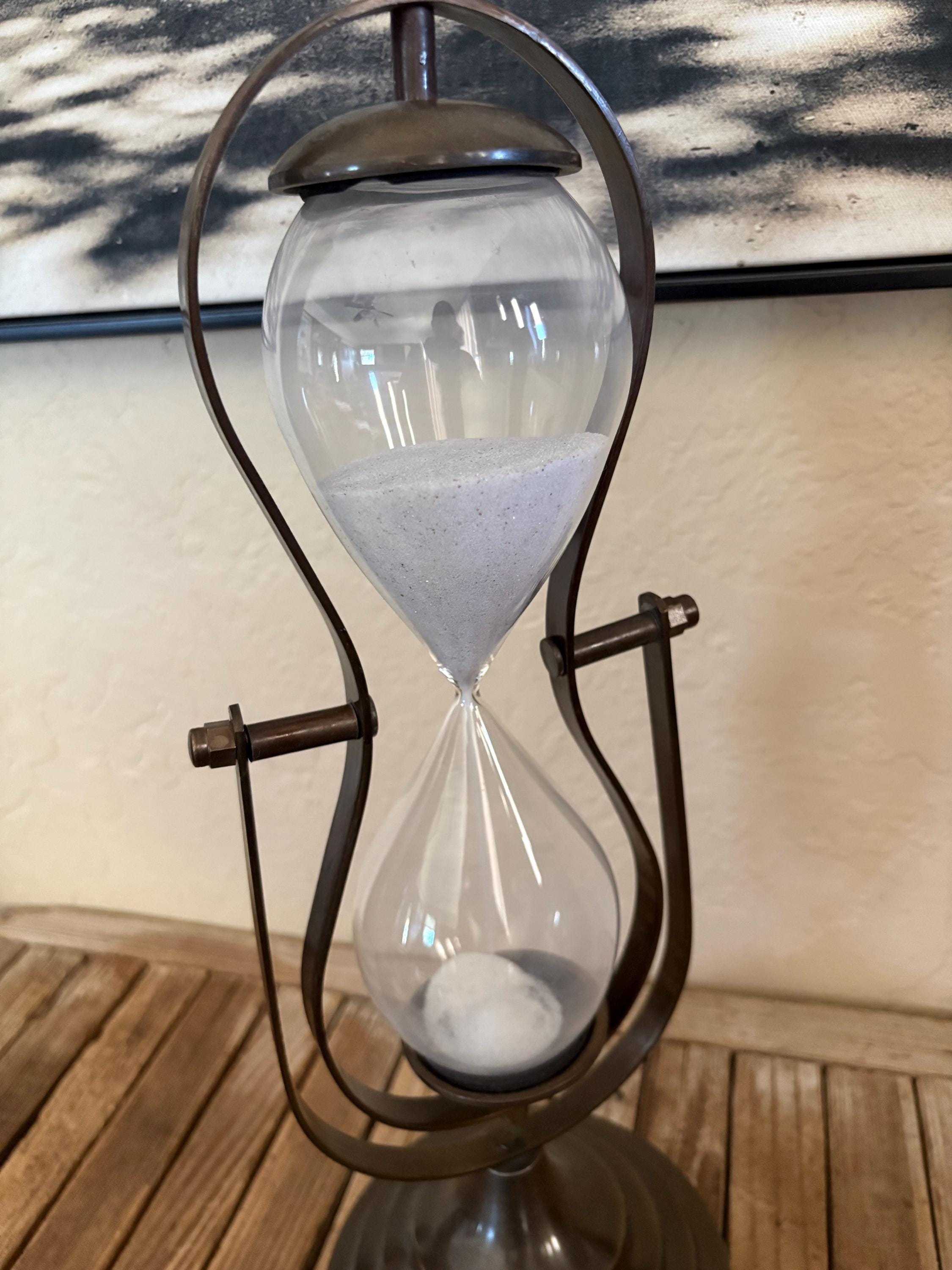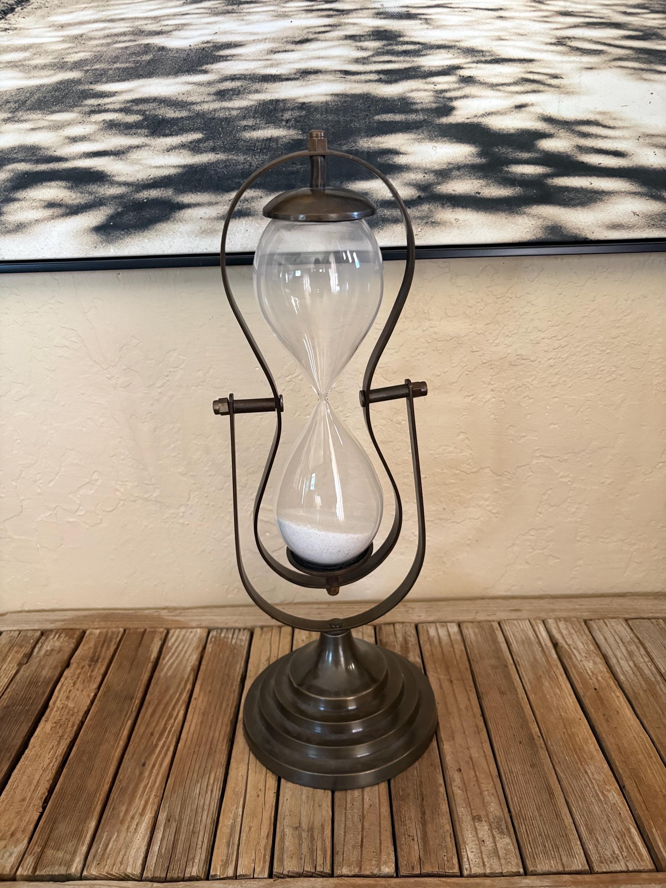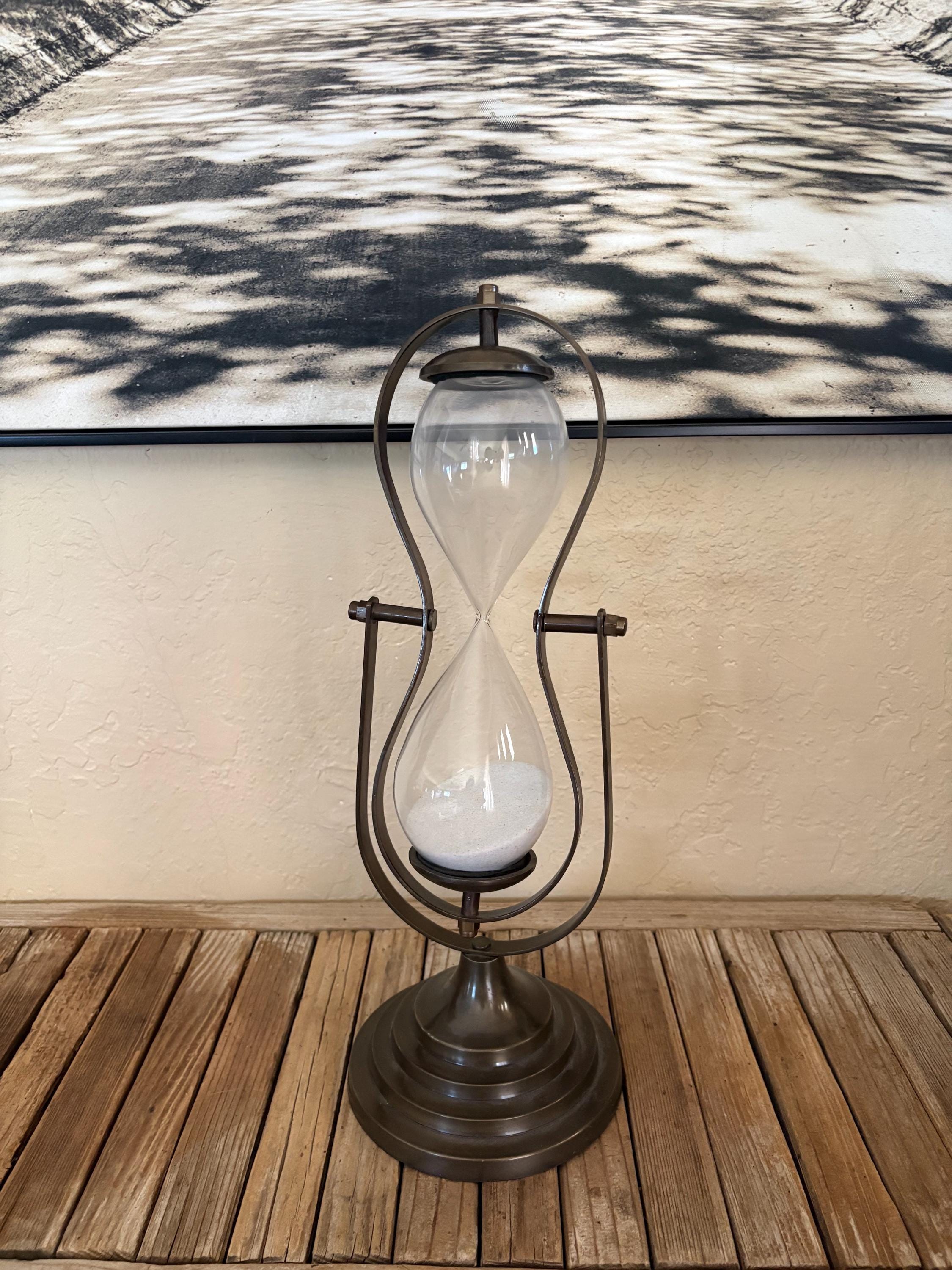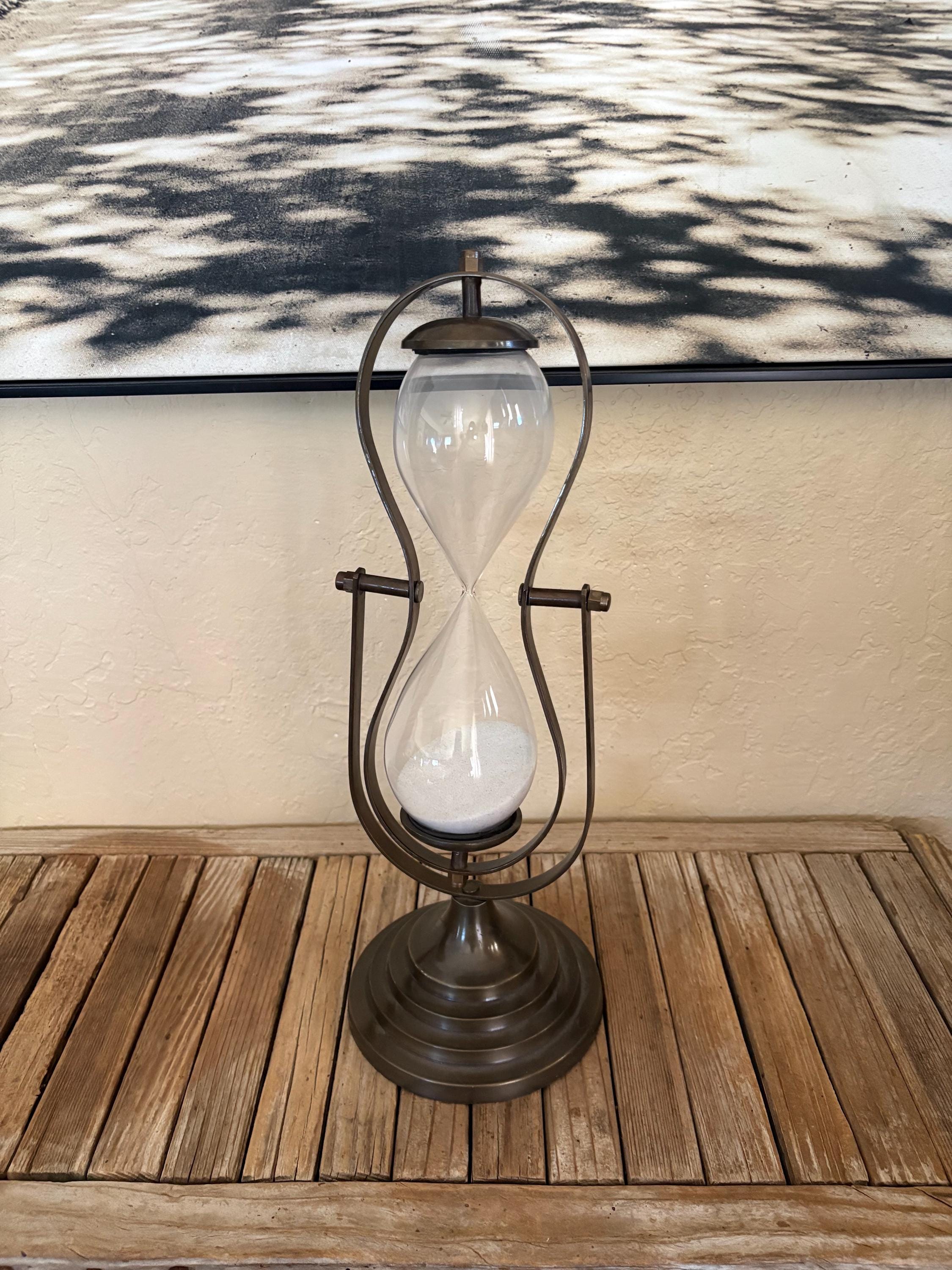 Vintage glass hourglass. In great condition, normal wear due to age and use. This piece is super clean and has no chips or issues. A great piece to add to your kitchen, office or to give as a gift.