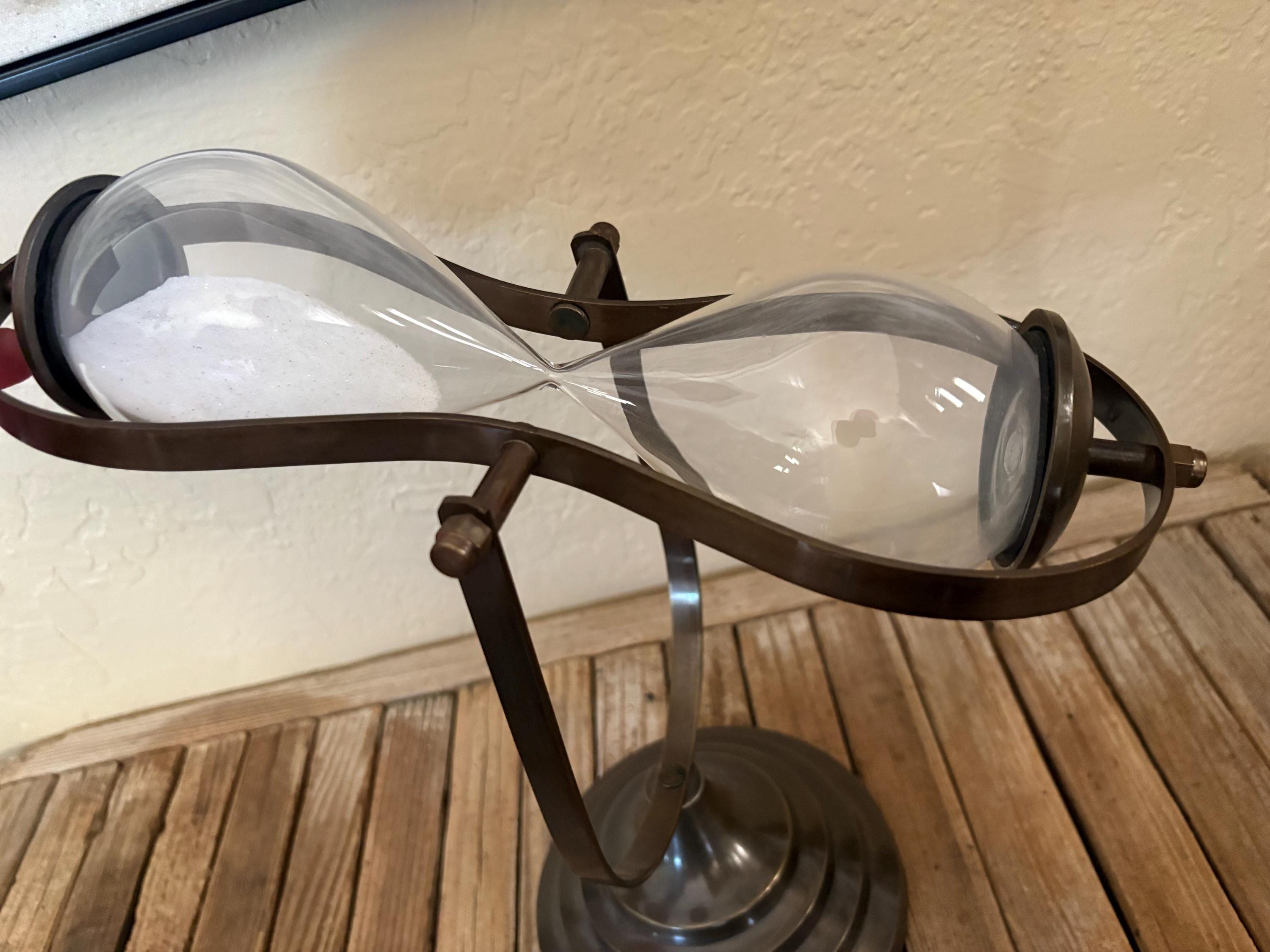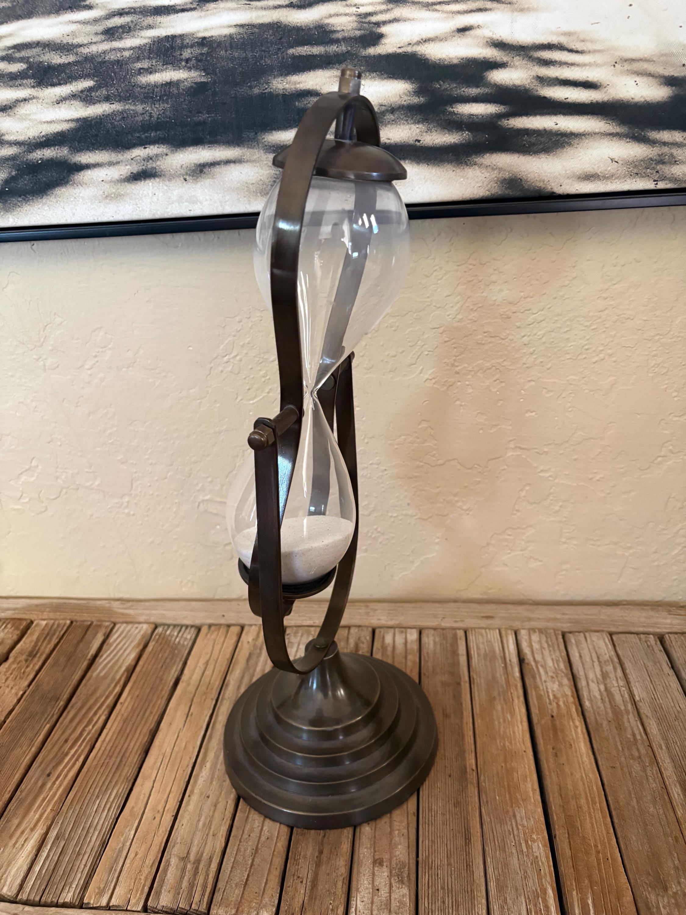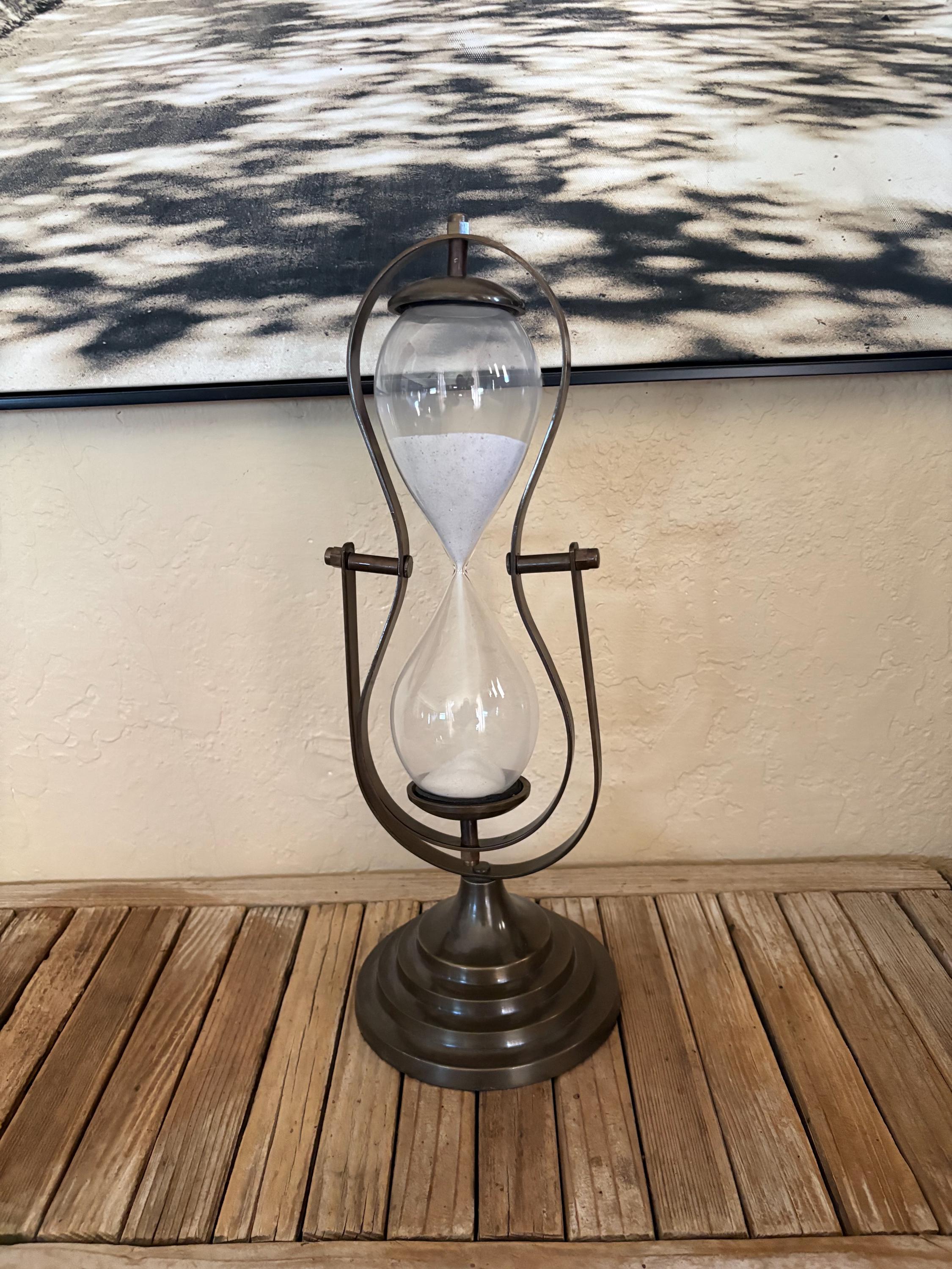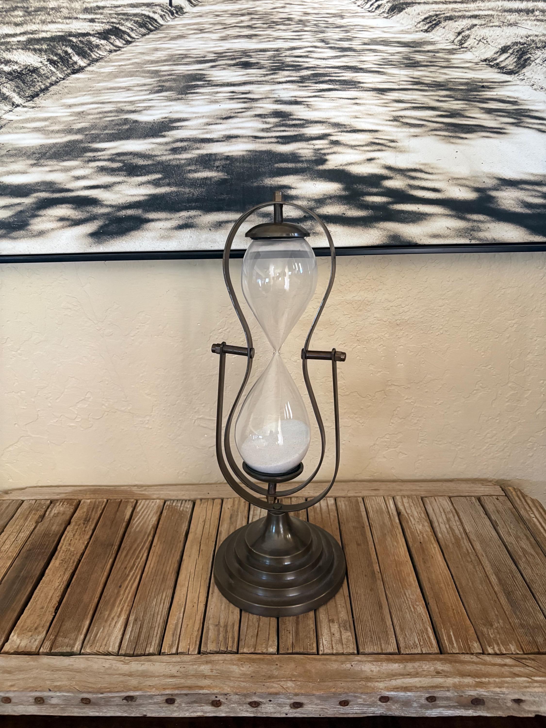 Vintage glass hourglass. In great condition, normal wear due to age and use. This piece is super clean and has no chips or issues. A great piece to add to your kitchen, office or to give as a gift.